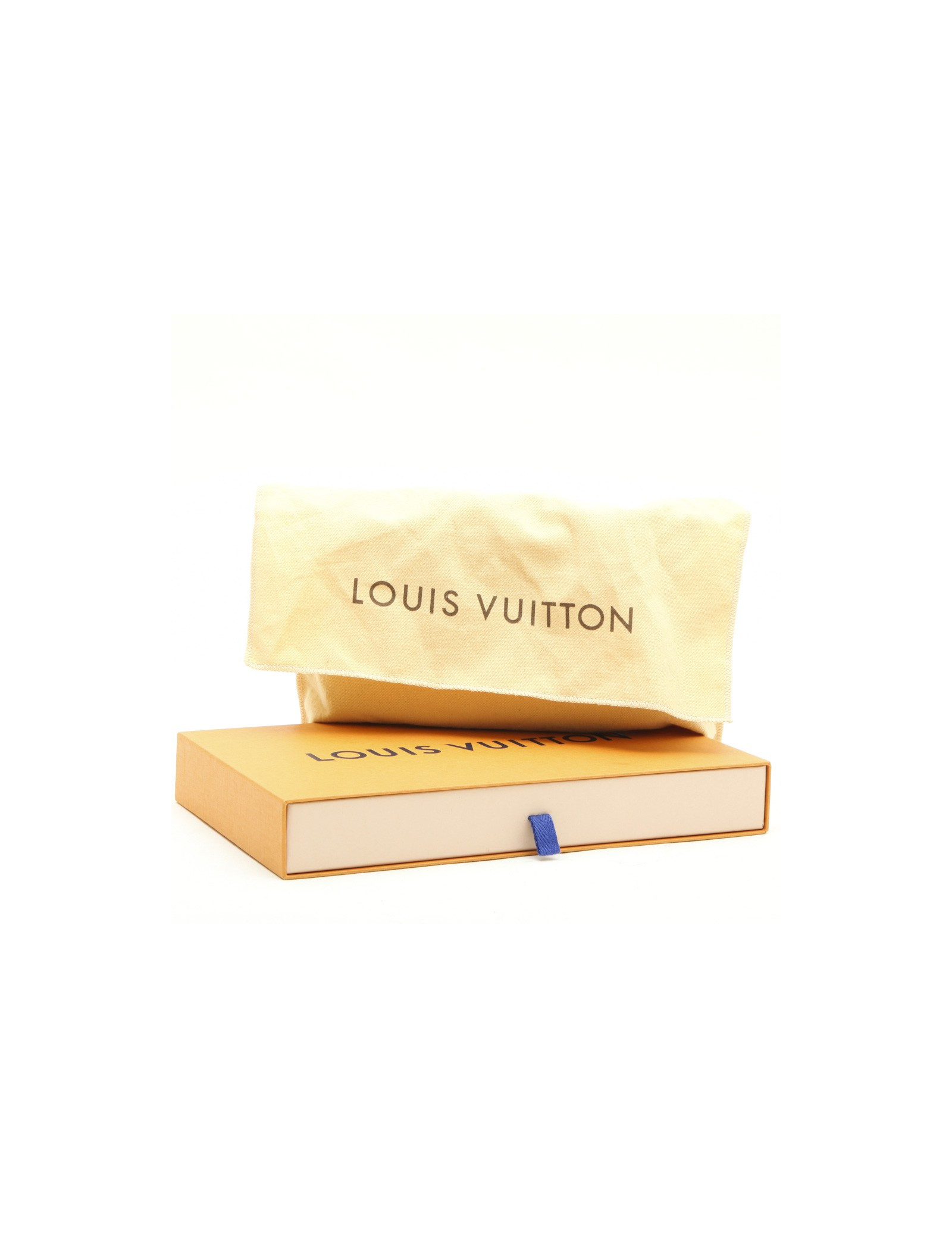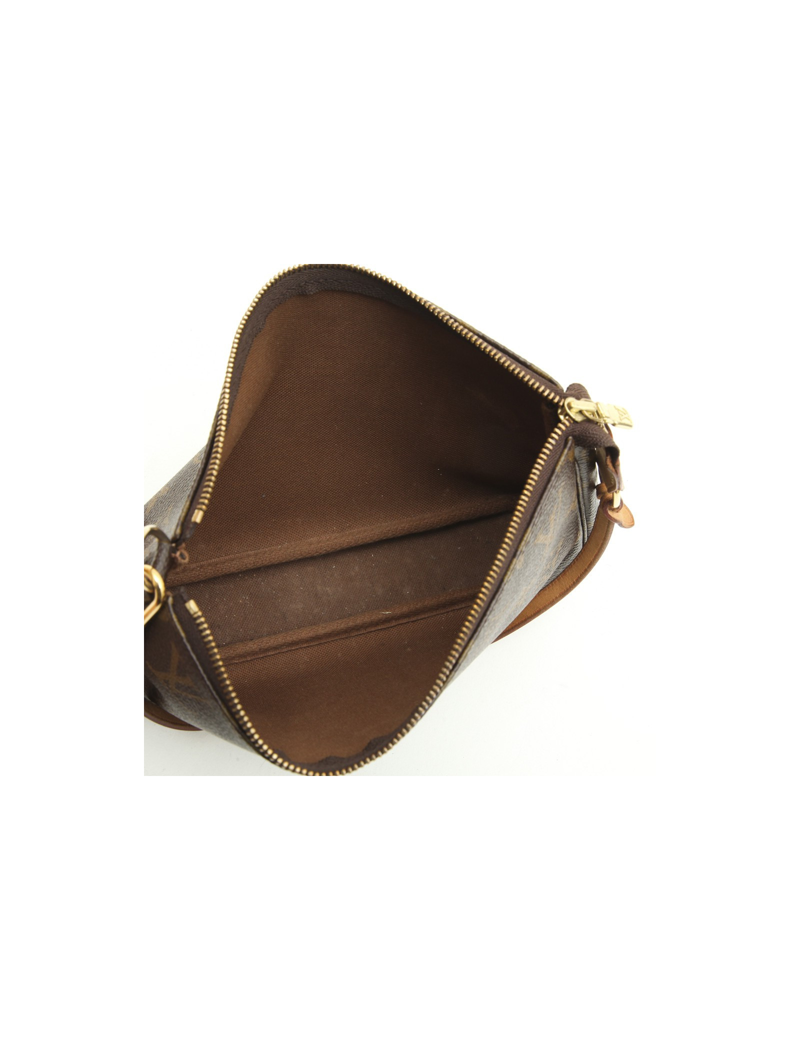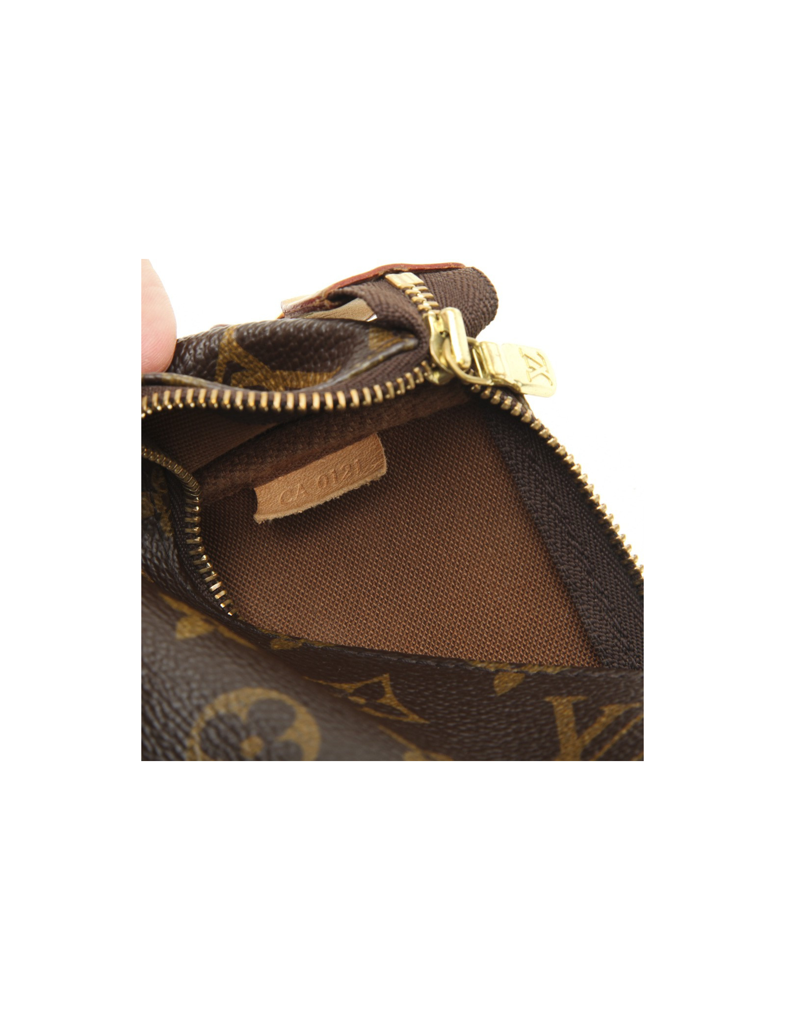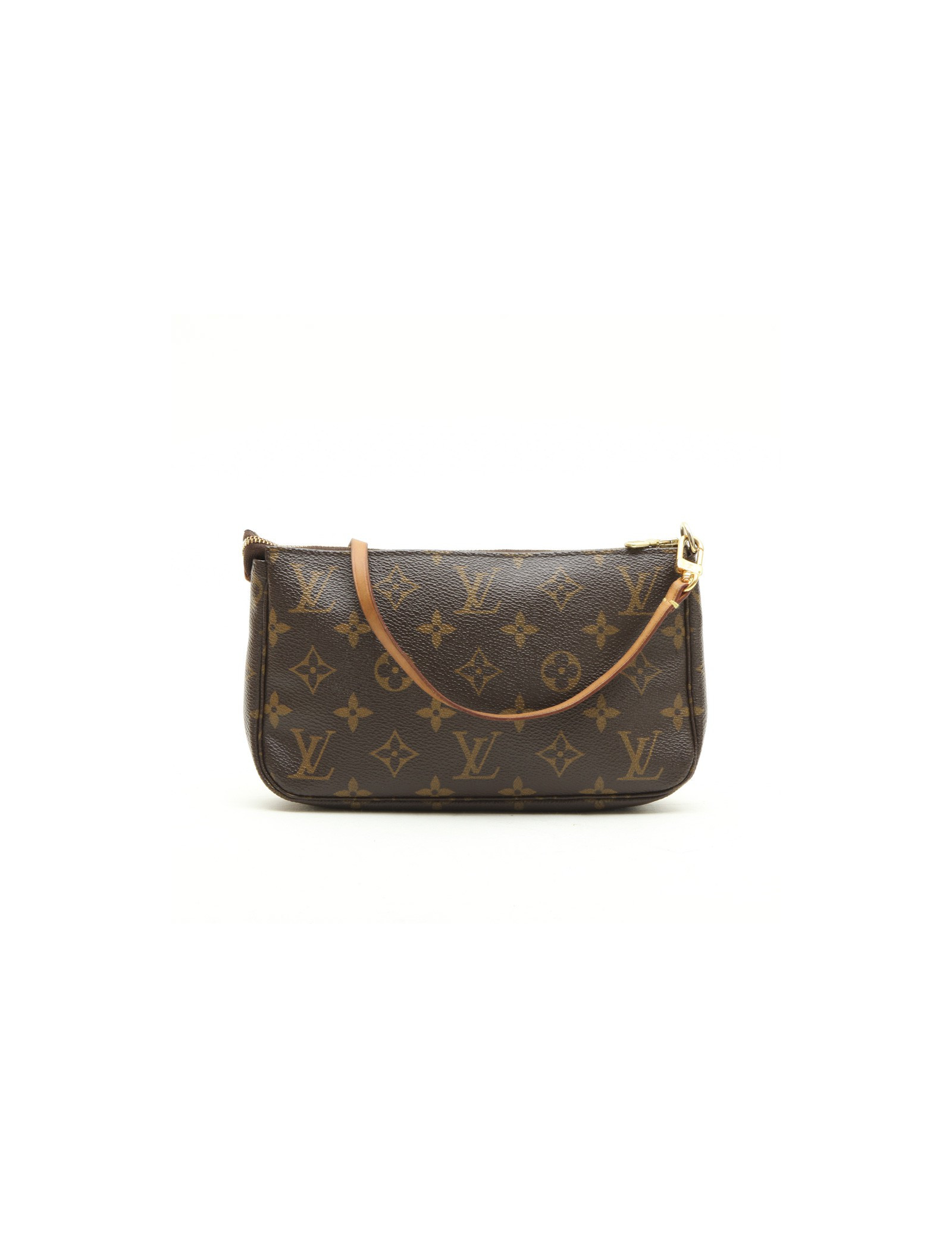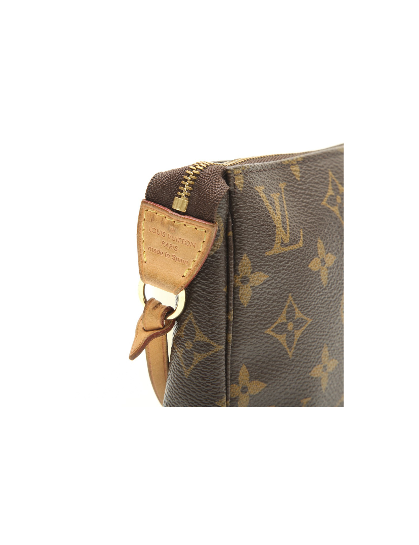 Pochette Louis Vuitton en toile monogram marron. Bijouterie dorée. Fermeture zippée.