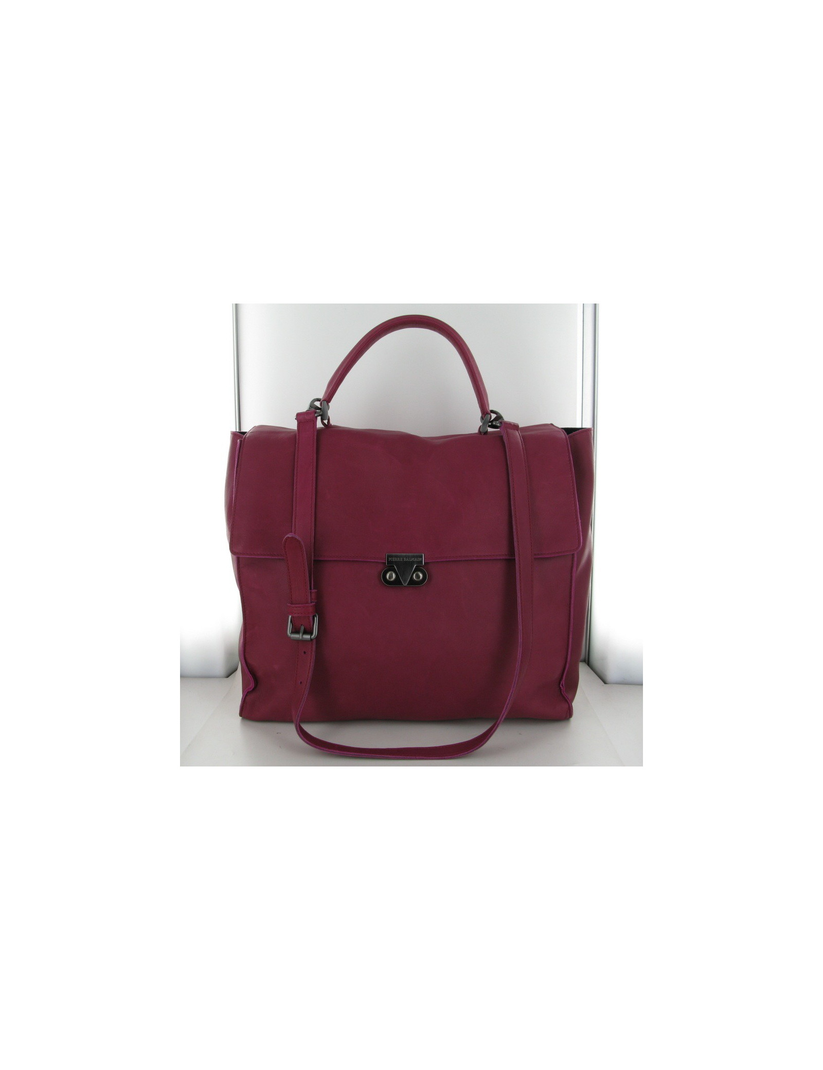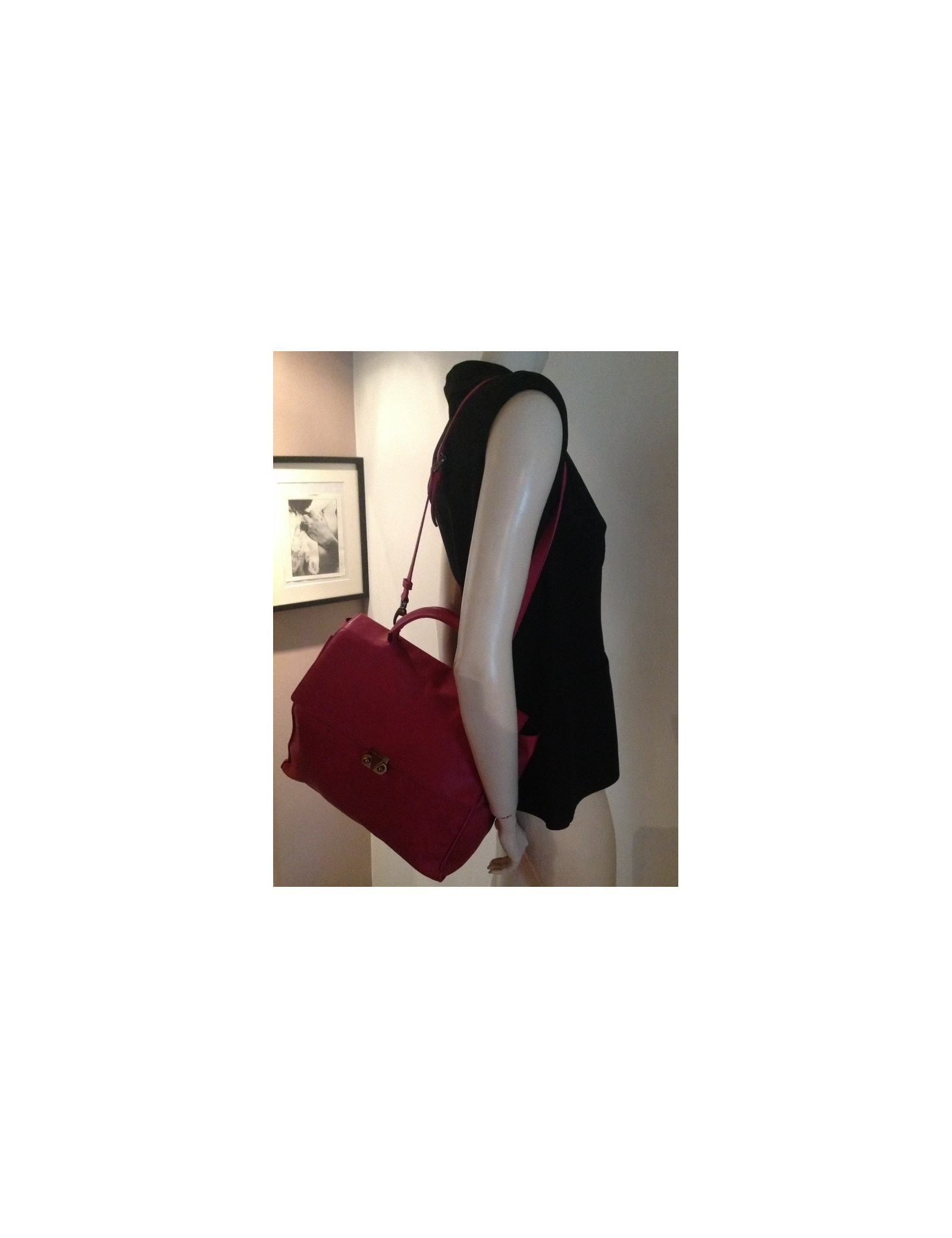 Superbe sac en cuir framboise BALMAIN. Il peut se porter à la main ou à l'épaule grâce a sa bandoulière amovible qui mesure 90 cm. Il se ferme par un fermoir crapaux ruthénium. l'intérieur est en toile noire, et il possède une poche intérieure zippée. Il y a de légères traces sur le cuir.