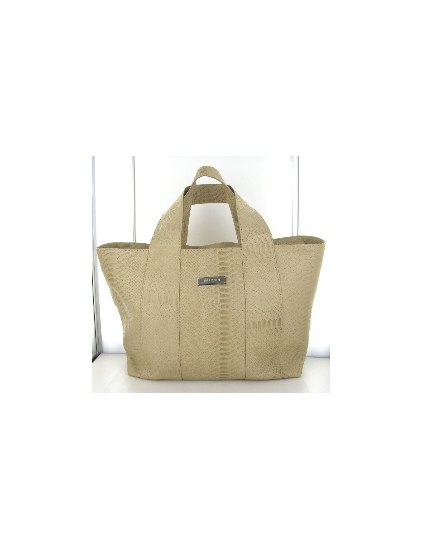 Cabas BALMAIN en cuir façon python beige