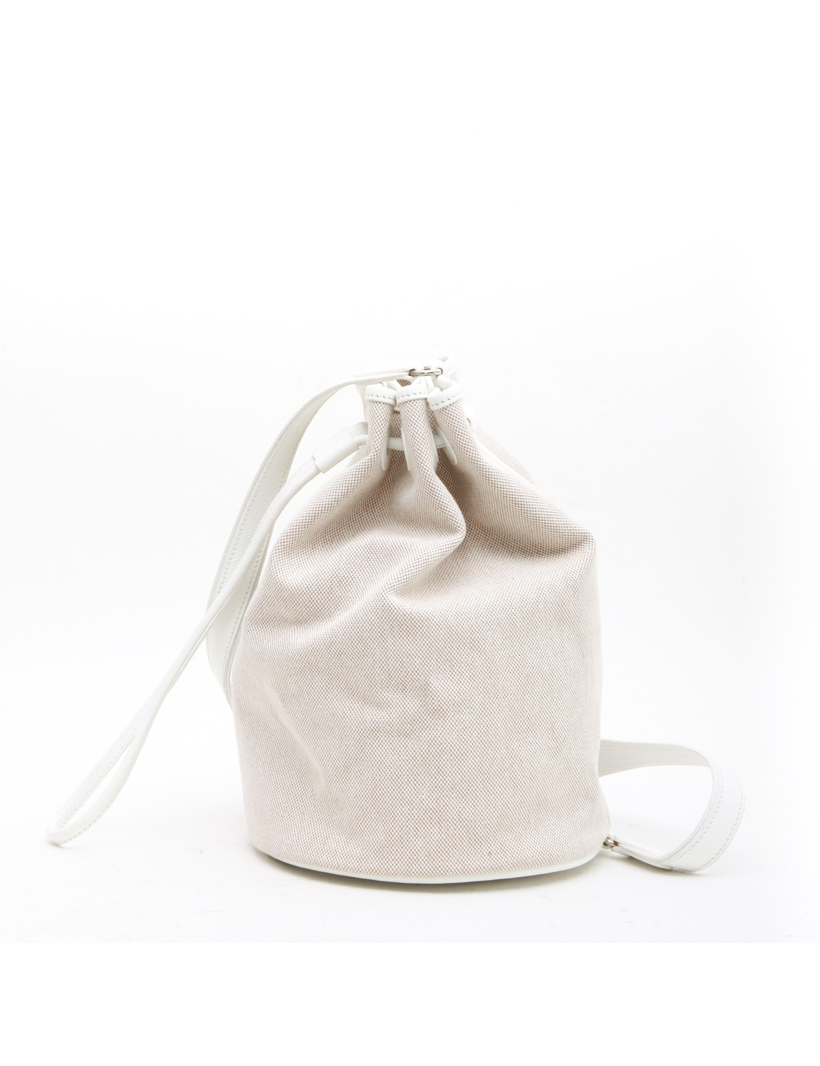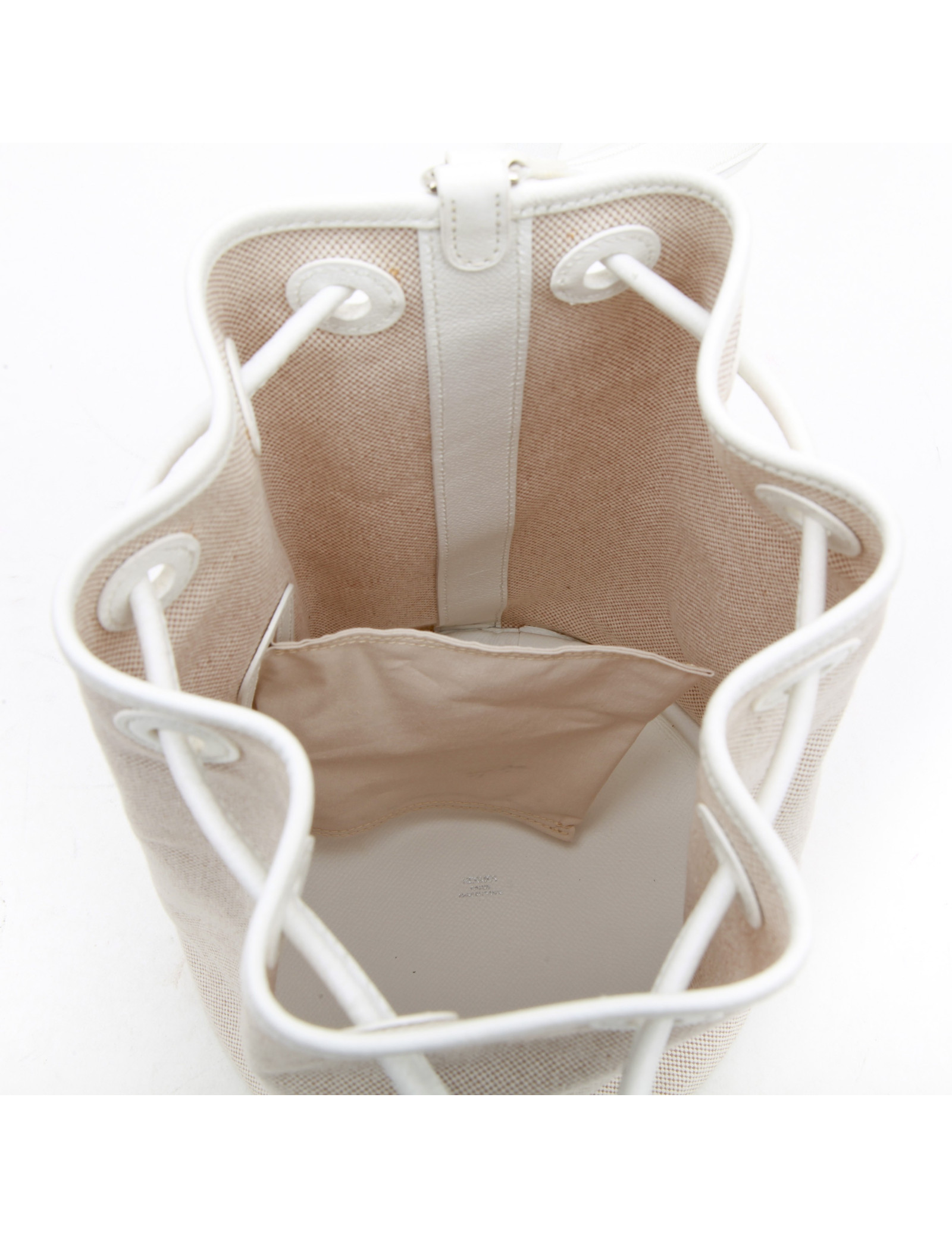 Sac seau HERMES, en toile et cuir blanc. En très bon état.