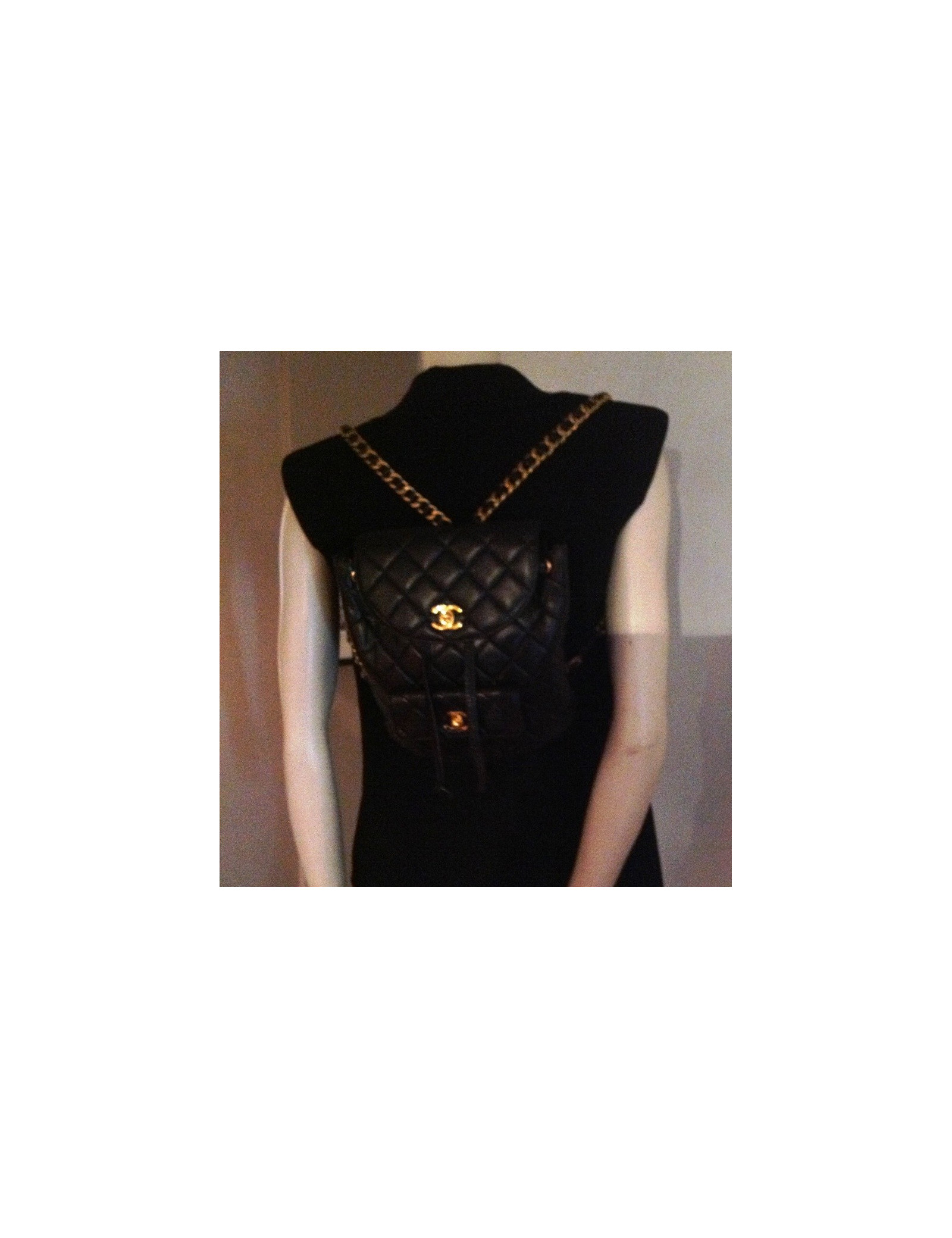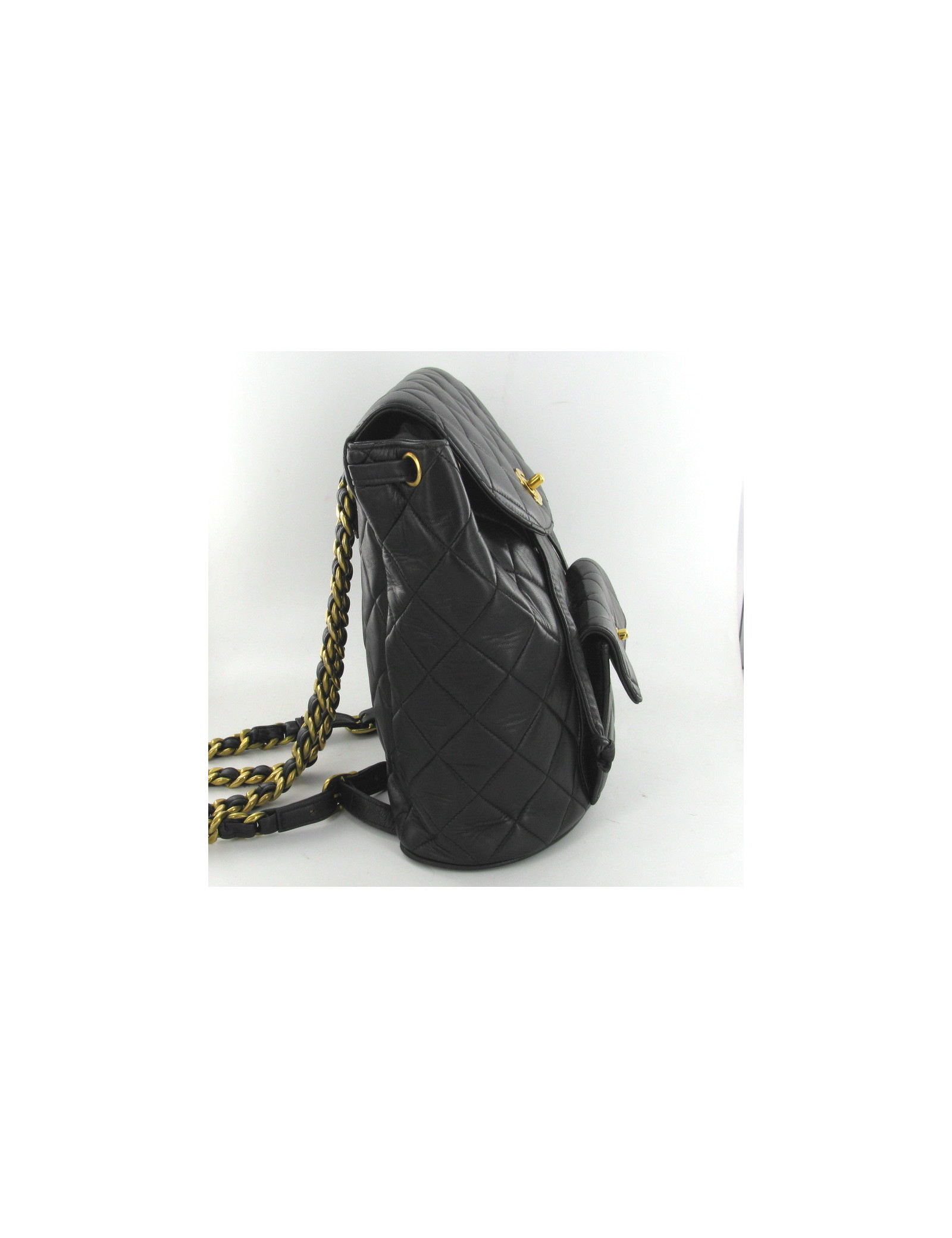 Sac à dos vintage CHANEL agneau matelassé noir