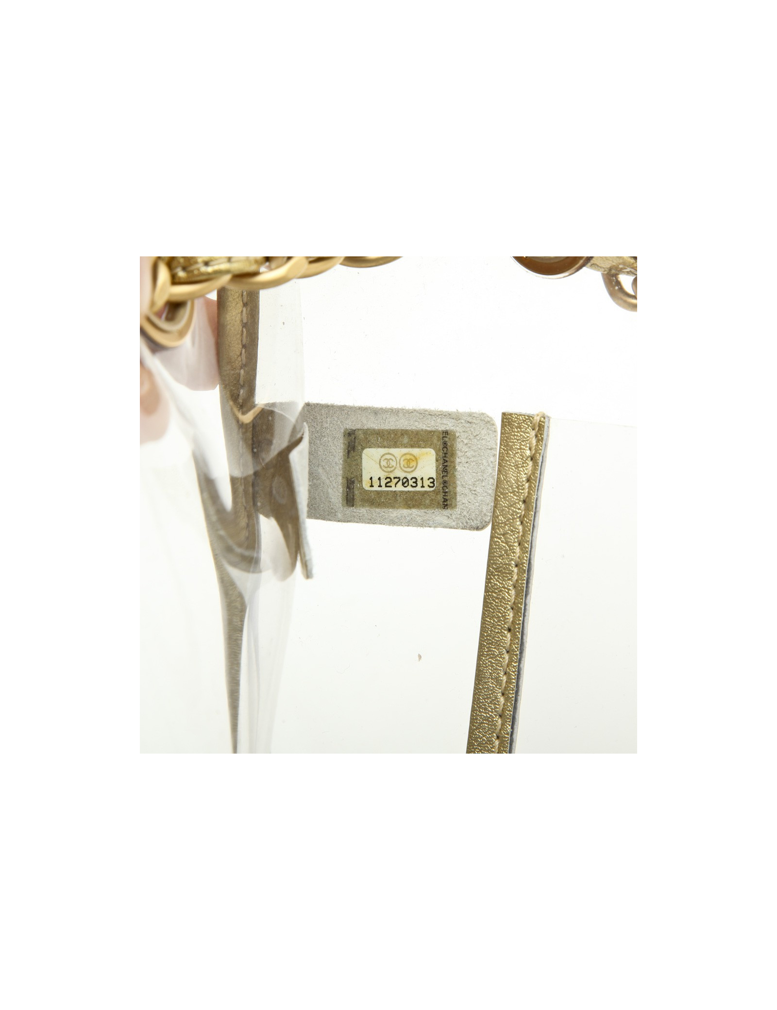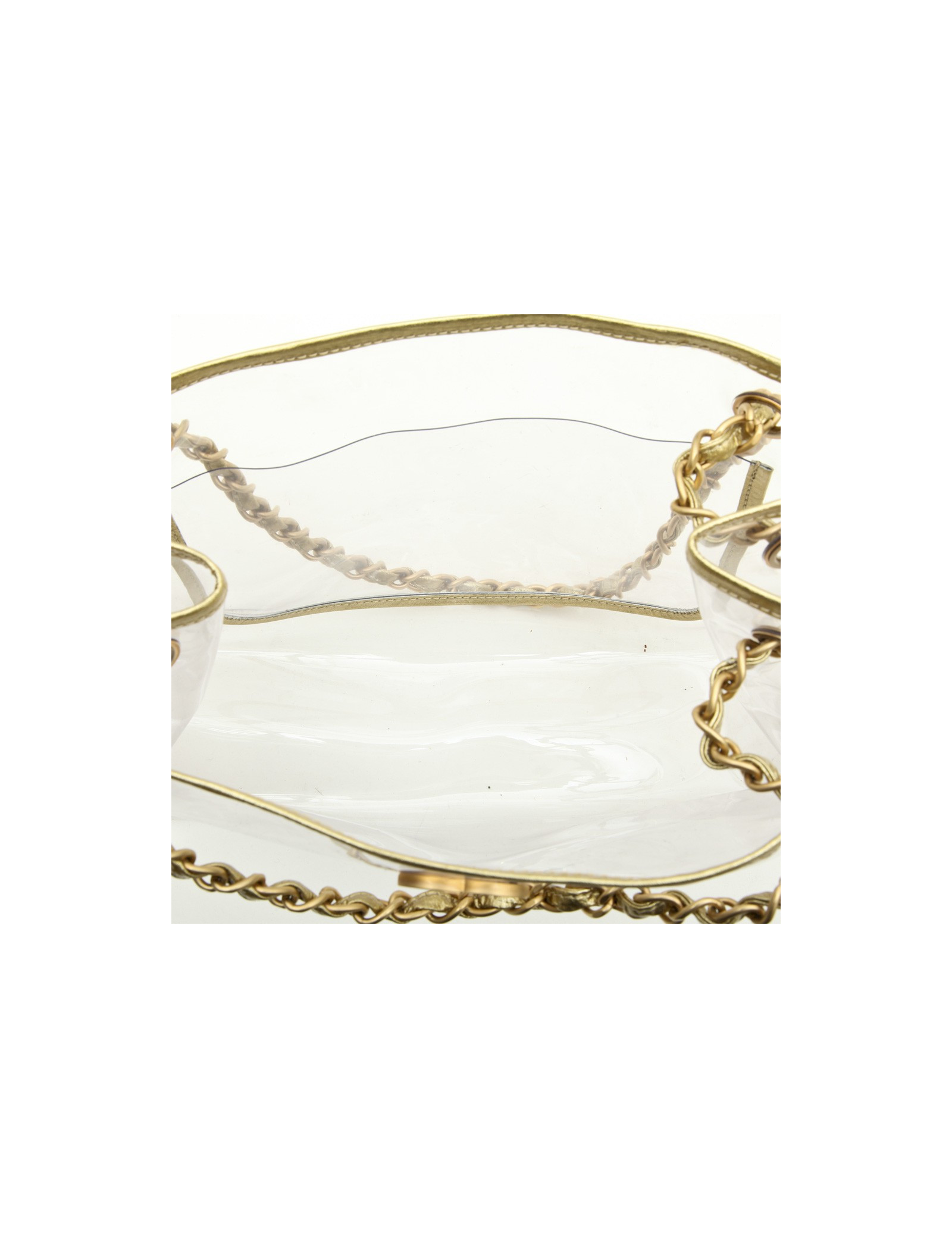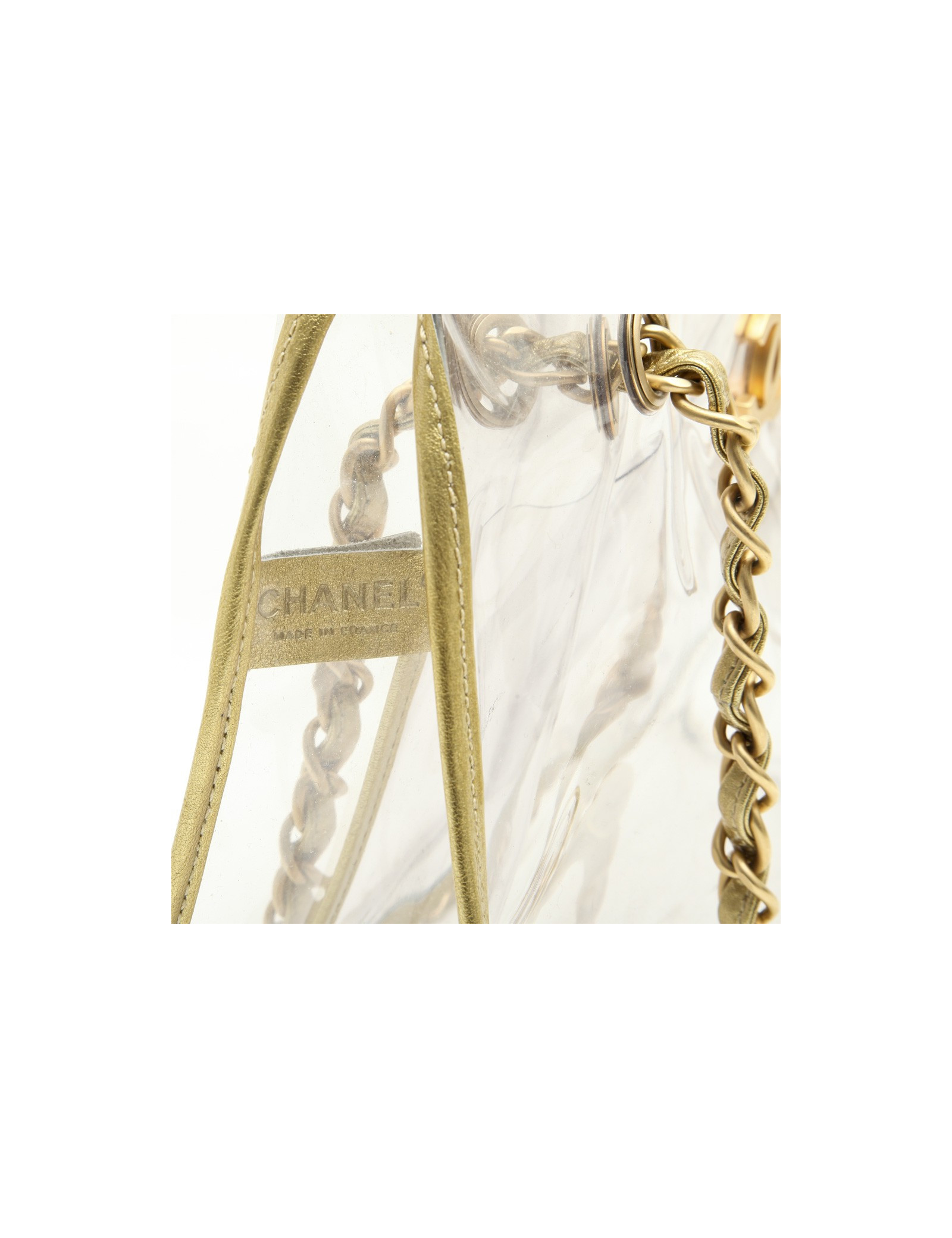 Sac Chanel transparent. Vintage! Bijouterie et cuir doré.