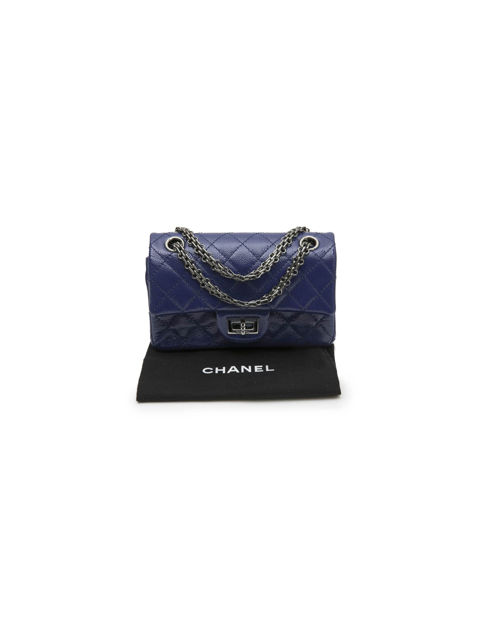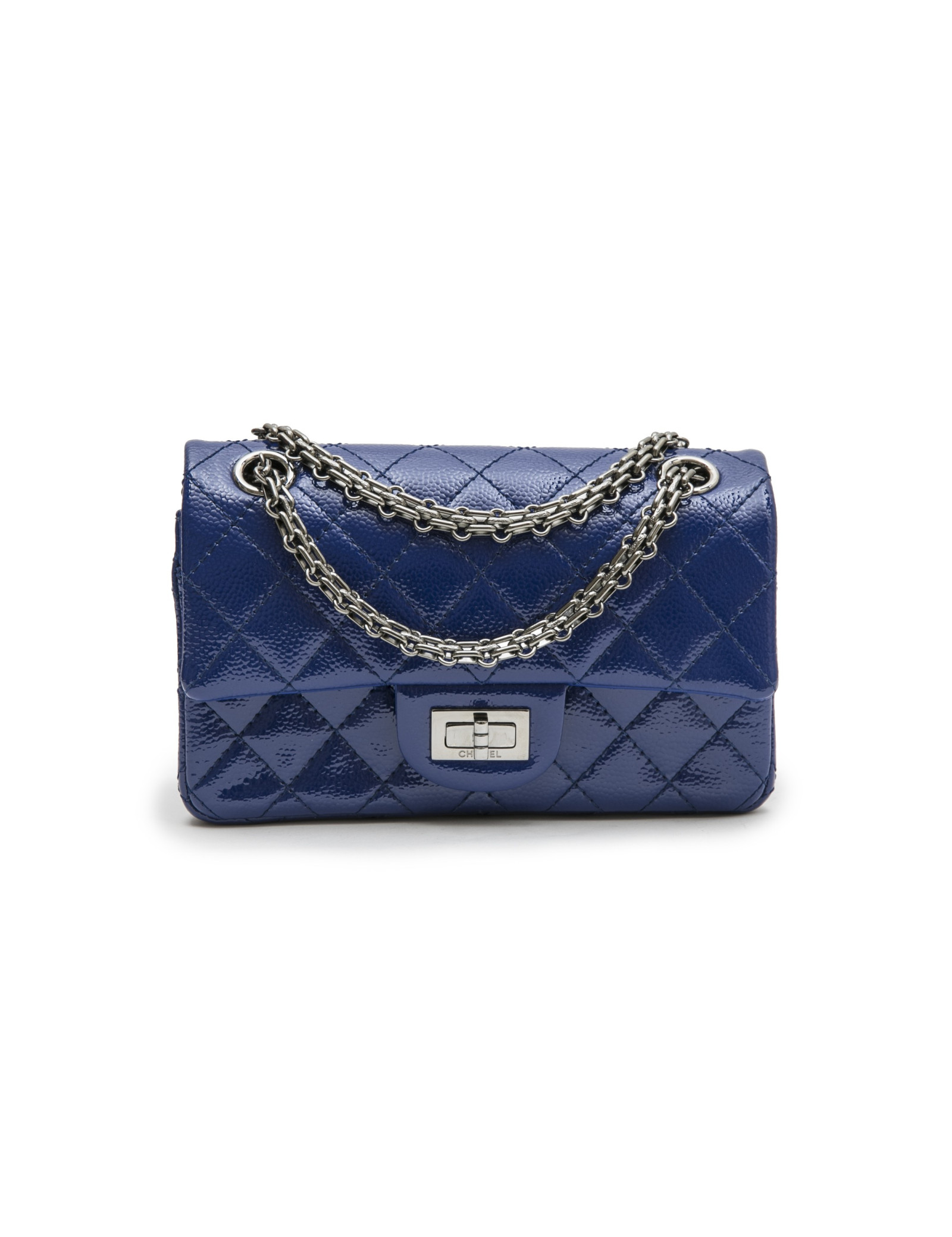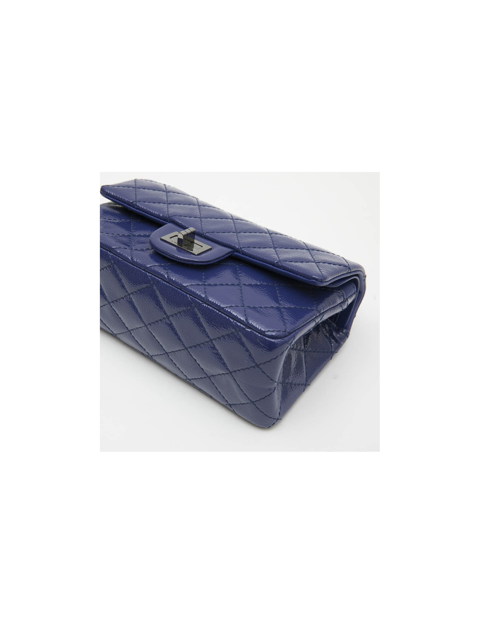 Mini sac 2.55 CHANEL PM en cuir grainé verni bleu éléctrique