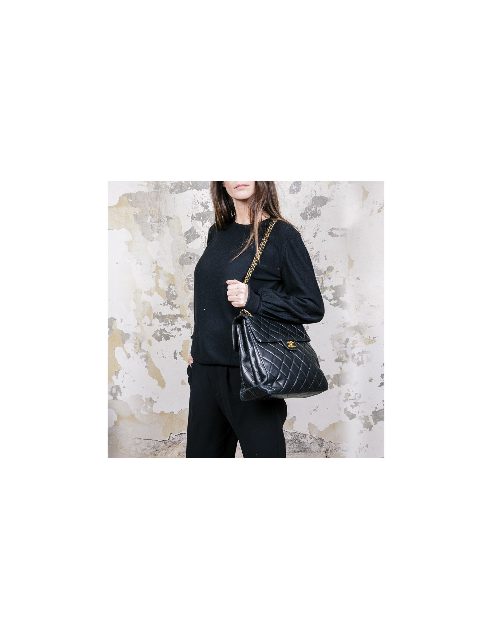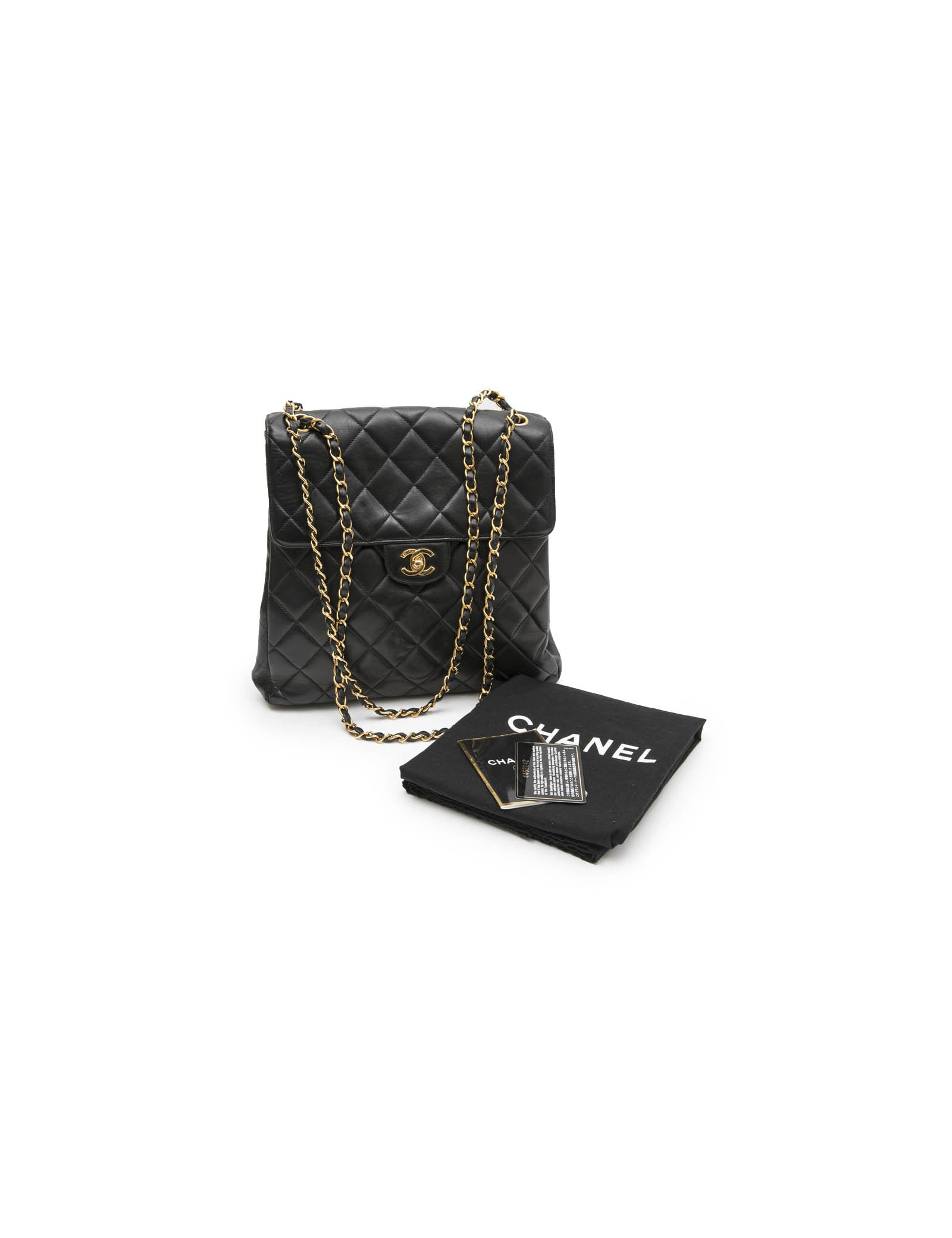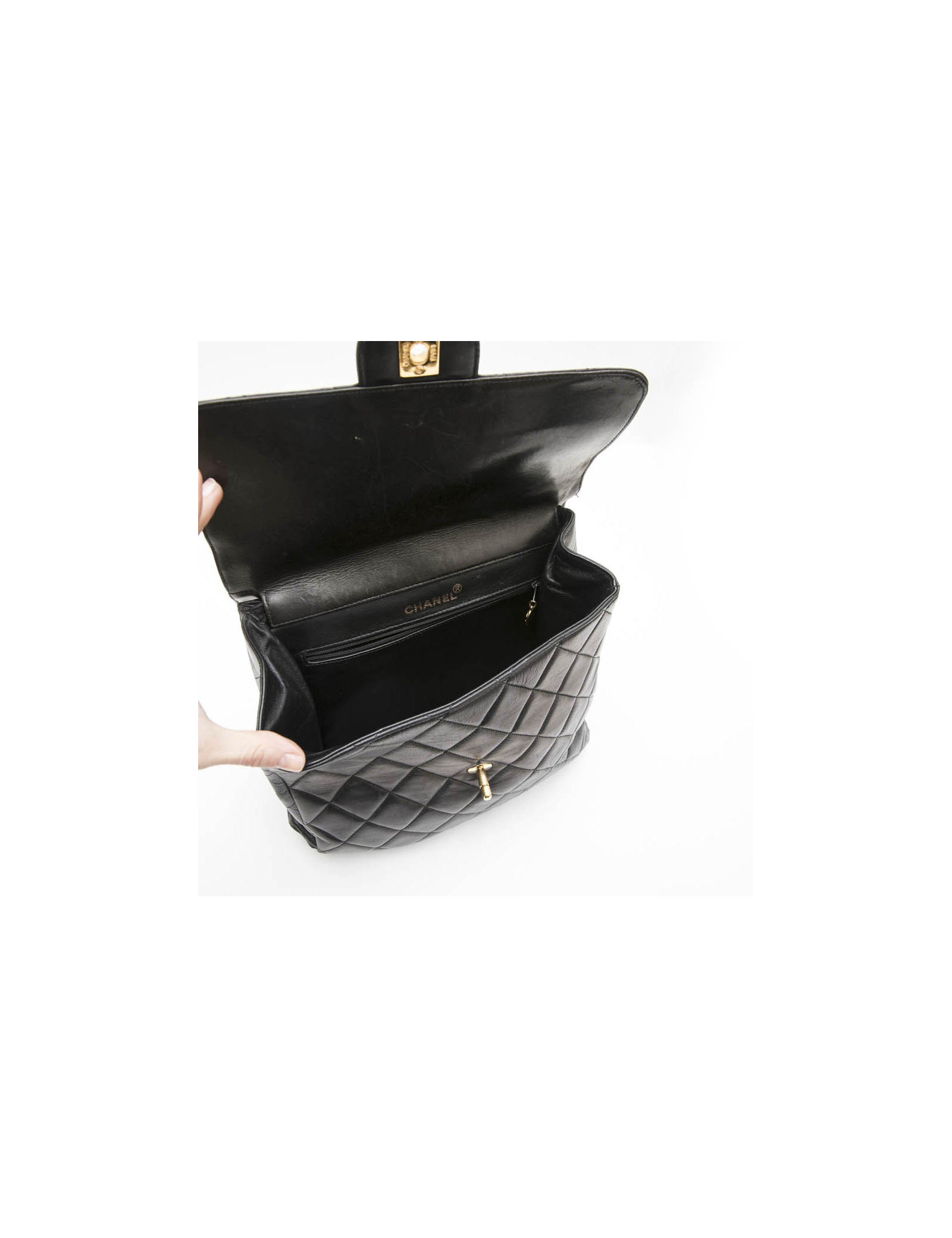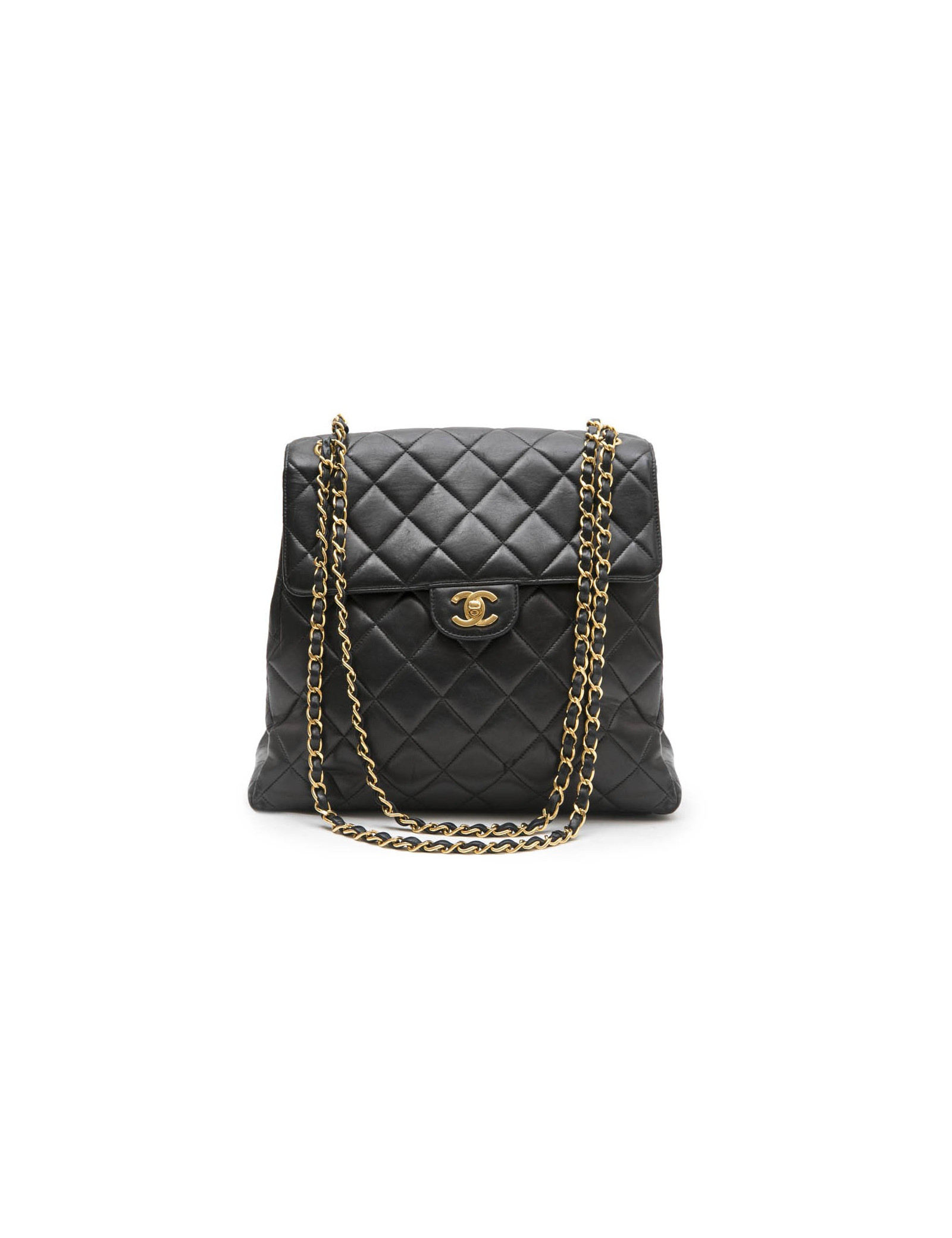 Sac CHANEL cuir d'agneau lisse matelassé noir