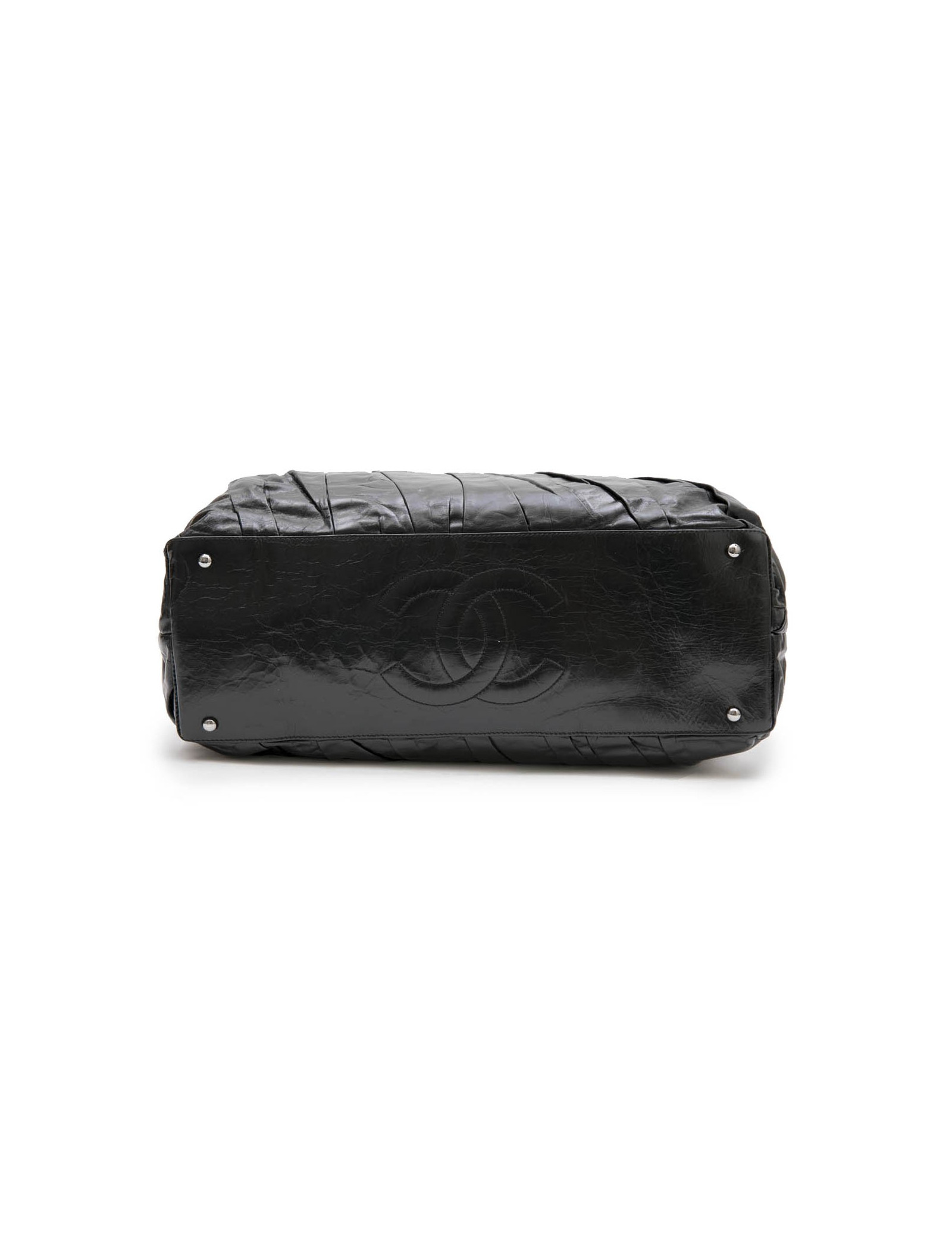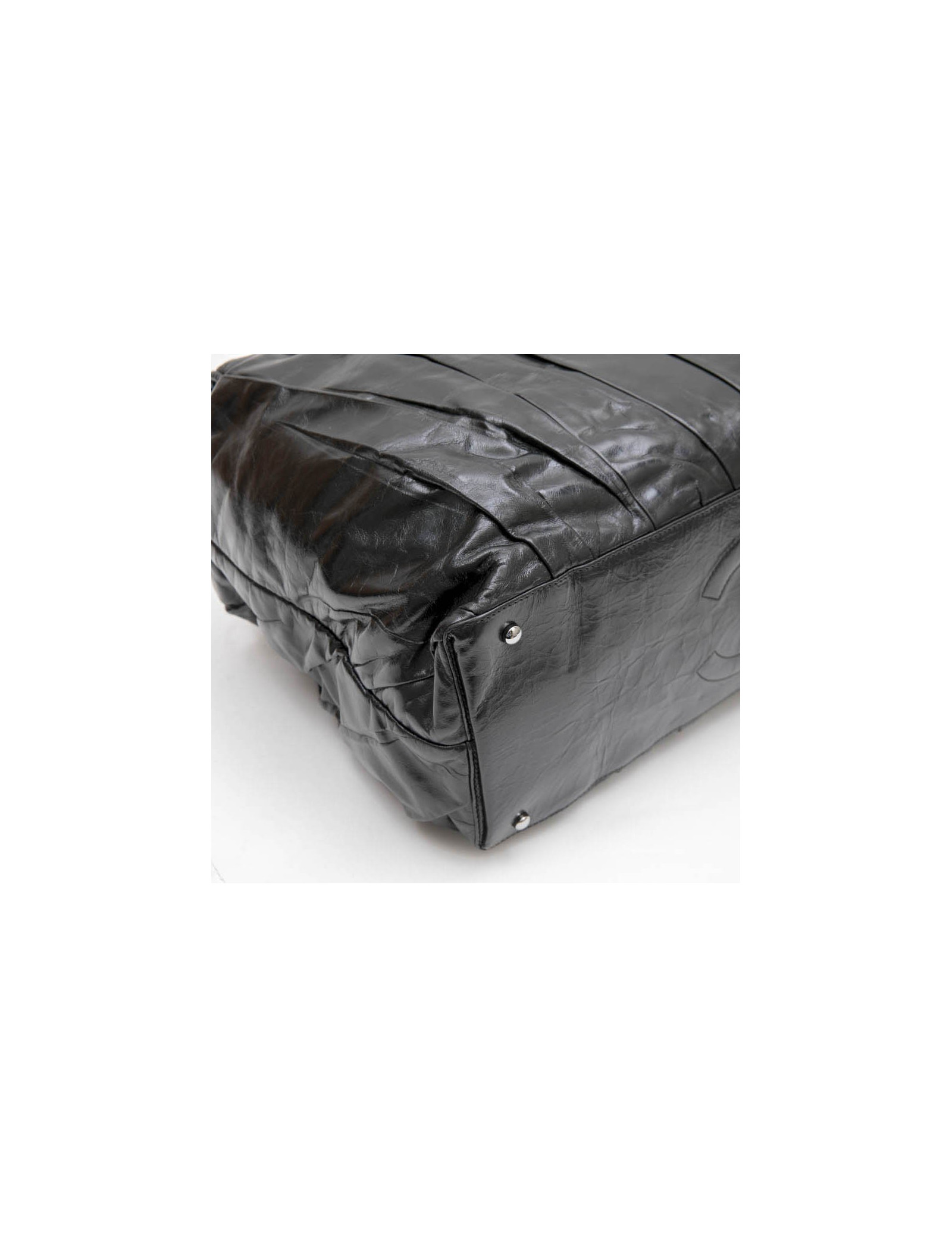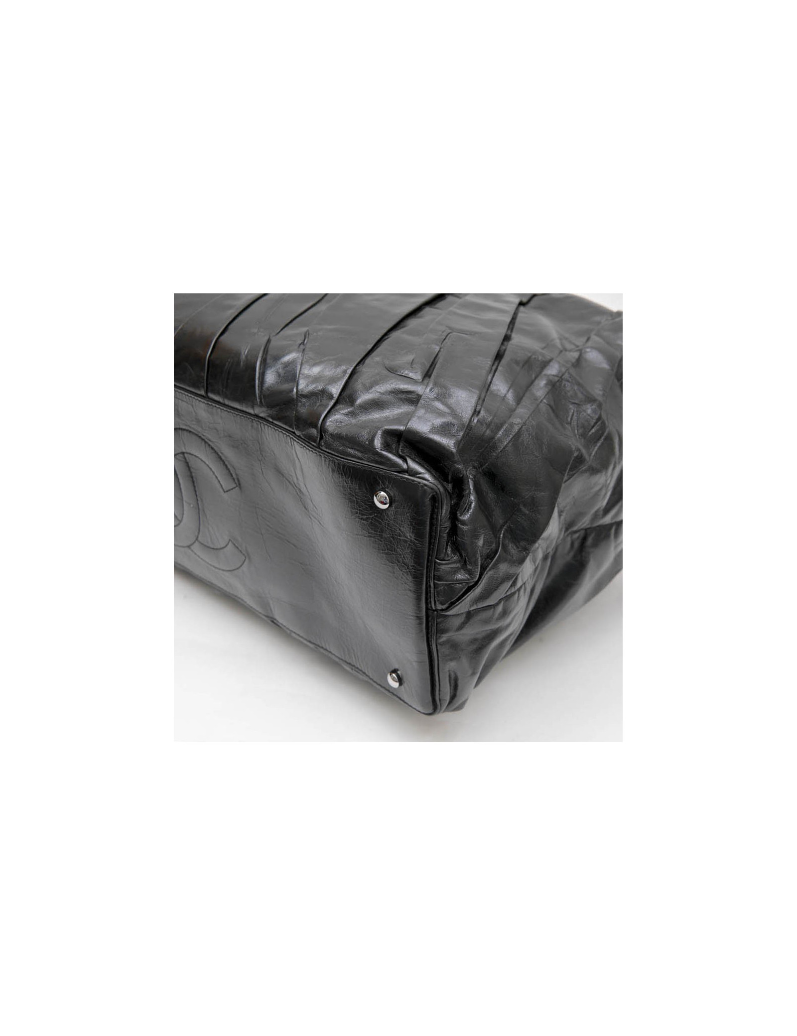 Grand sac cabas Chanel, en cuir noir semi brillant. Il a une fermeture éclair et l'accastillage est en métal argent palladié. Hologramme 181164...... et carte d'authenticité.