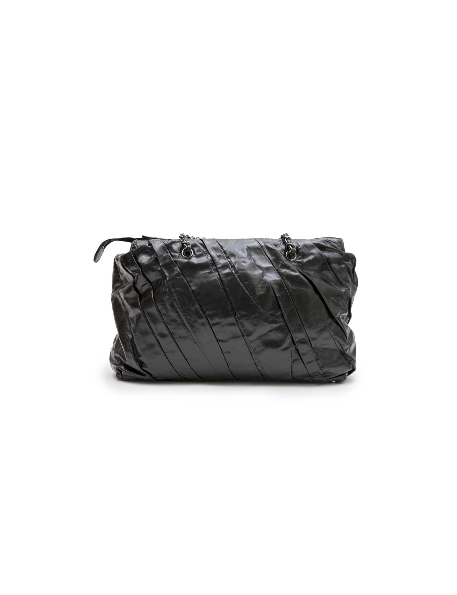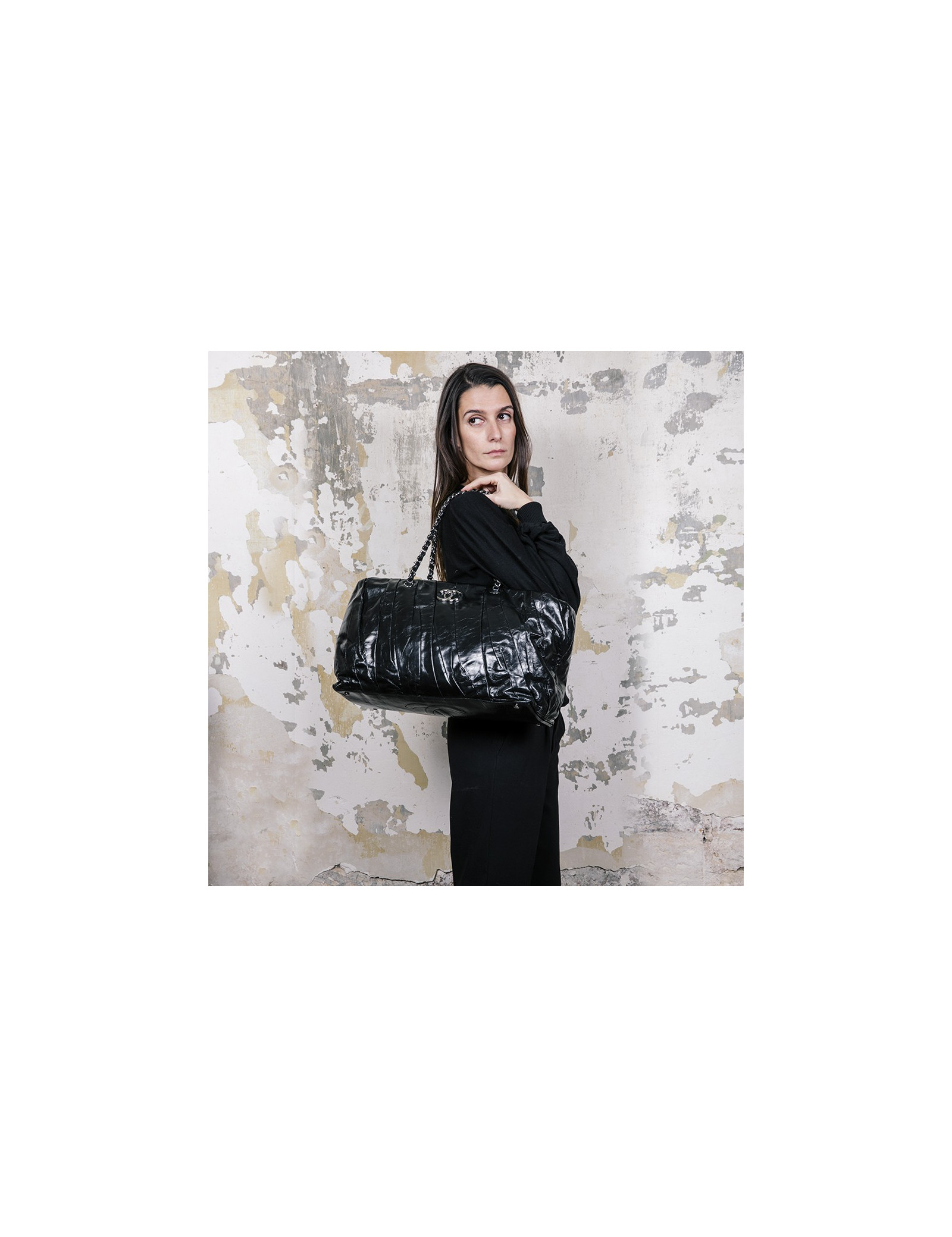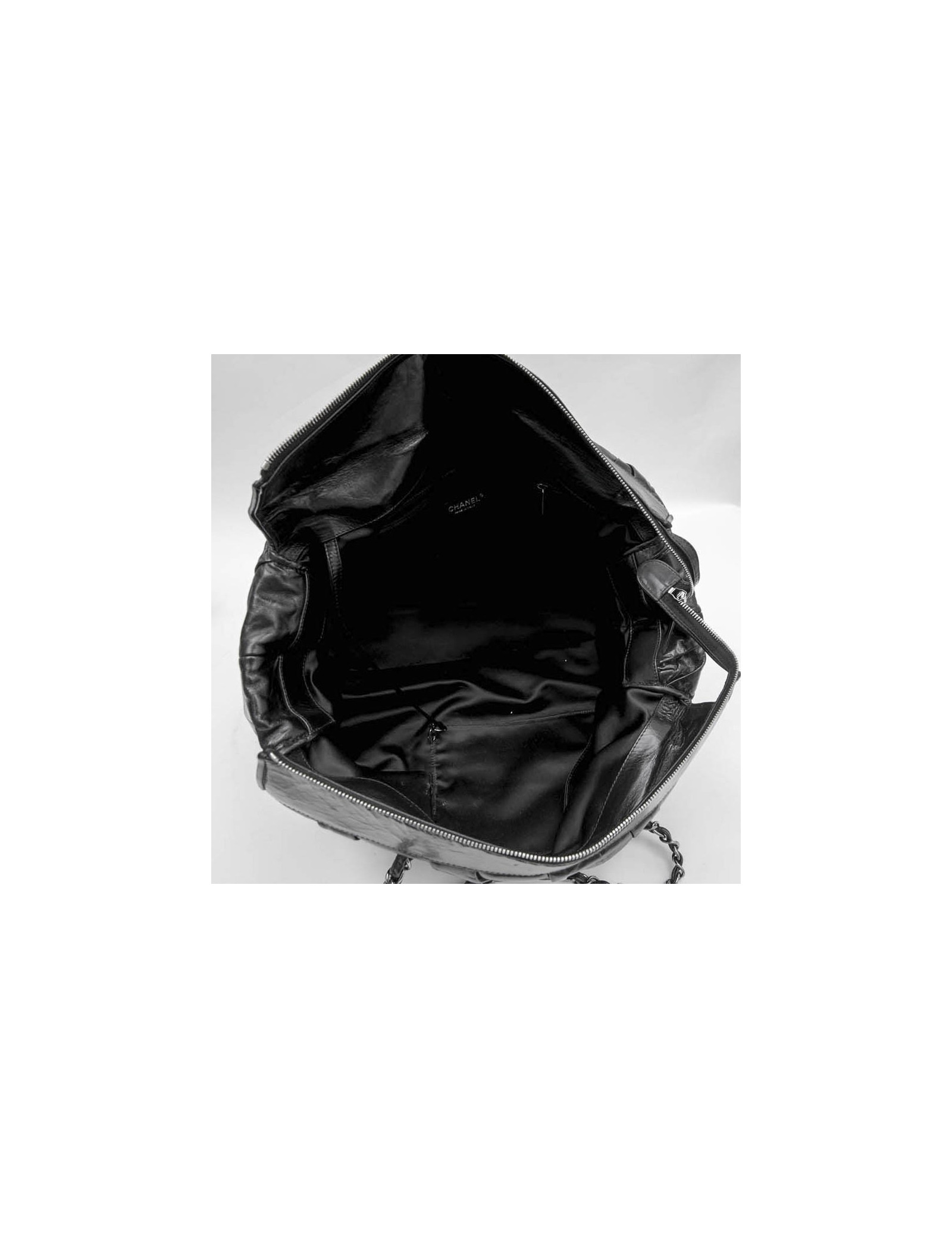 Grand sac cabas Chanel, en cuir noir semi brillant. Il a une fermeture éclair et l'accastillage est en métal argent palladié. Hologramme 181164...... et carte d'authenticité.