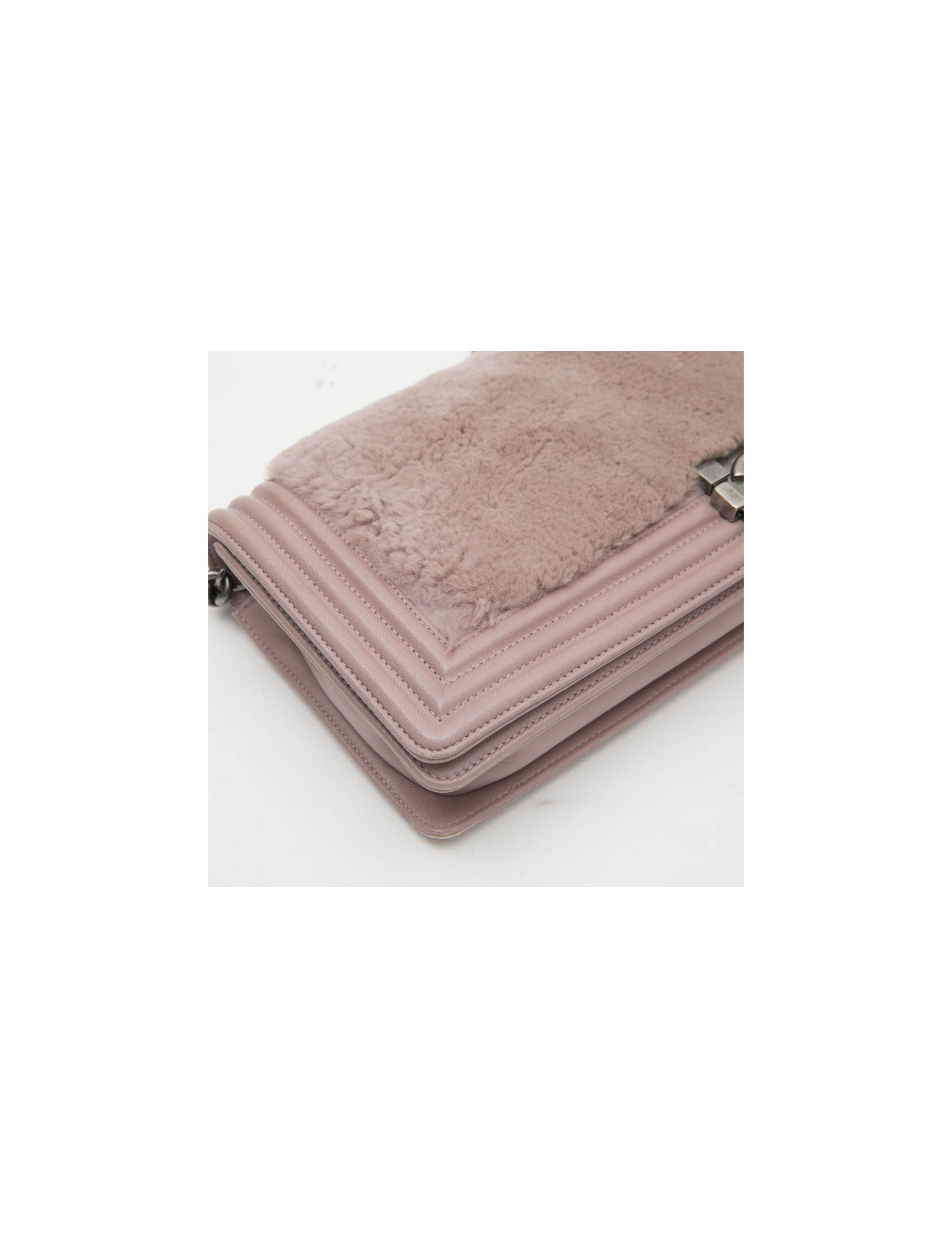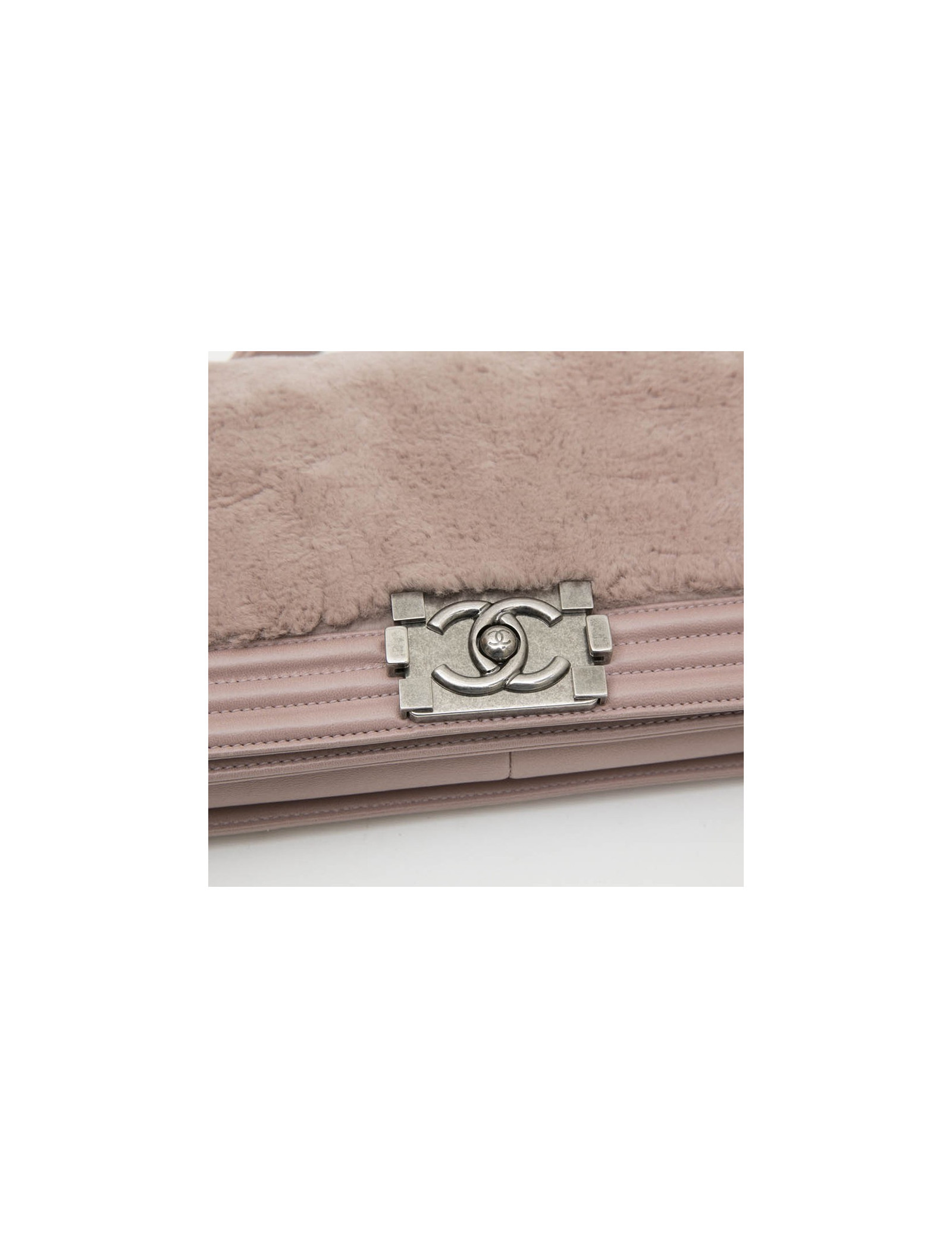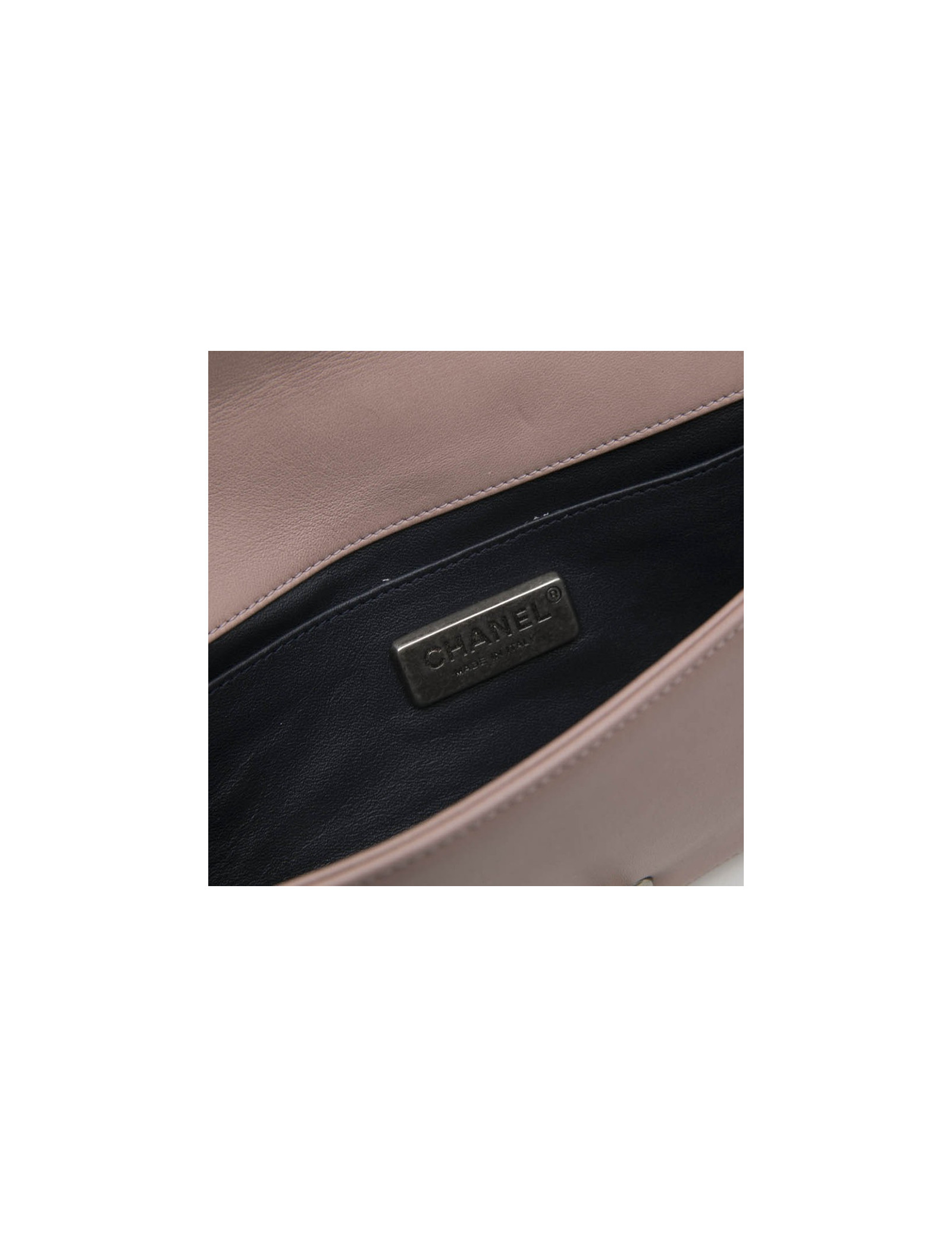 Sac 'Boy' Chanel en orylag et cuir vieux rose . Collection Automne 2009. Bijouterie argent vieilli. L'intérieur est en cuir bleu marine. Pièce de défilé, Pas d'hologramme ni de carte d'authenticité.