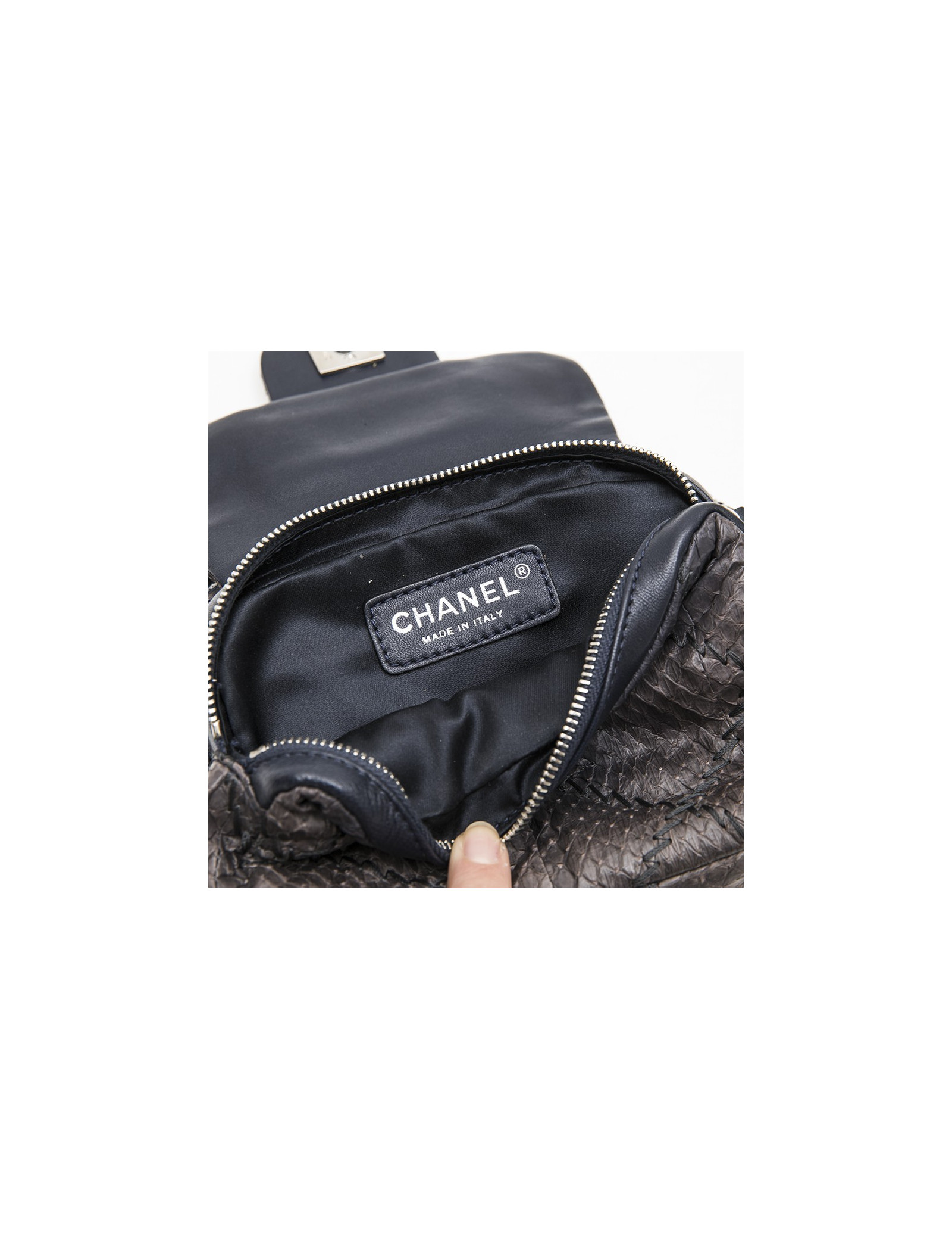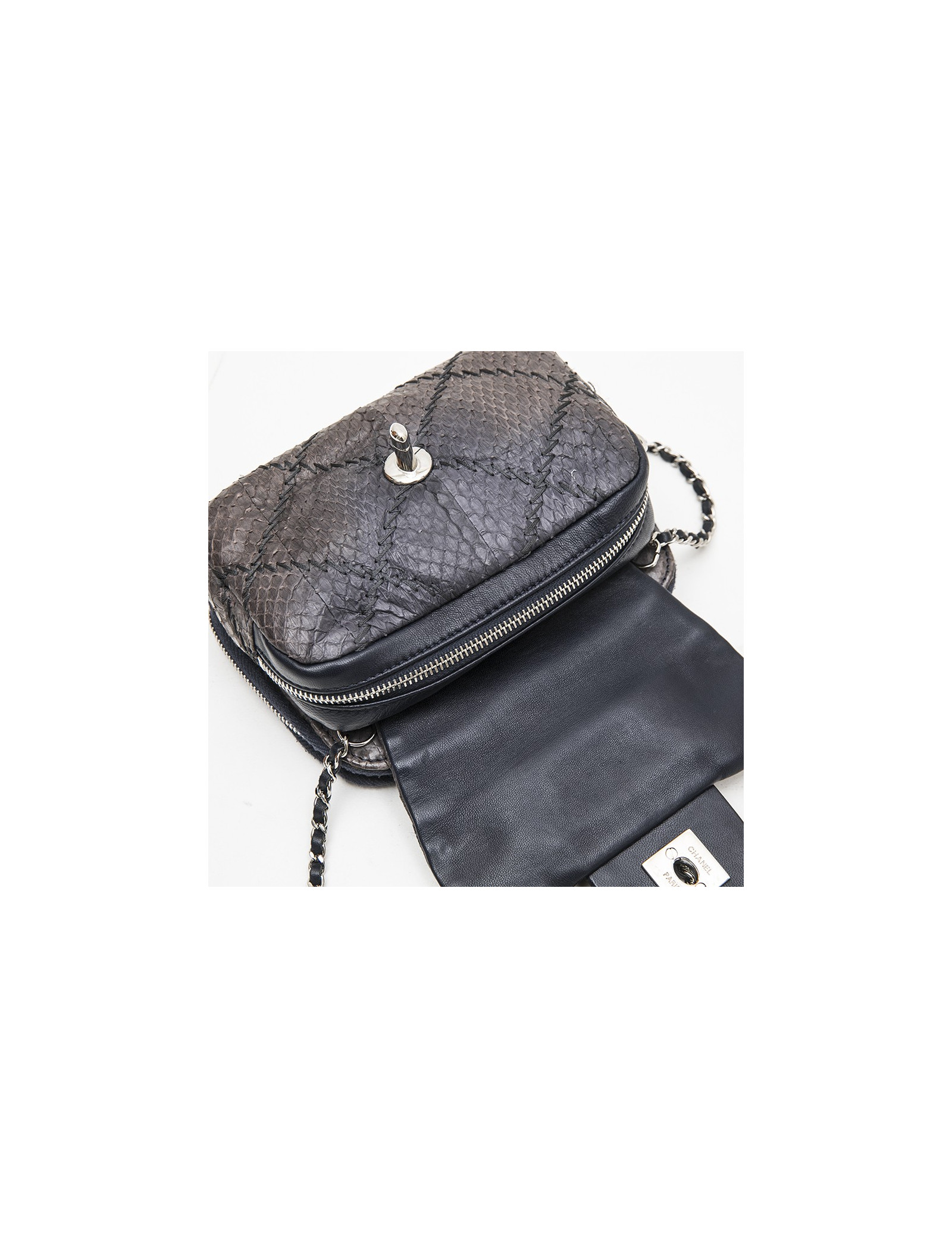 Mini sac CHANEL en serpent d'eau douce dégradé gris