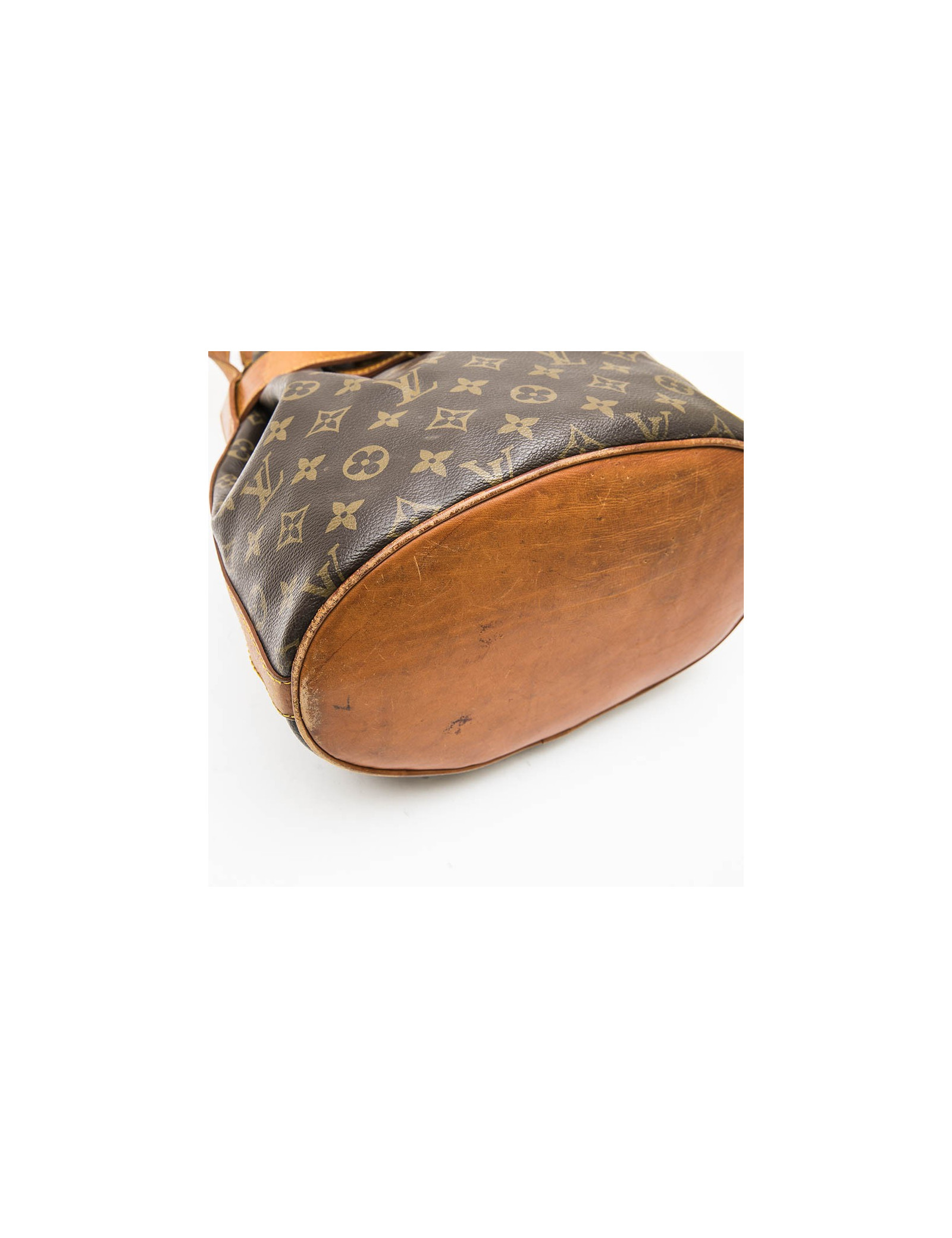 Sac seau Louis Vuitton vintage en toile monogram marron. Bijouterie argentée. Finitions en cuir de vache naturel.