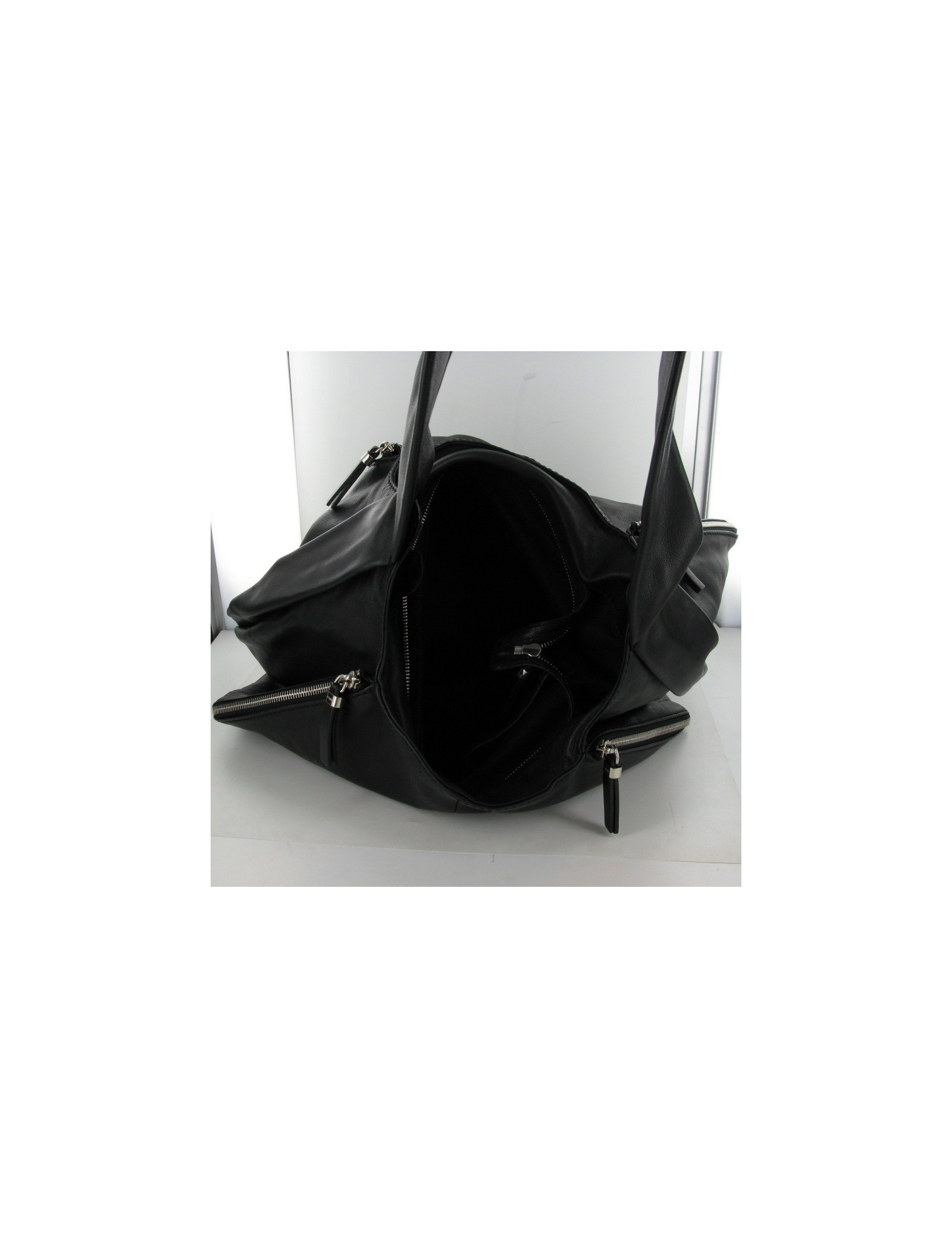 Superbe sac JIL SANDER en cuir noir. Il possède quatre poches extérieures zippées, trois poches intérieures dont une zippée. L'intérieur est en toile noire et il se ferme par zip. La bandoulière est en cuir noir et mesure 58 cm.