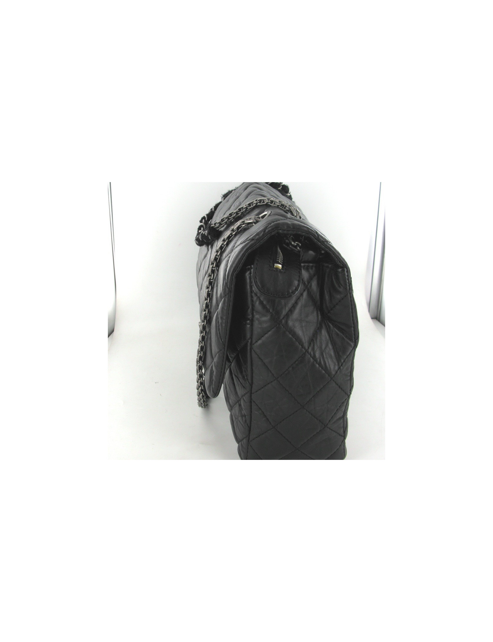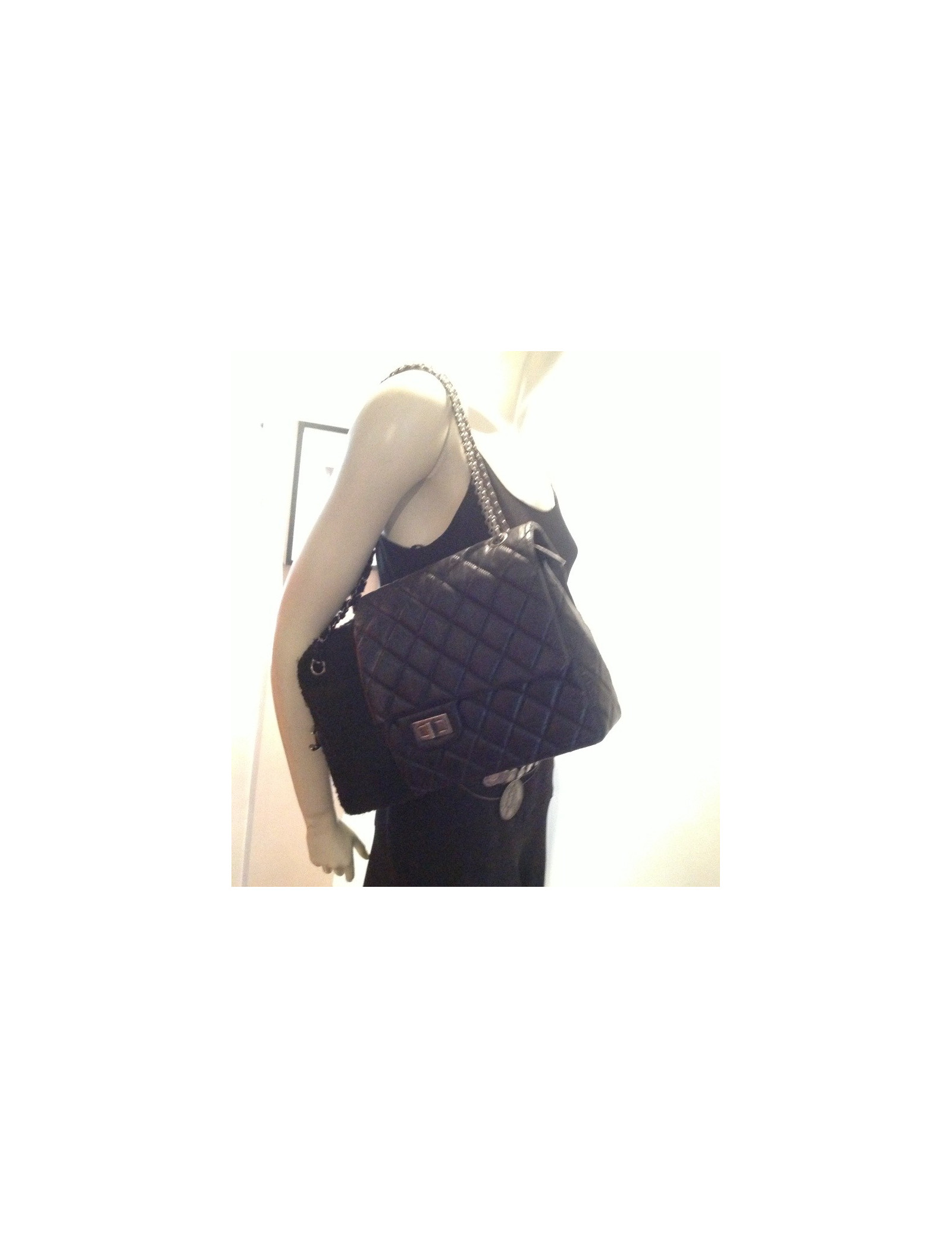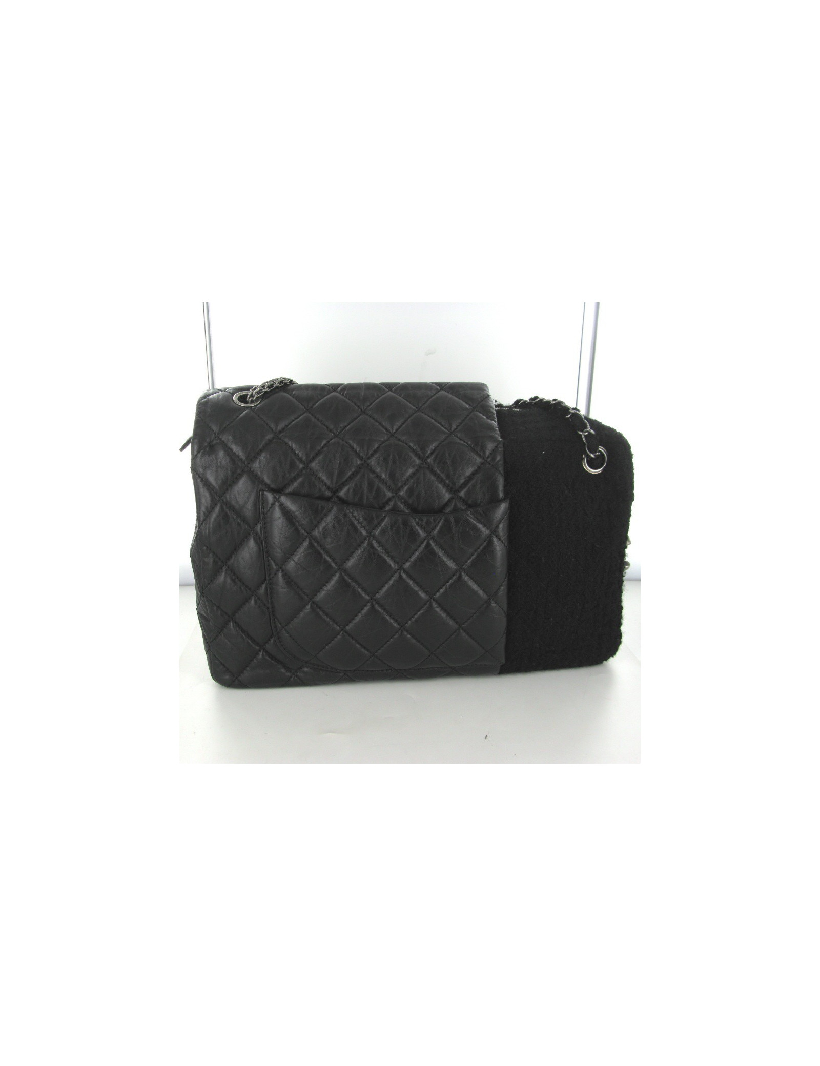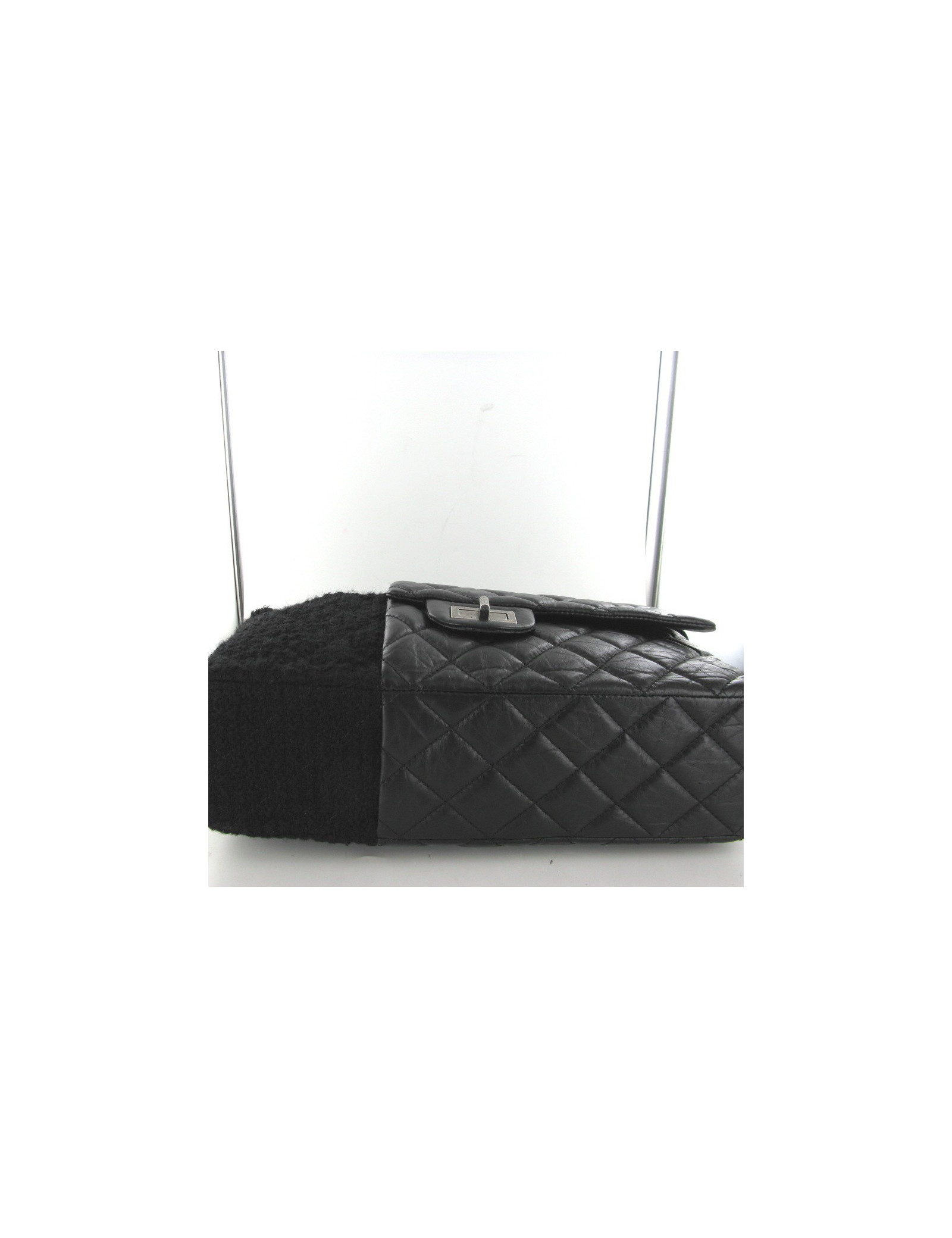 Sac CHANEL mi caméra en tweed noir mi 2.55 en cuir vieilli noir