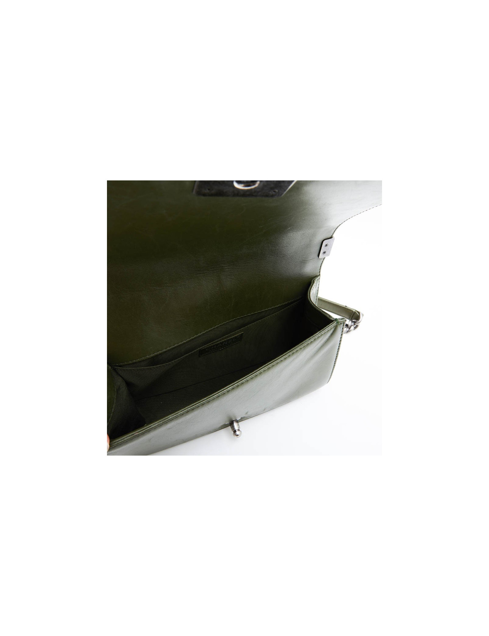 Sac "Boy" CHANEL cuir d'agneau lisse vert kaki