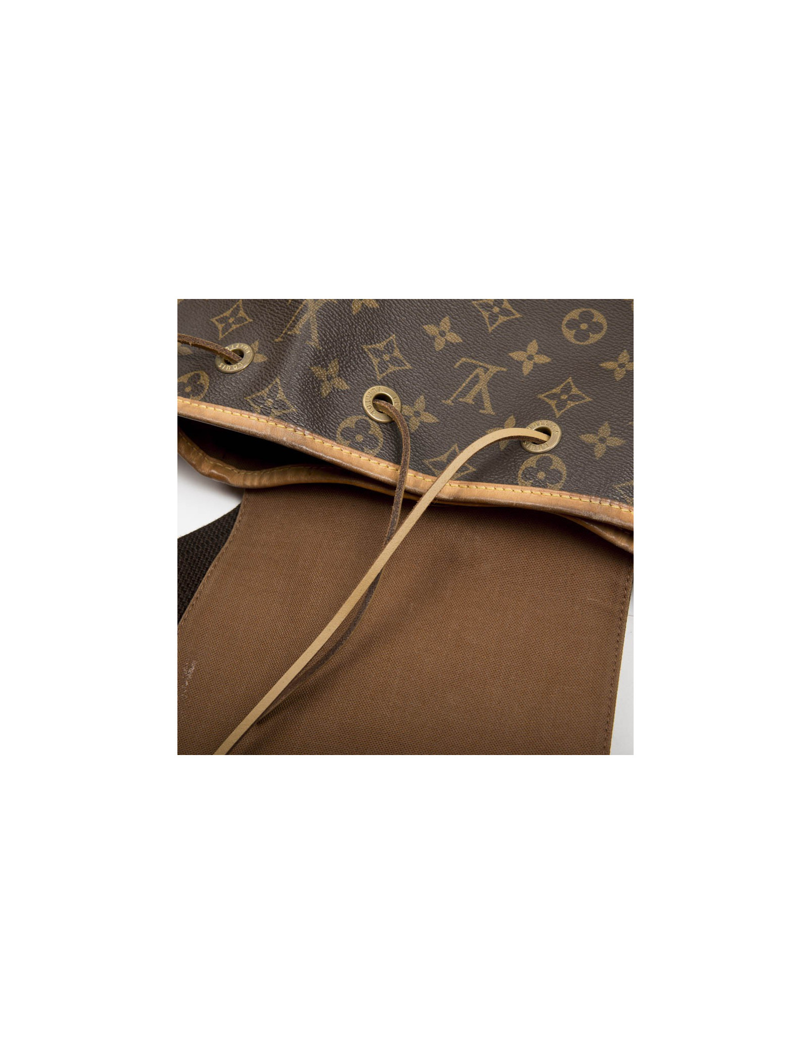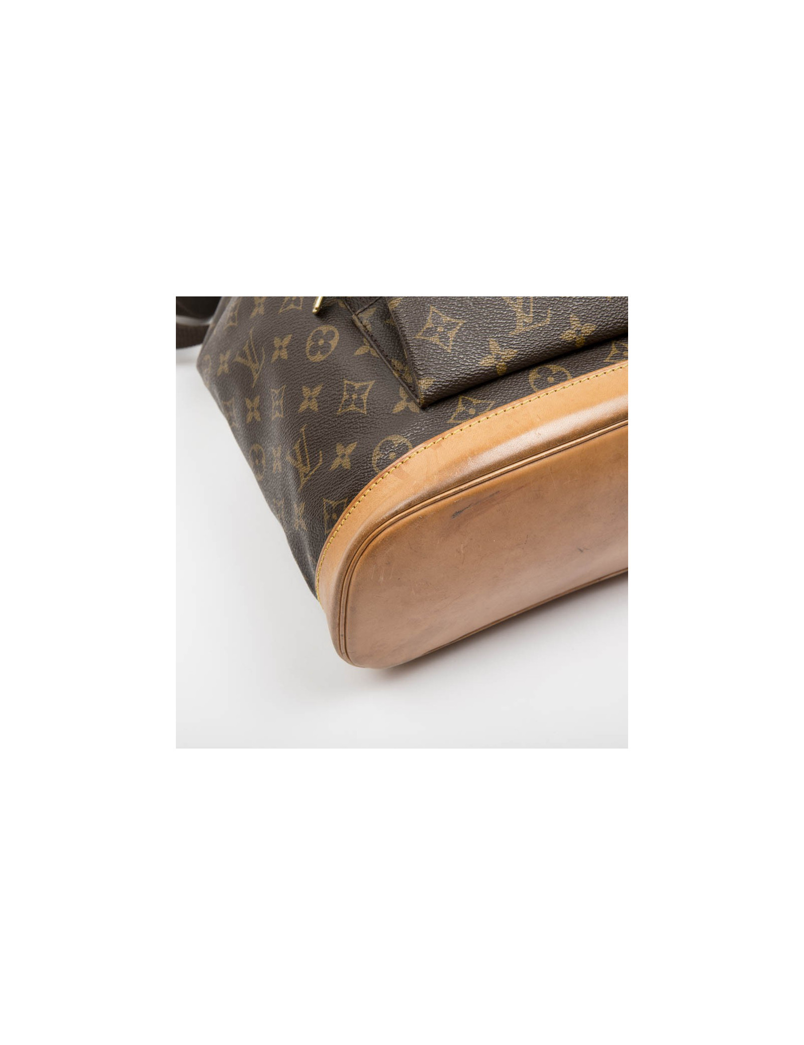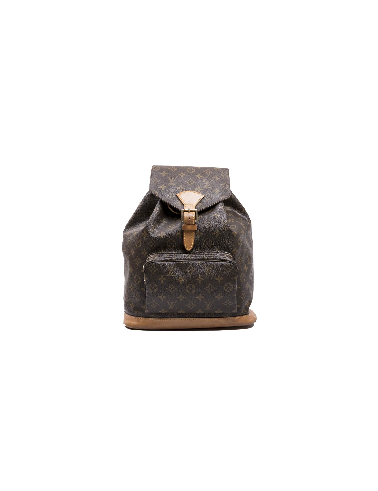 Sac à dos 'Bagpack' Louis Vuitton en toile enduite monogram et garnitures en cuir de vachette naturel. Une poche avec fermeture à glissière à l'avant du sac et une poche fente à l'intérieur.