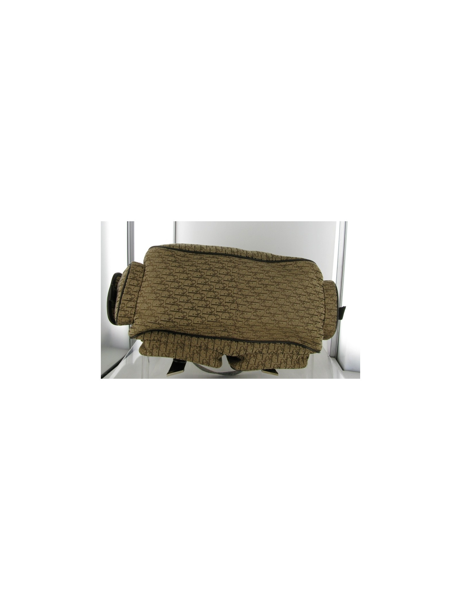 Joli sac DIOR en toile monogrammée et cuir marron. La bijouterie est en métal argent palladié. Il possède 4 poches extérieures. L'intérieur est en toile beige, il y a une poche intérieure zippée. Les anses sont en cuir et tissu marron, elles mesurent 34 cm. Il y a des traces de stylos à l'intérieur.