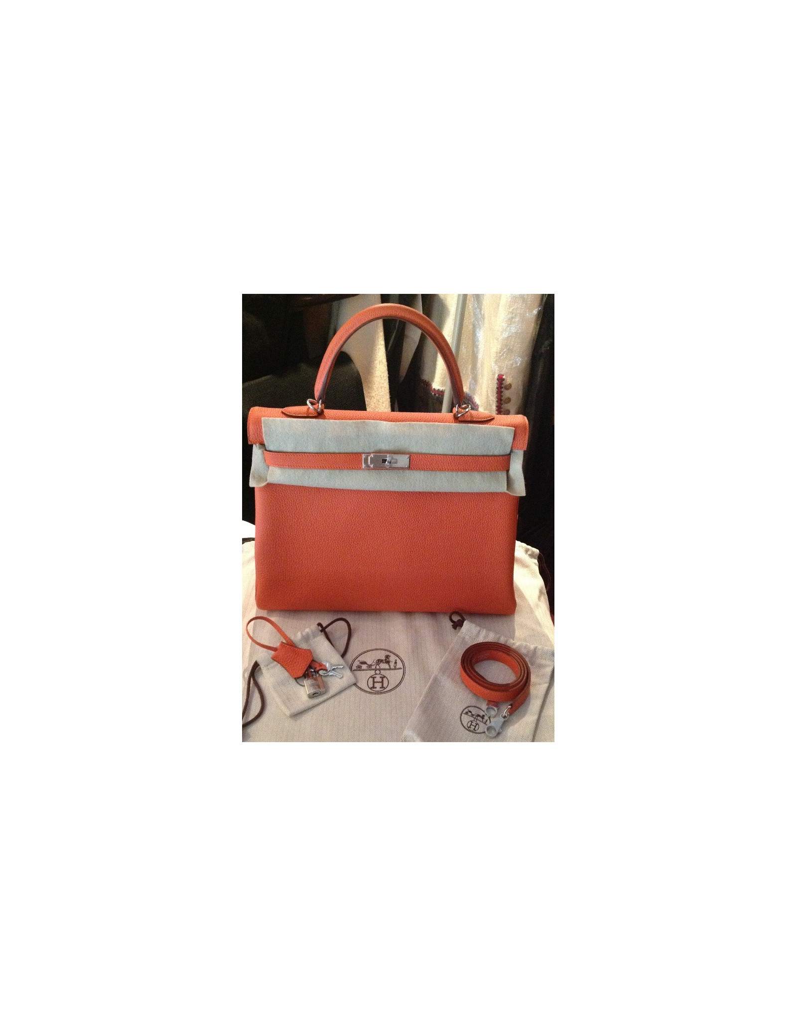 Incontournable Kelly 35 HERMES NEUF en cuir togo orange et bijouterie argent palladié