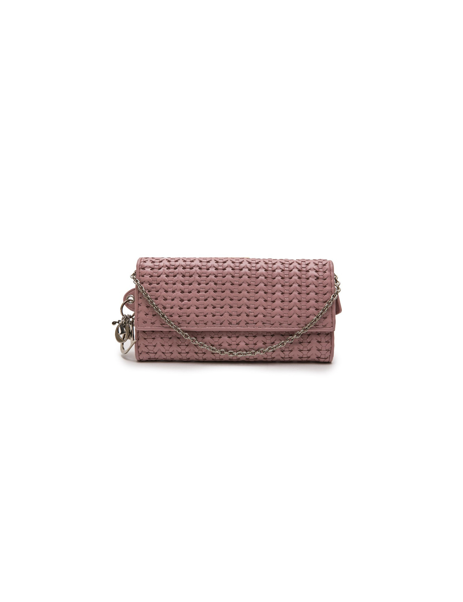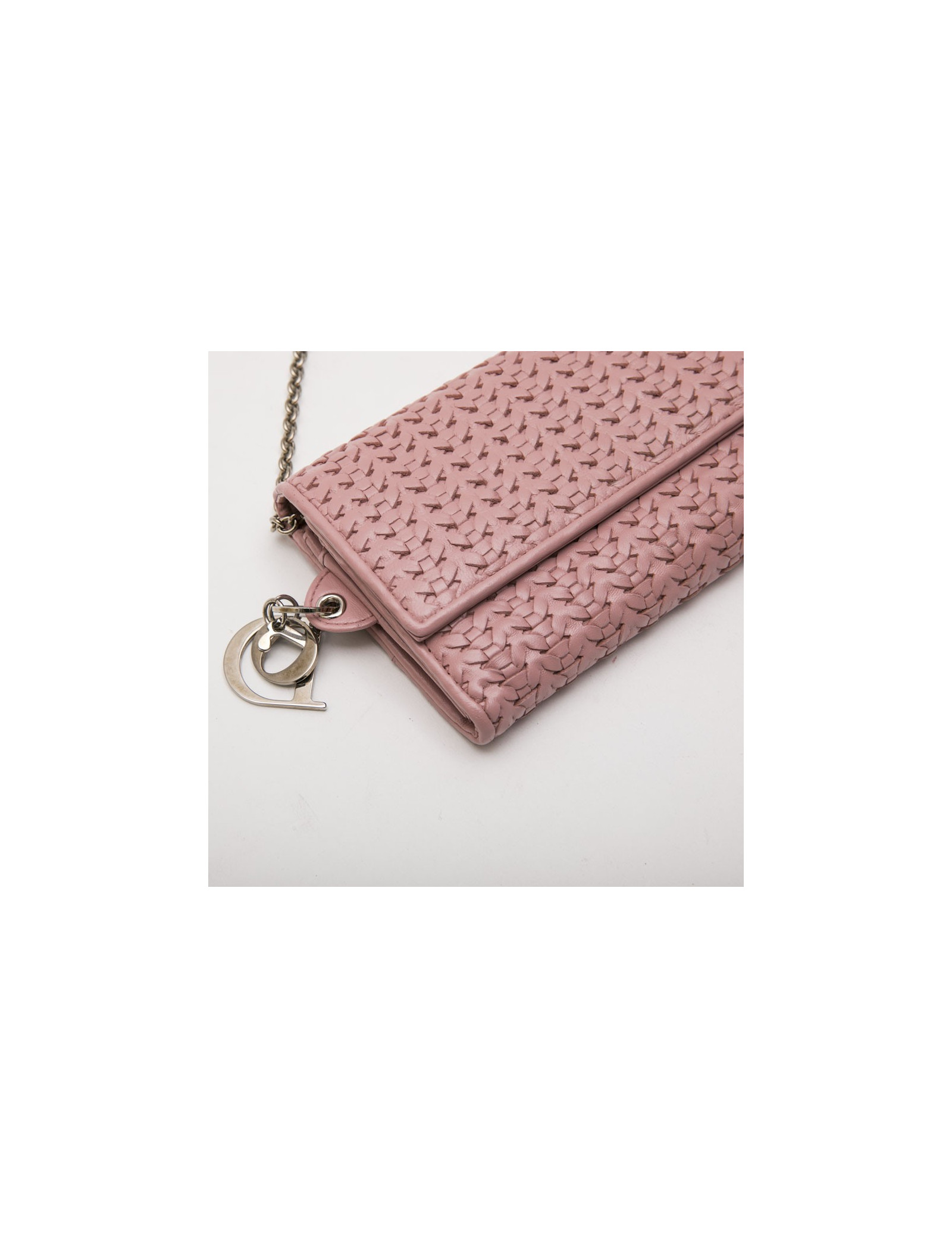 Sac Christian Dior en cuir tressé rose pâle. Fermeture par bouton pression.