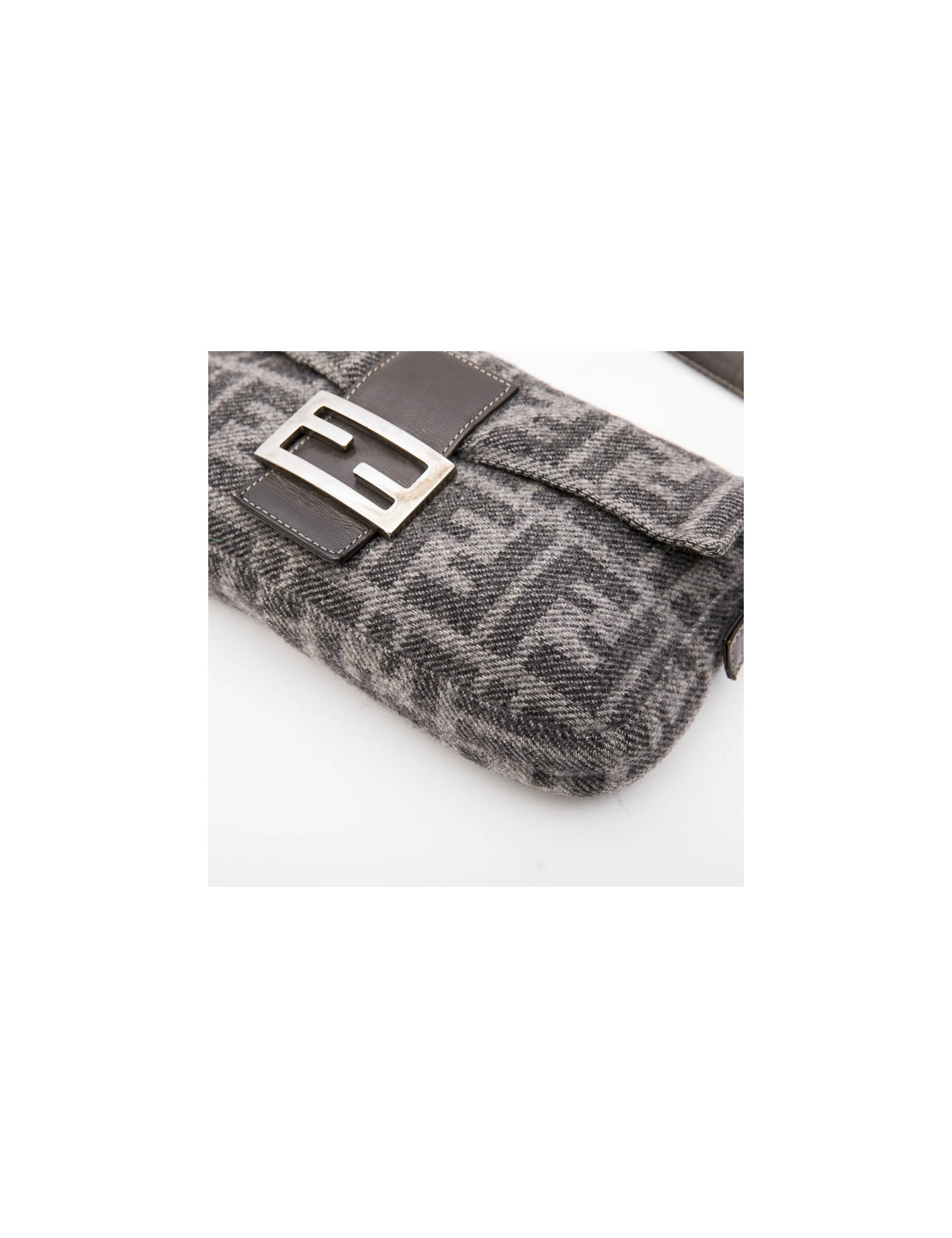 Sac baguette FENDI en laine monogram gris