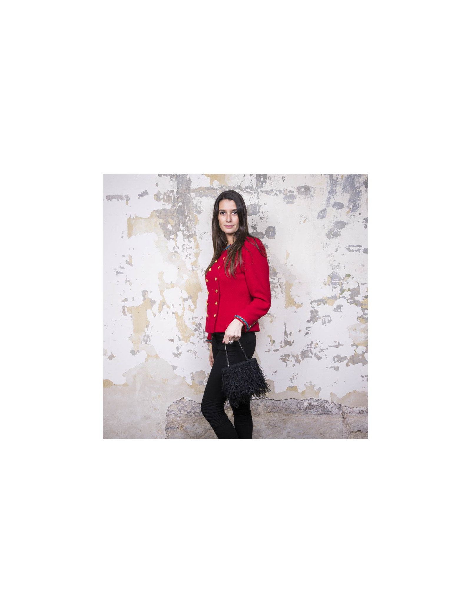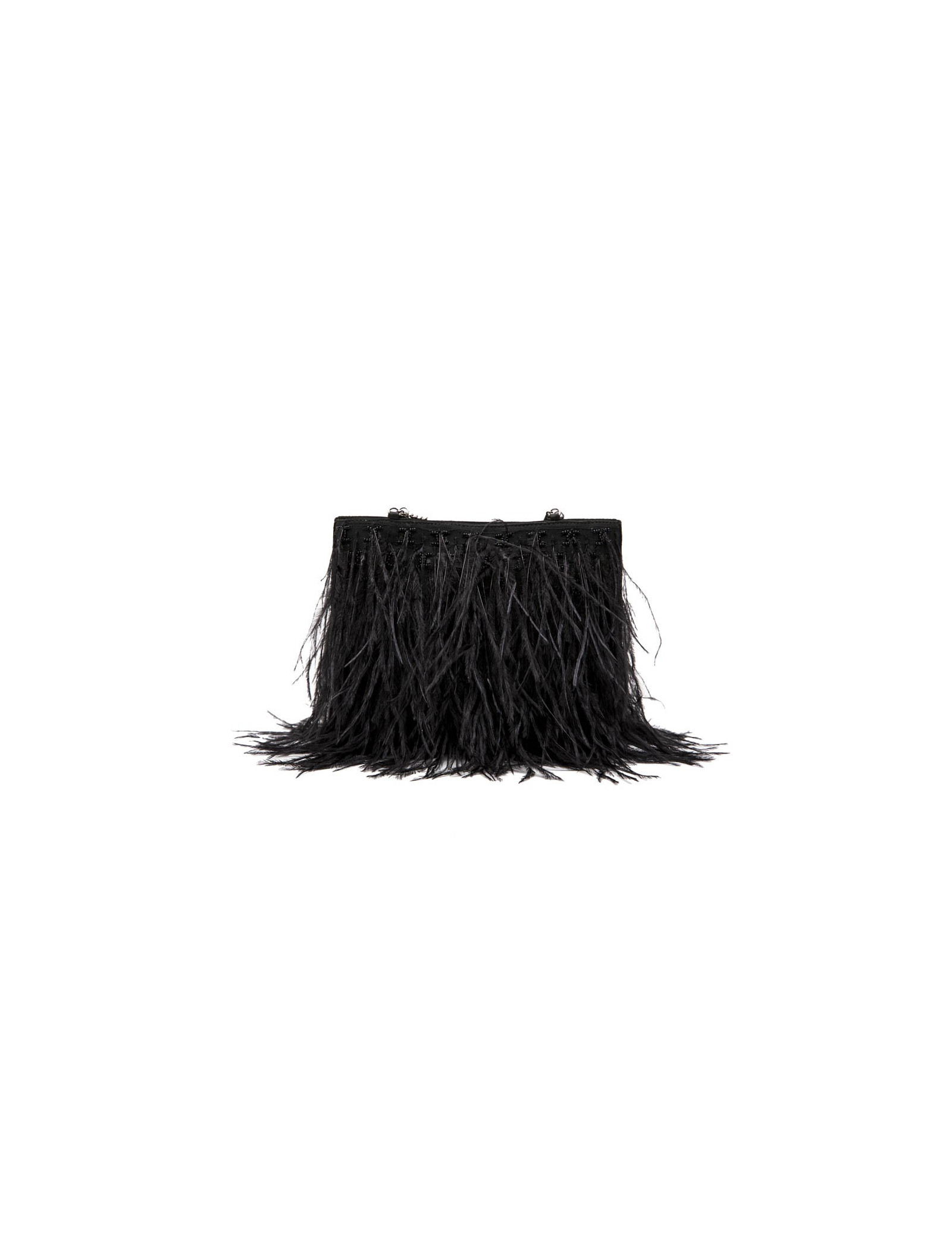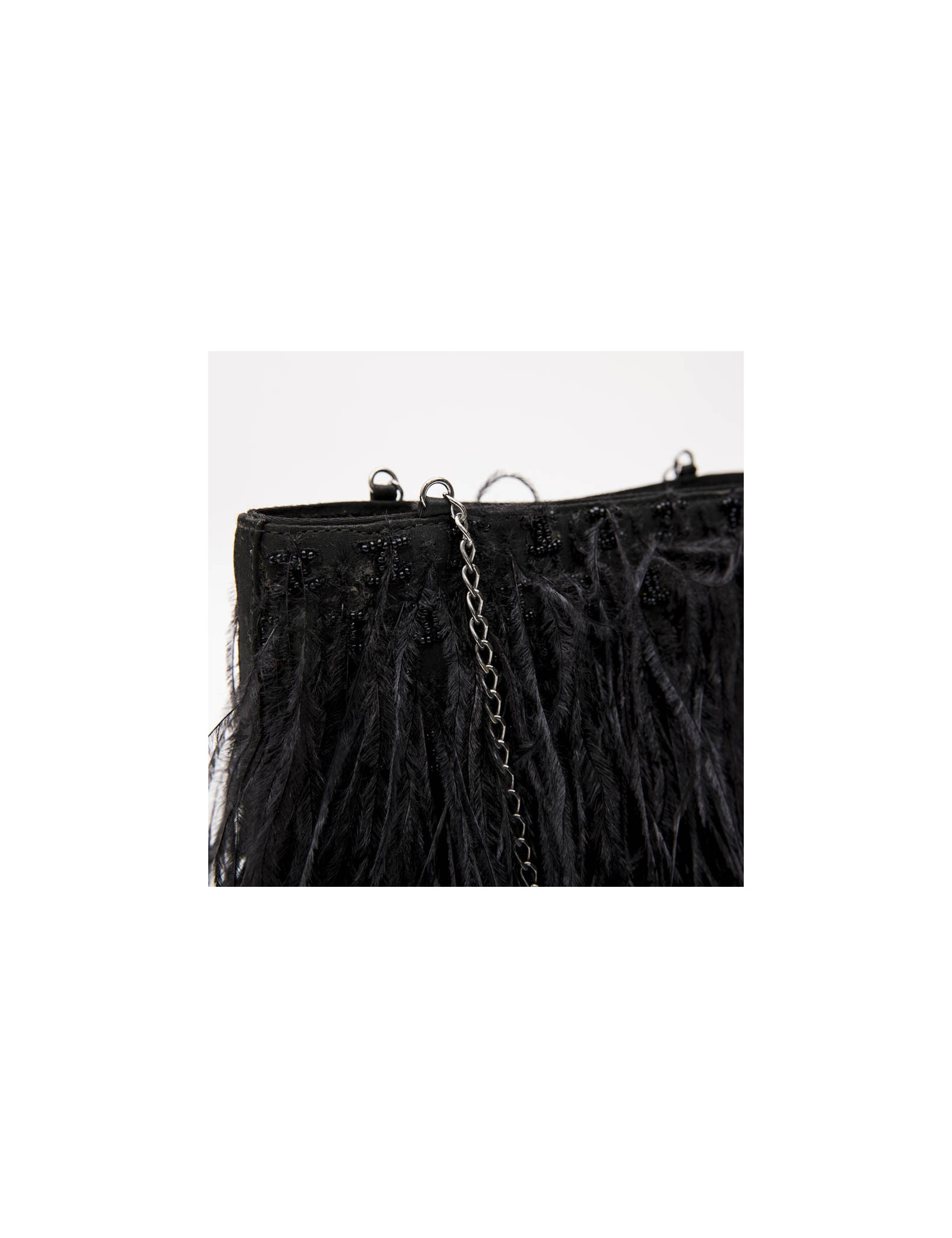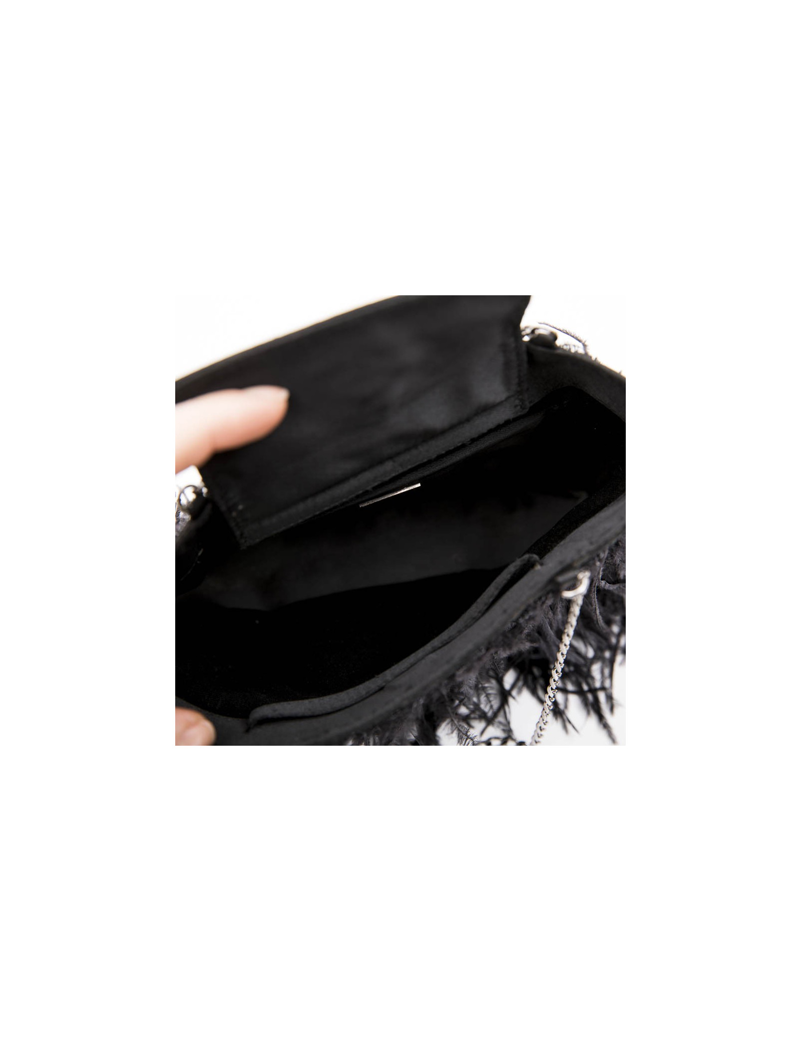 Mini sac du soir Chanel Couture en plumes noires et "CC" perlés noirs. Métallerie argent. L'intérieur est en satin noir. Fermeture aimantée. Pas de carte d'authenticité, ni d'hologramme. En très bon état.