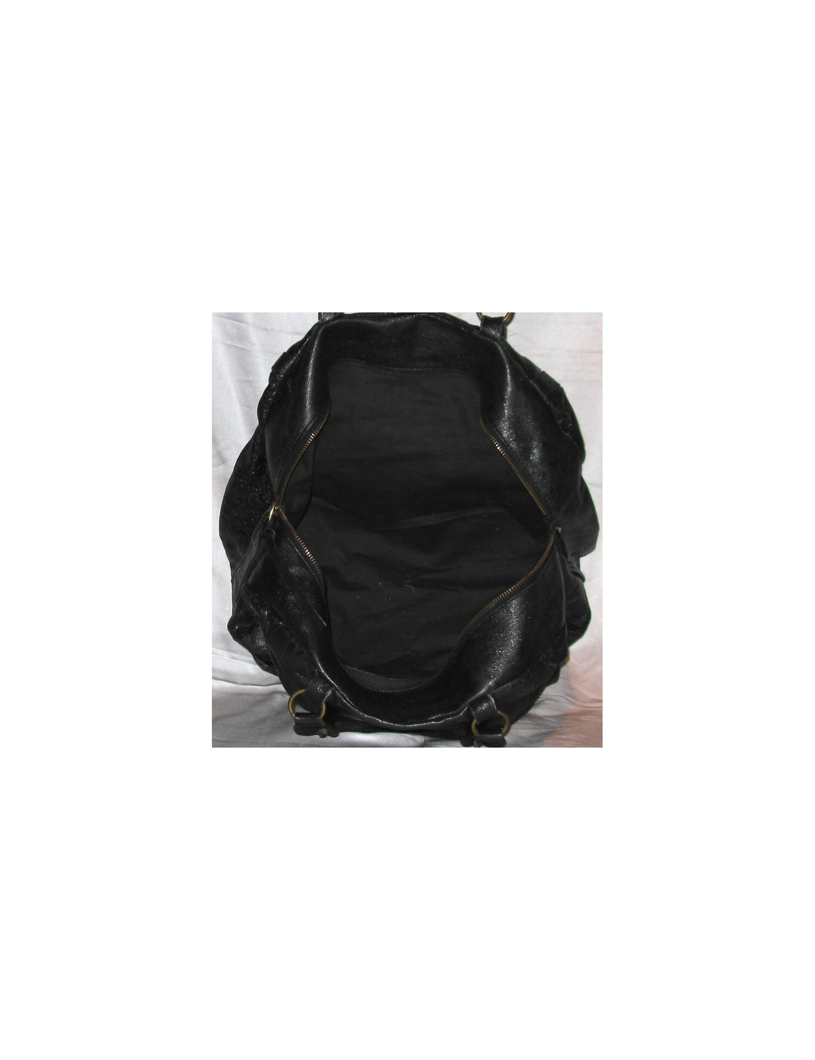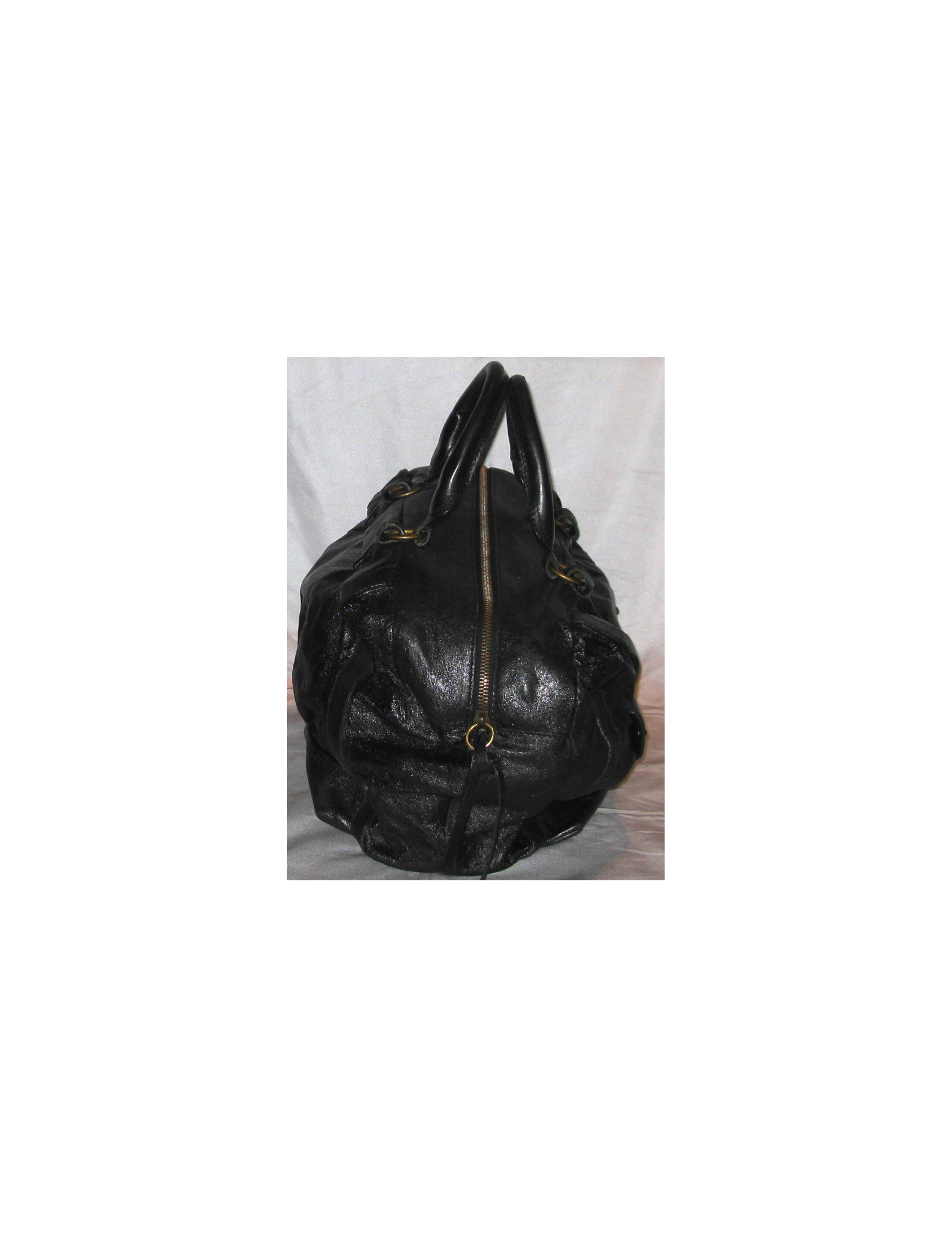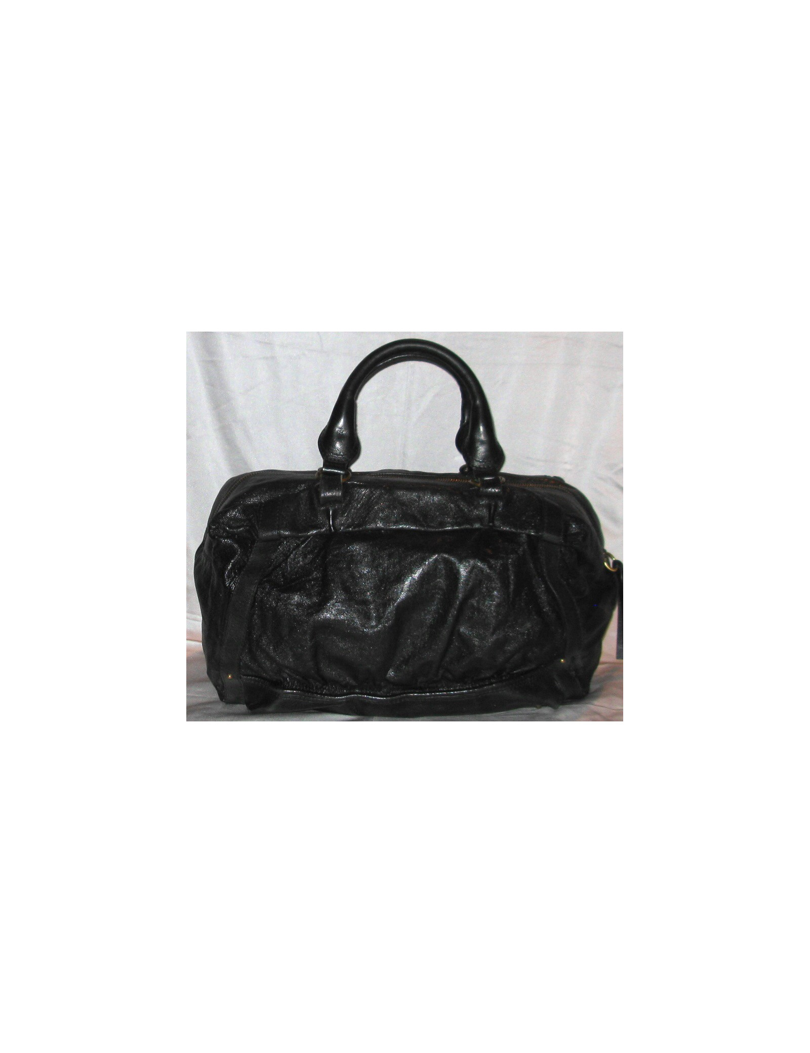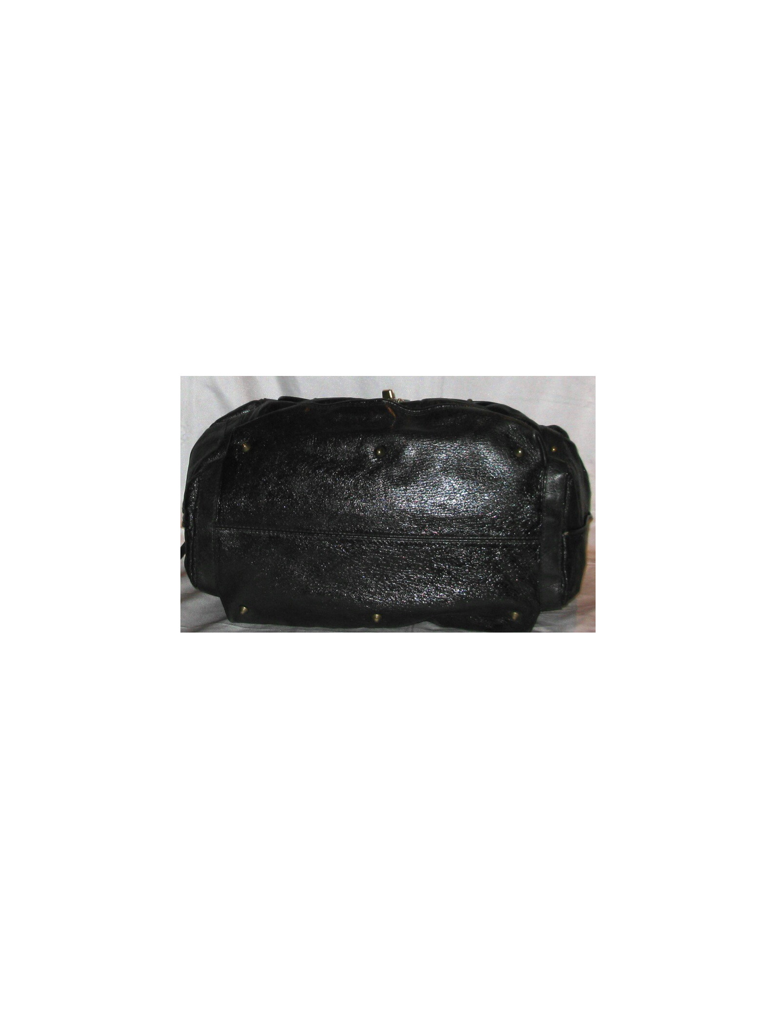 Sac CHLOE en cuir brillant noir grand format. La bijouterie est en laiton vieilli or. Il y a une poche extérieure avec rabat. L'intérieur est en toile noire et comporte une poche zippée de taille moyenne.