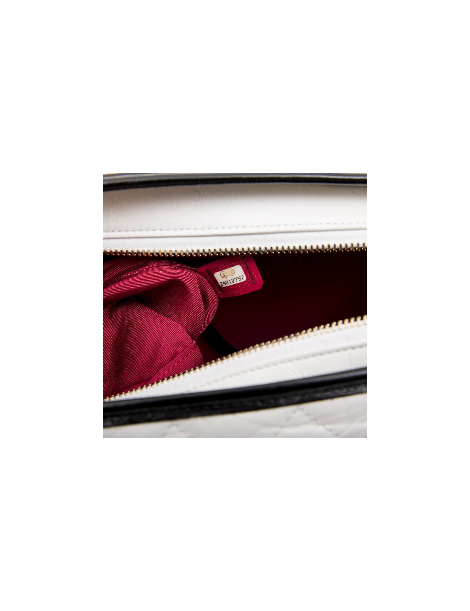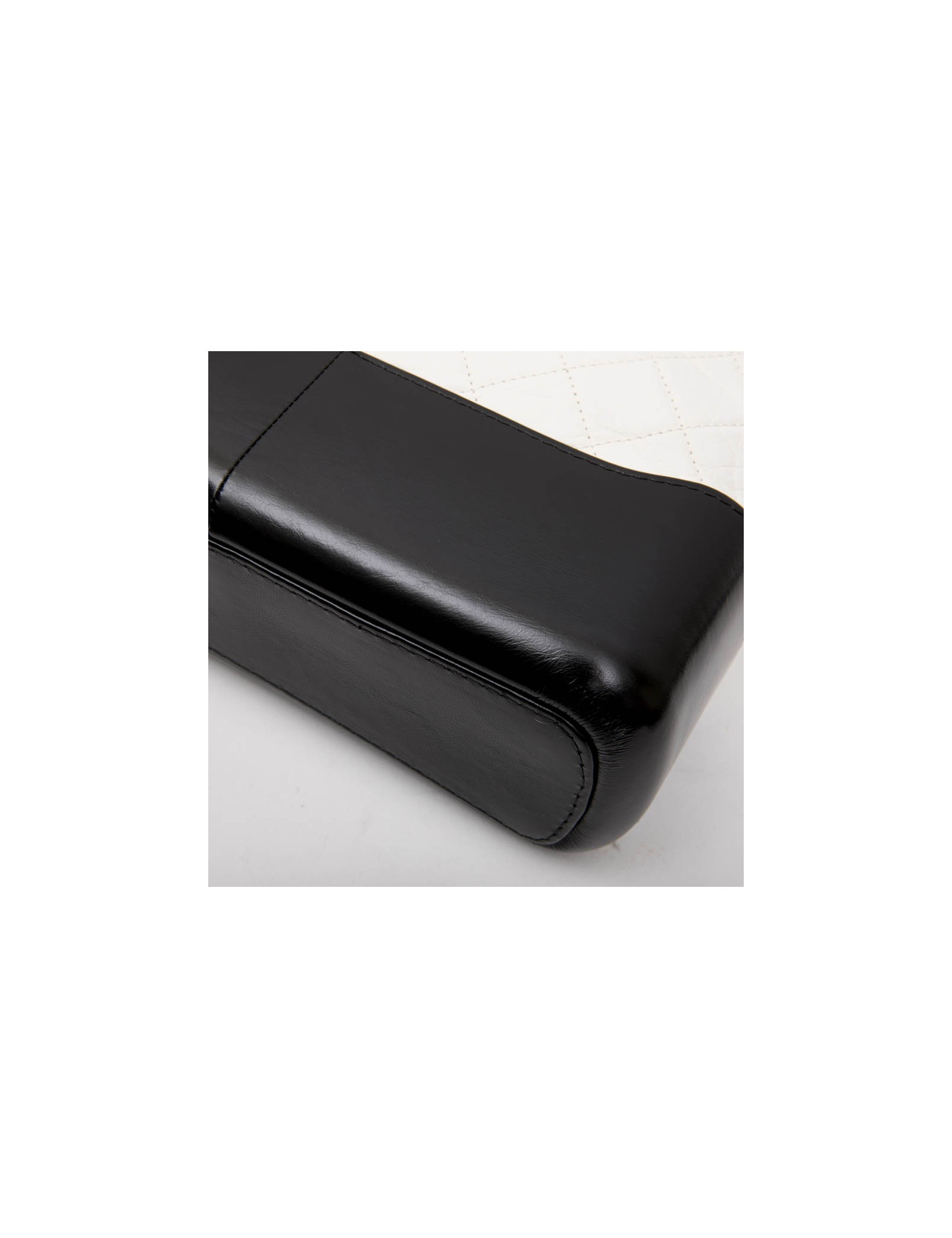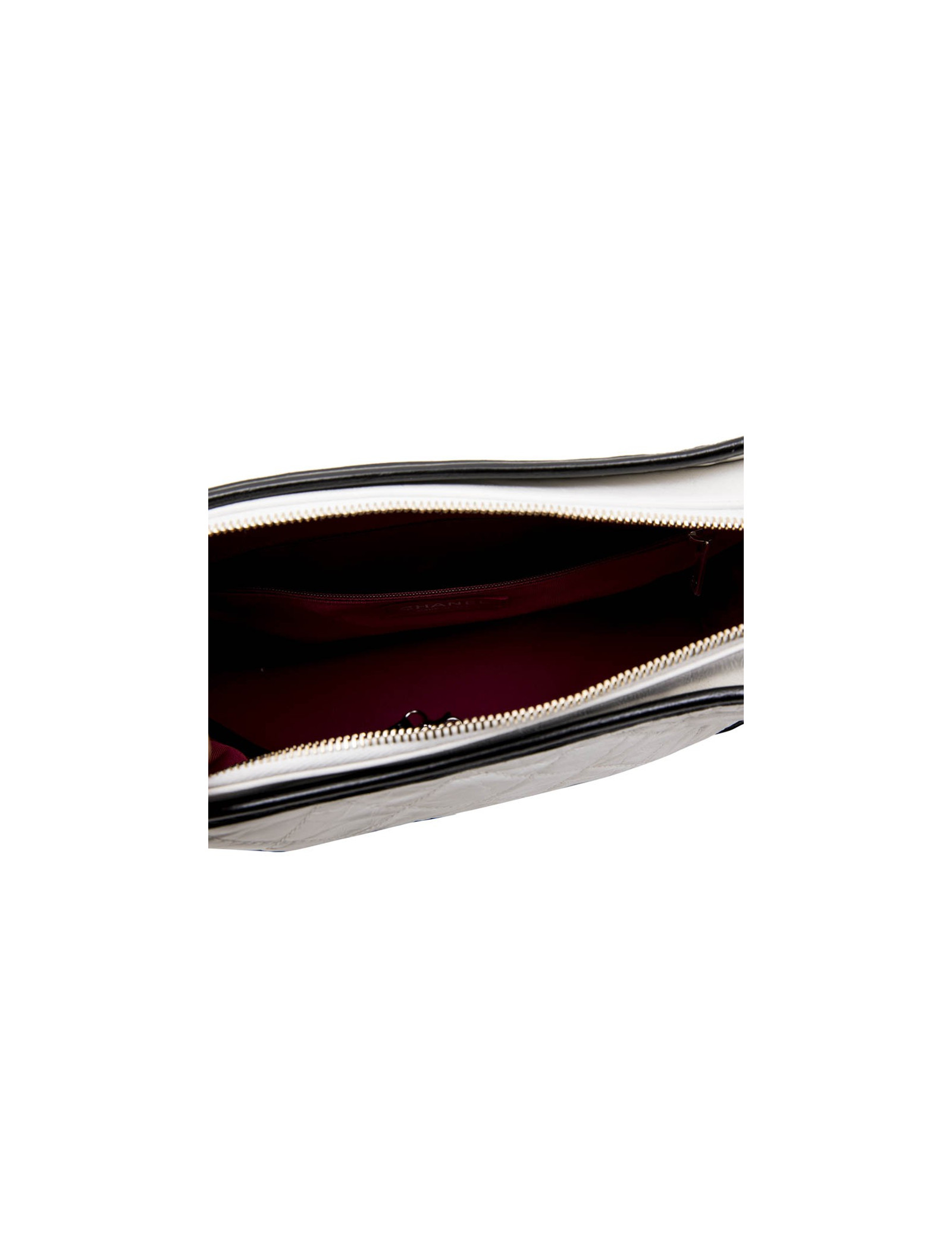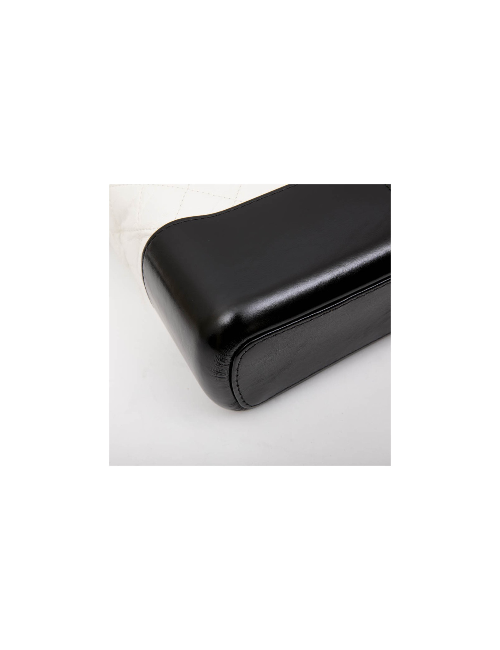 Sac" Hobo" Gabrielle Chanel en cuir matelassé vieilli blanc et cuir lisse noir. Fermeture à glissière.