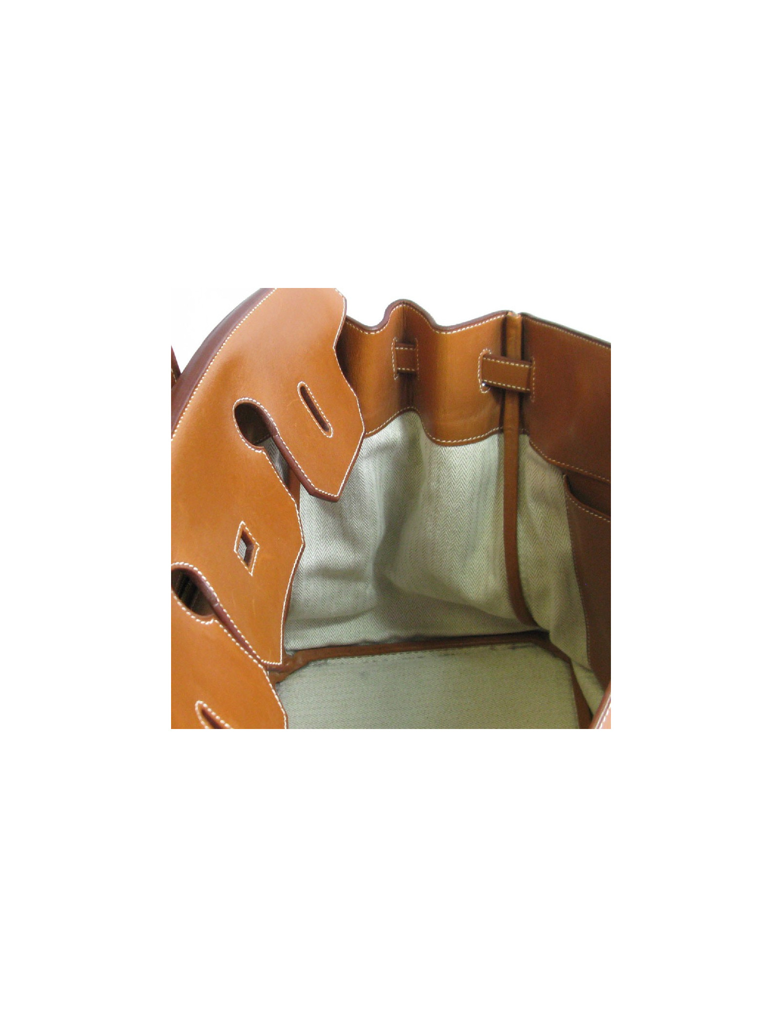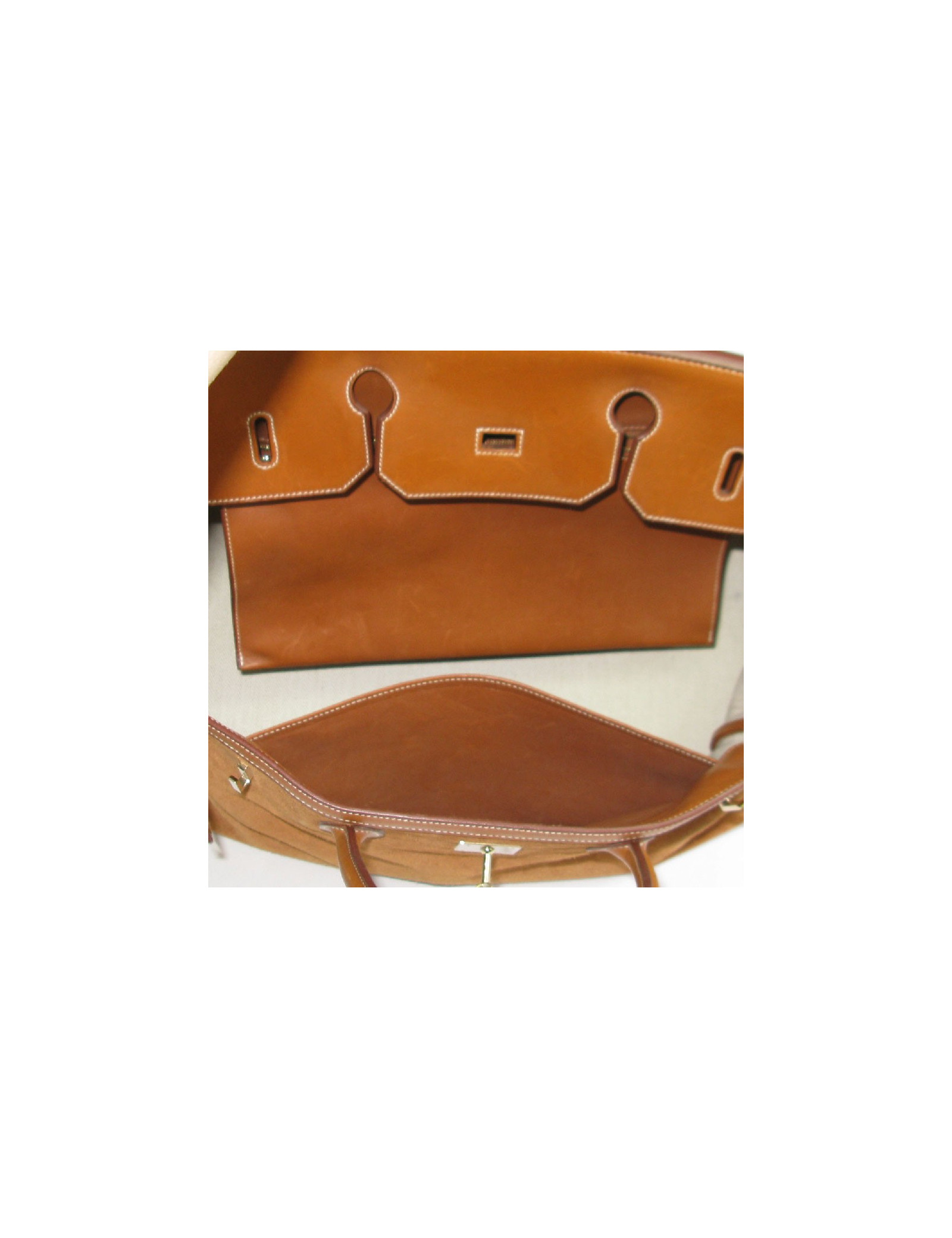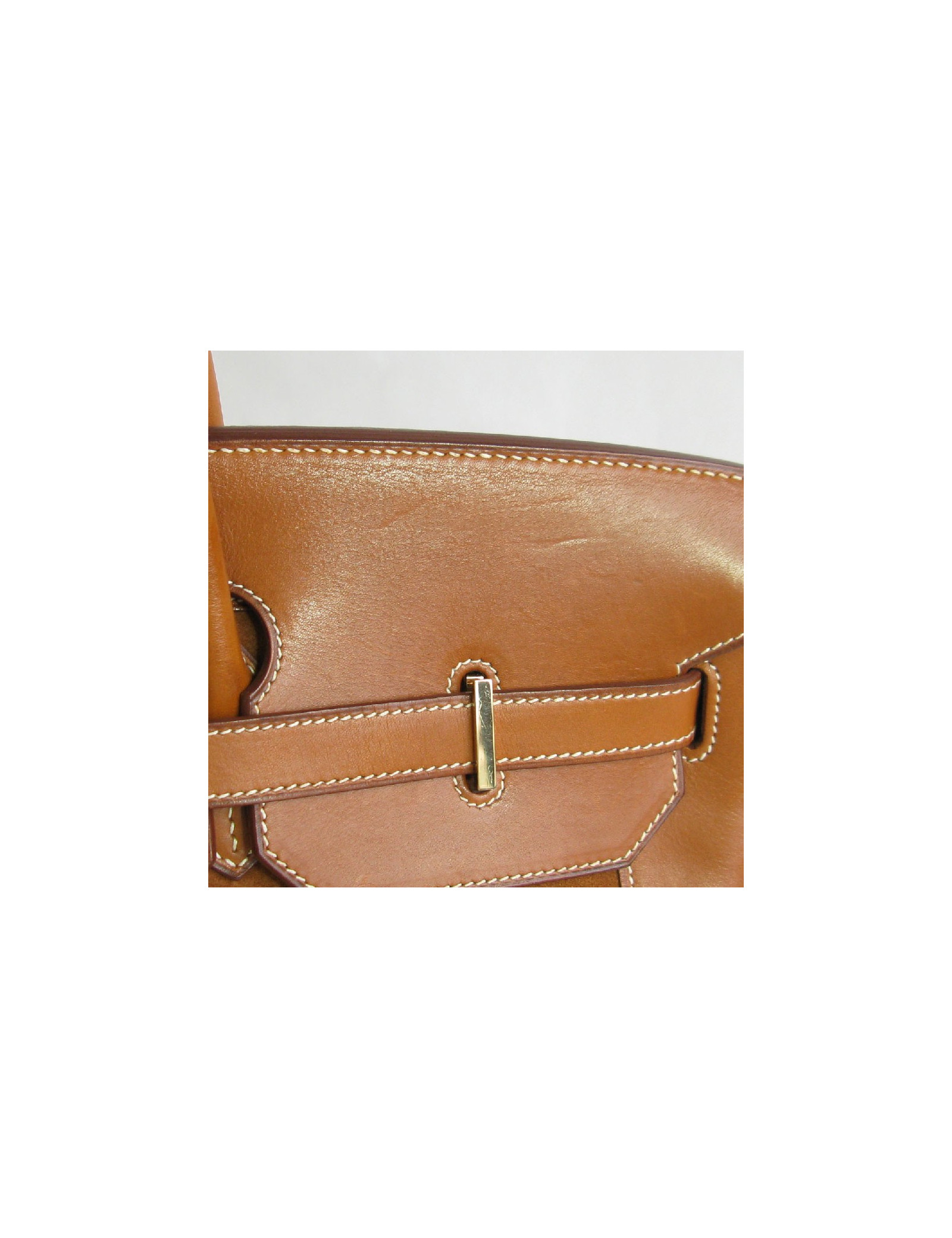 Birkin HERMÈS Grizzly 40 cuir barenia et veau doblis fauve
