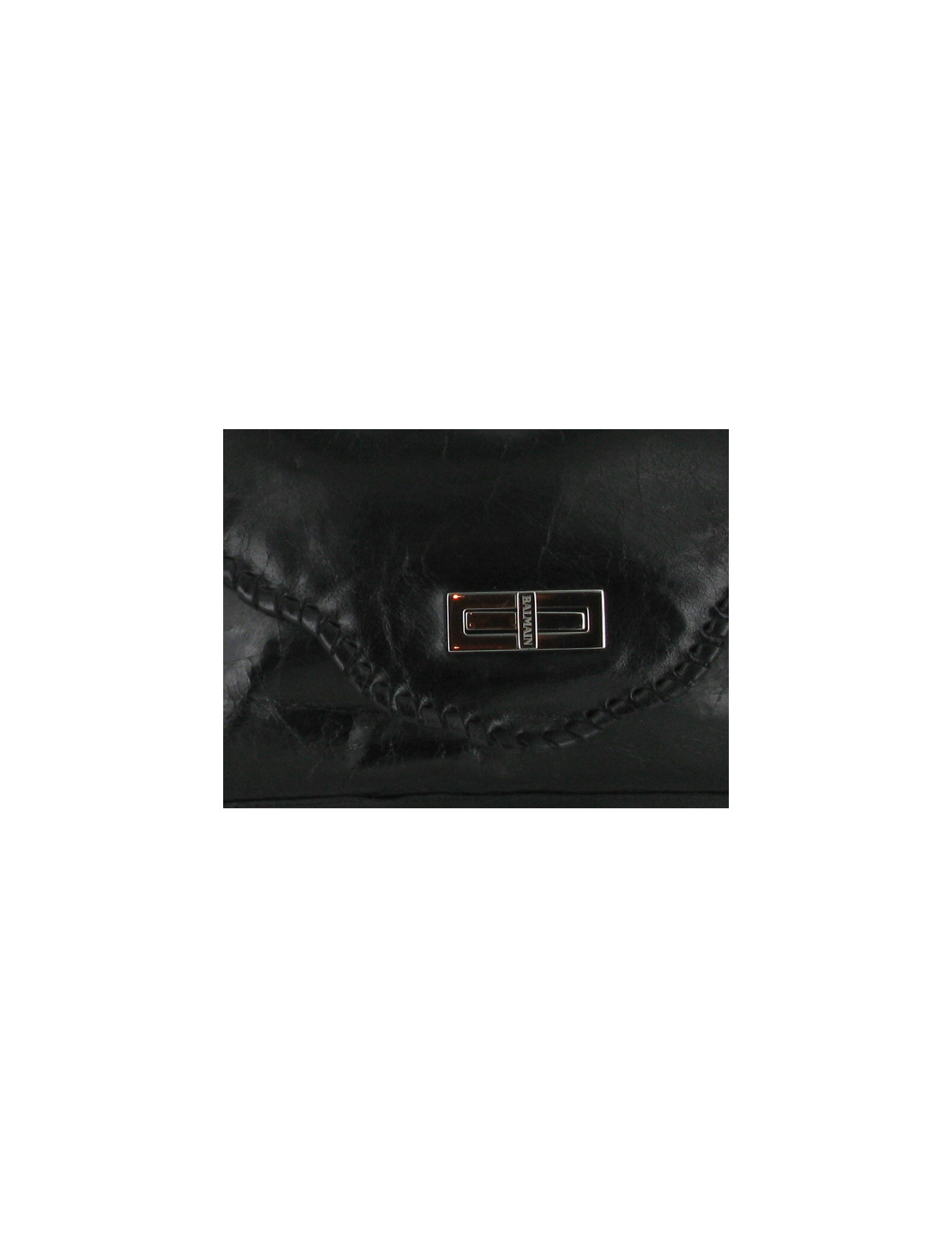 Sac Balmain en cuir vieilli noir brillant