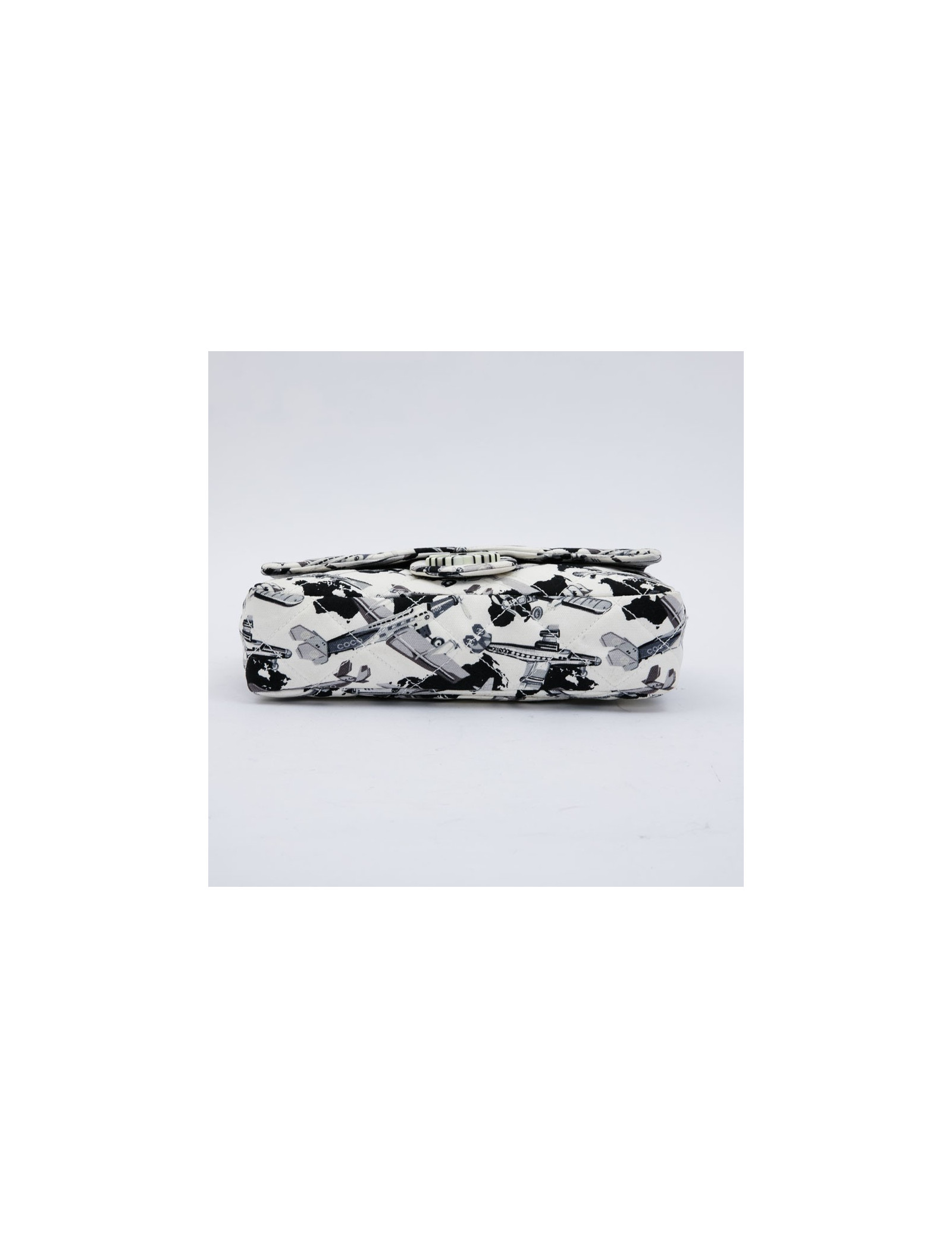 Sac CHANEL timeless en toile écrue et grise imprimés avions
