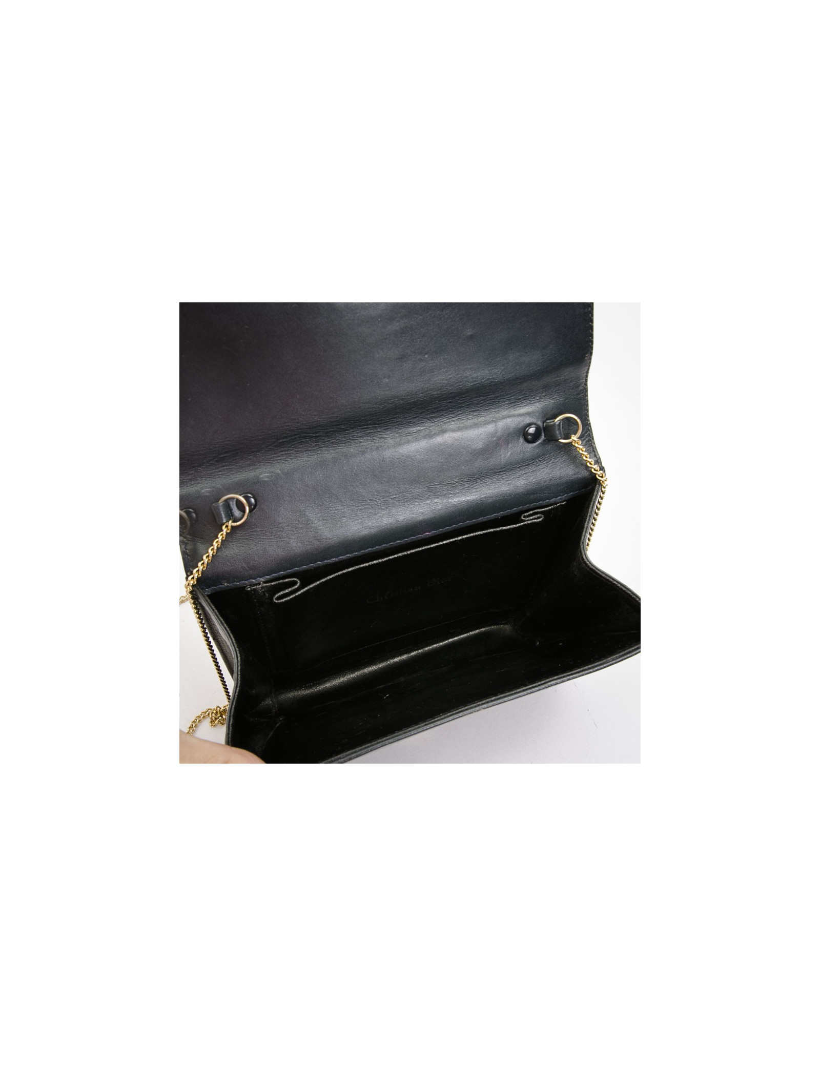 Mini sac DIOR vintage en cuir bleu marine chaîne dorée