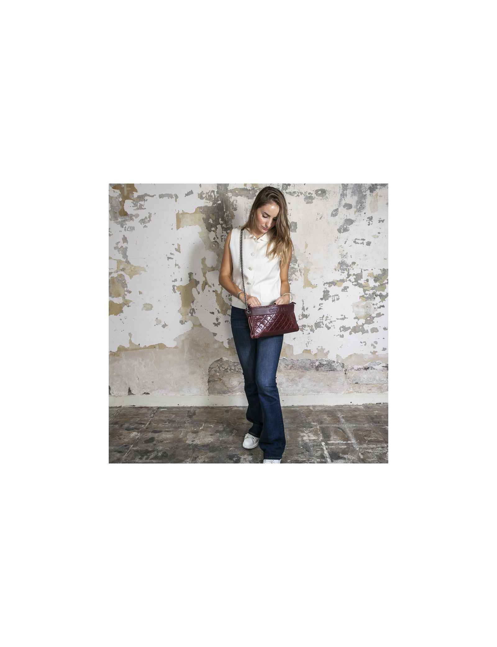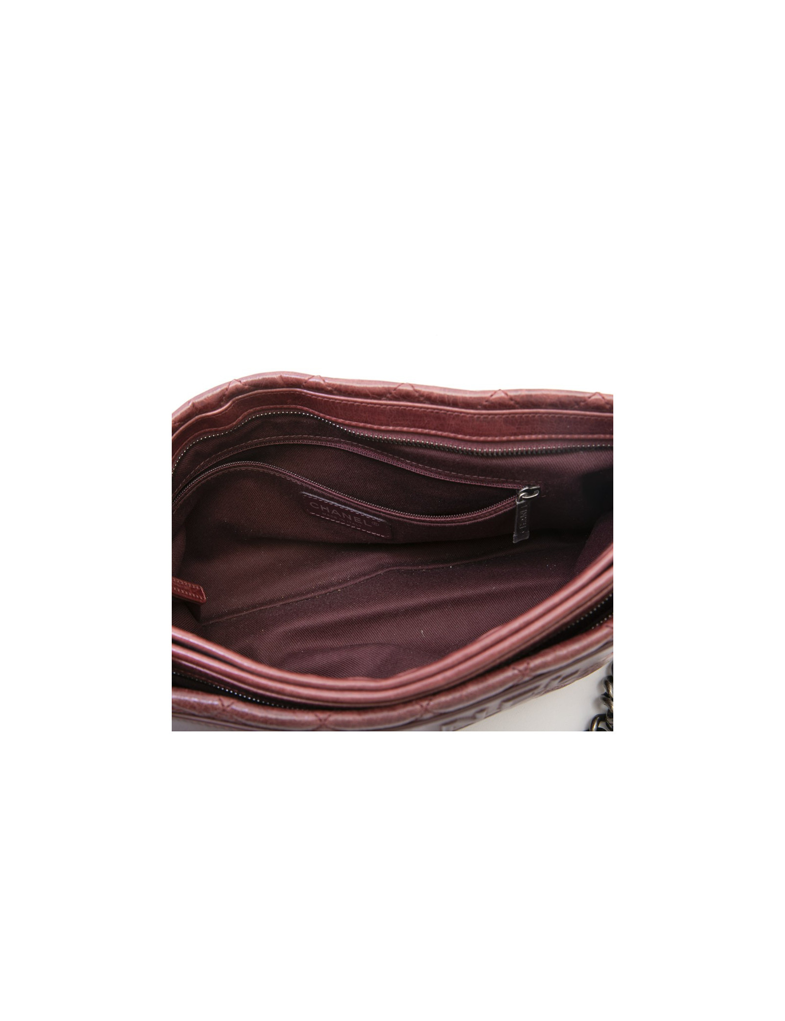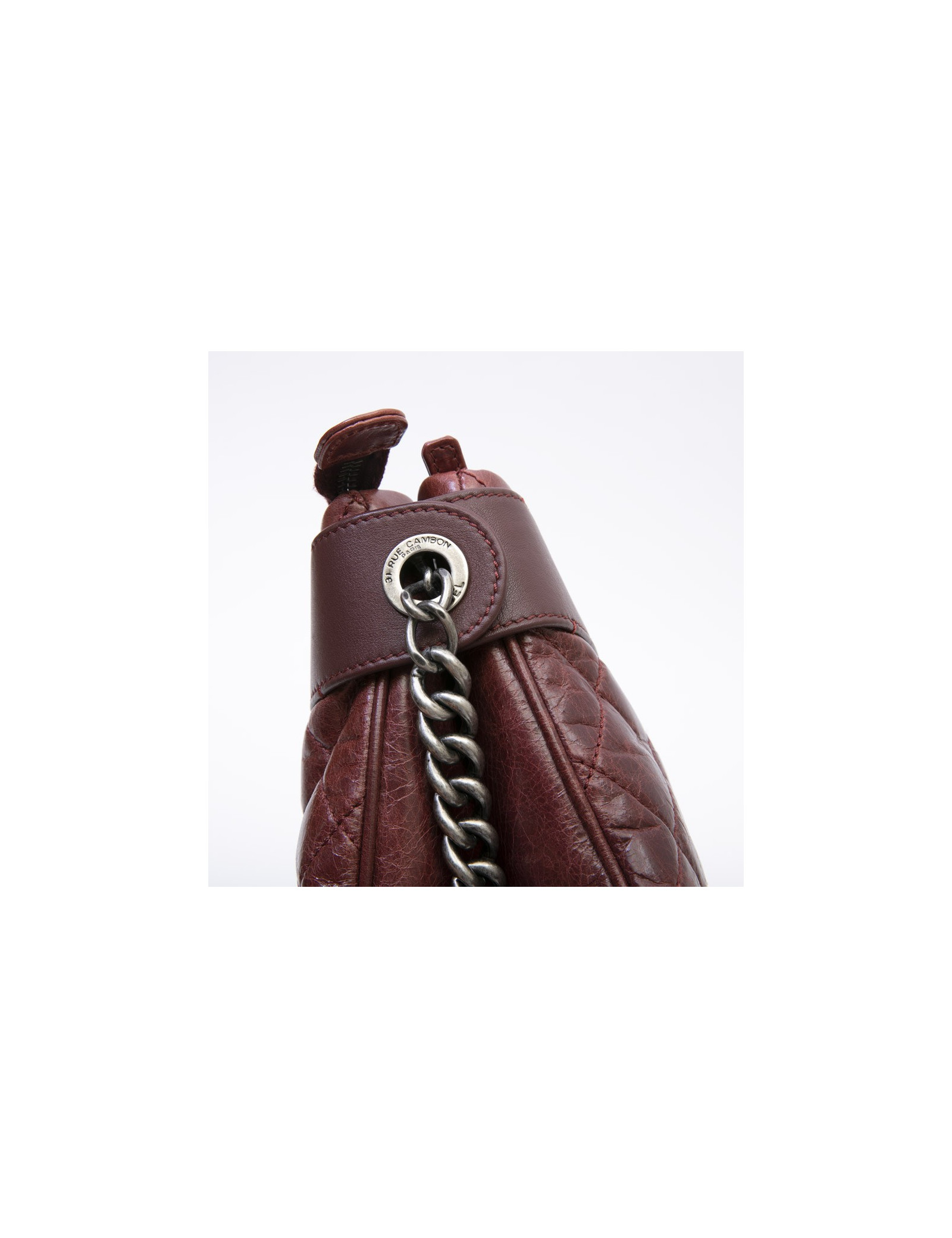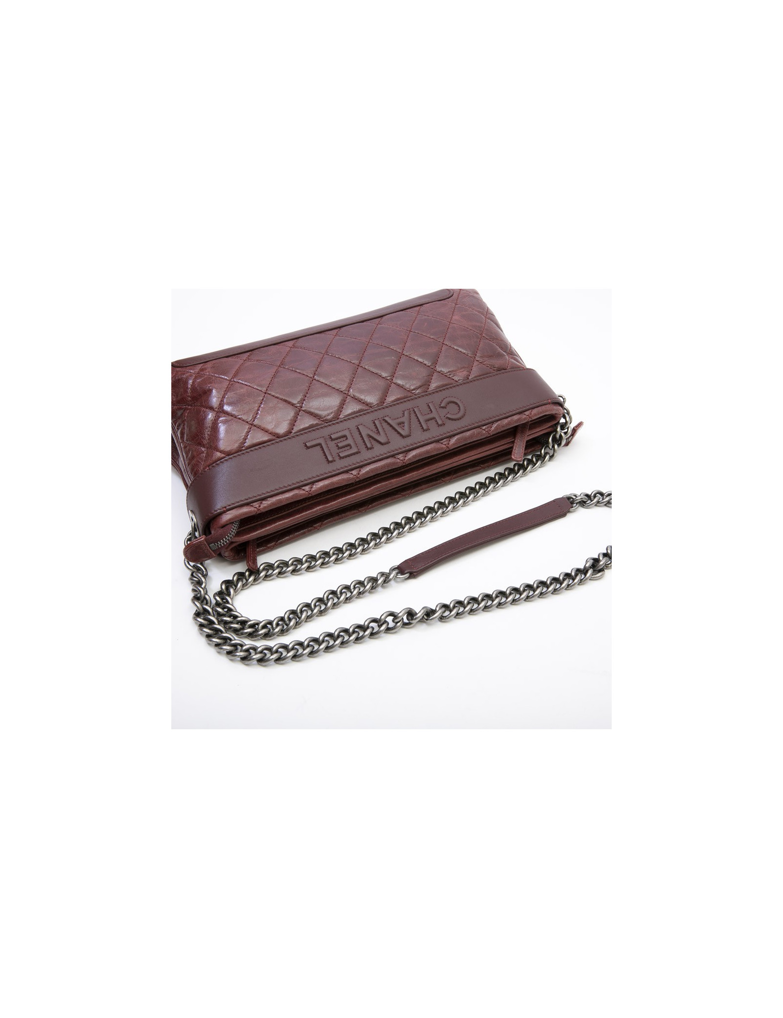 Sac Chanel cuir vieilli matelassé bordeaux.