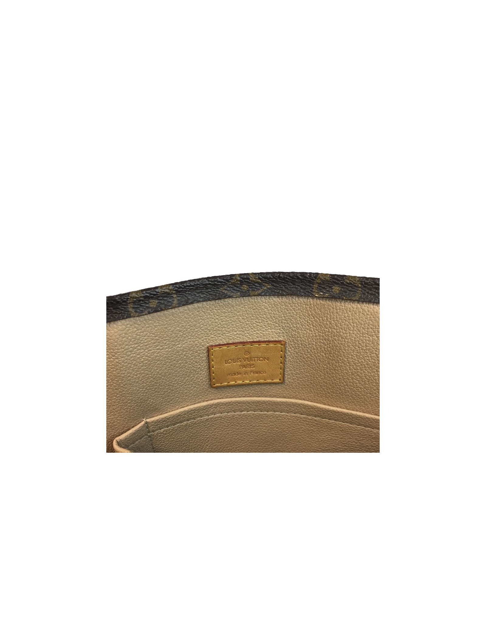 L'emblématique sac "plat" de la Maison de Louis Vuitton en toile monogram marron. Les deux anses sont en cuir de vache naturelle. Les pièces métalliques sont en laiton doré brillant. A l'intérieur, il dispose de deux poches dont un emplaçement pour smartphone.