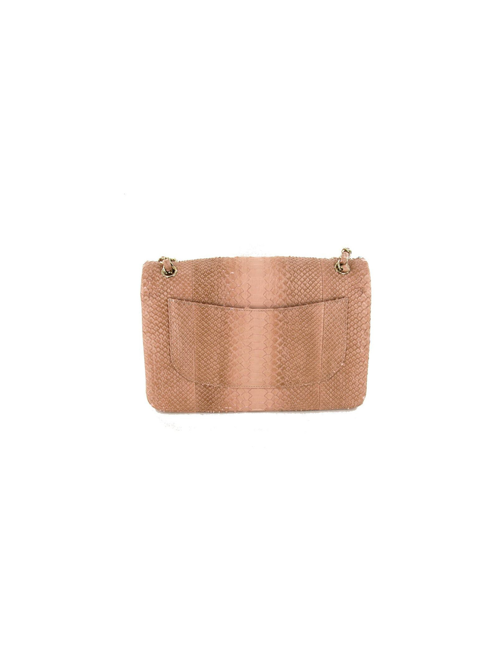 Ce sac Jumbo CHANEL en python est rose poudré. Il a été acheté à New-York : 10 887.50 $, et n'a jamais été porté. . Les ferrures sont en métal doré. Il se porte en simple ou double chaîne. Il y a une poche extérieure. A l 'intérieur : double rabat en cuir gold avec 5 poches dont 1 zippée. Il sera livré dans sa boîte d'origine avec dustbag, petits livrets, carte d'authenticité et la facture.