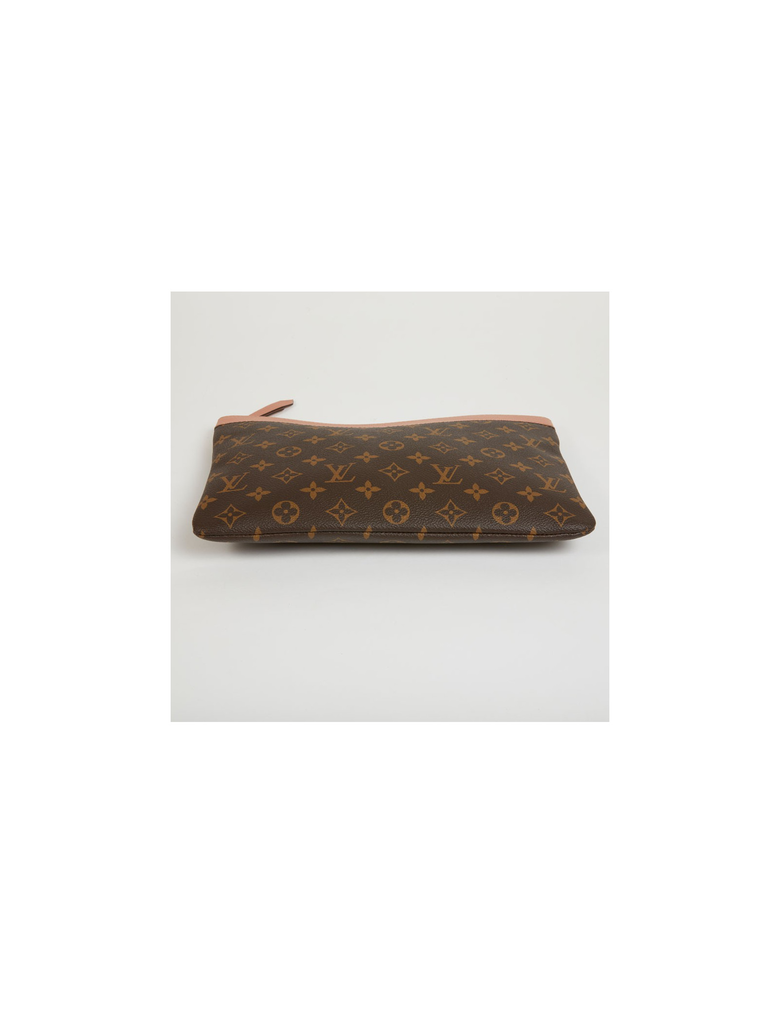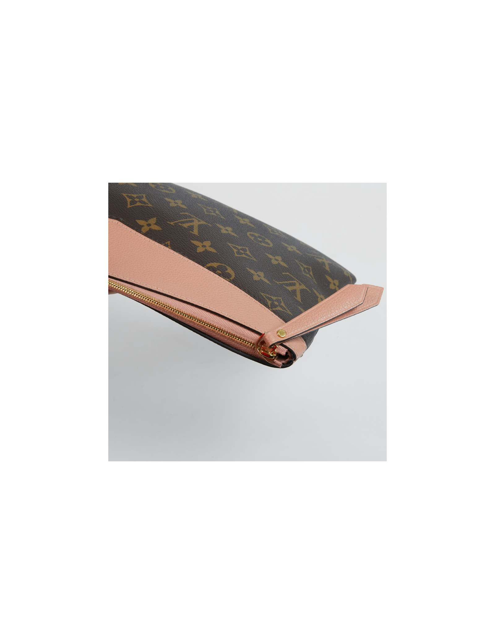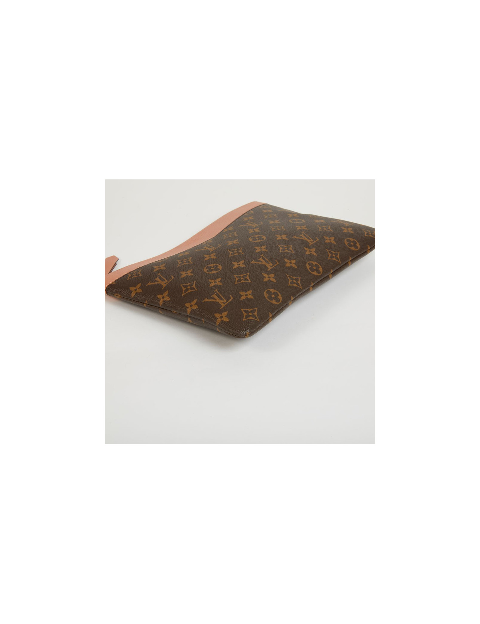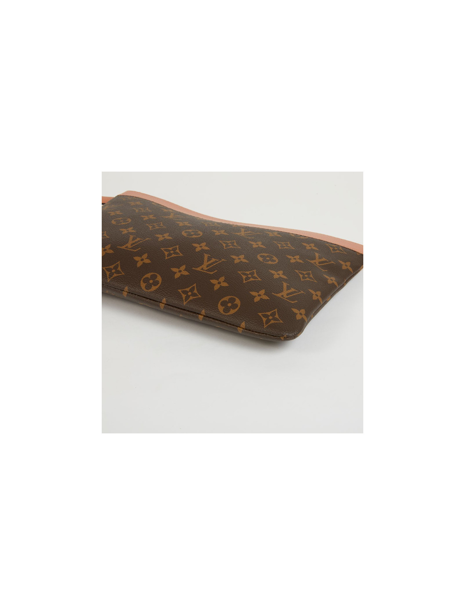Pochette Daily Pouch LOUIS VUITTON en toile Monogram marron et cuir pêche