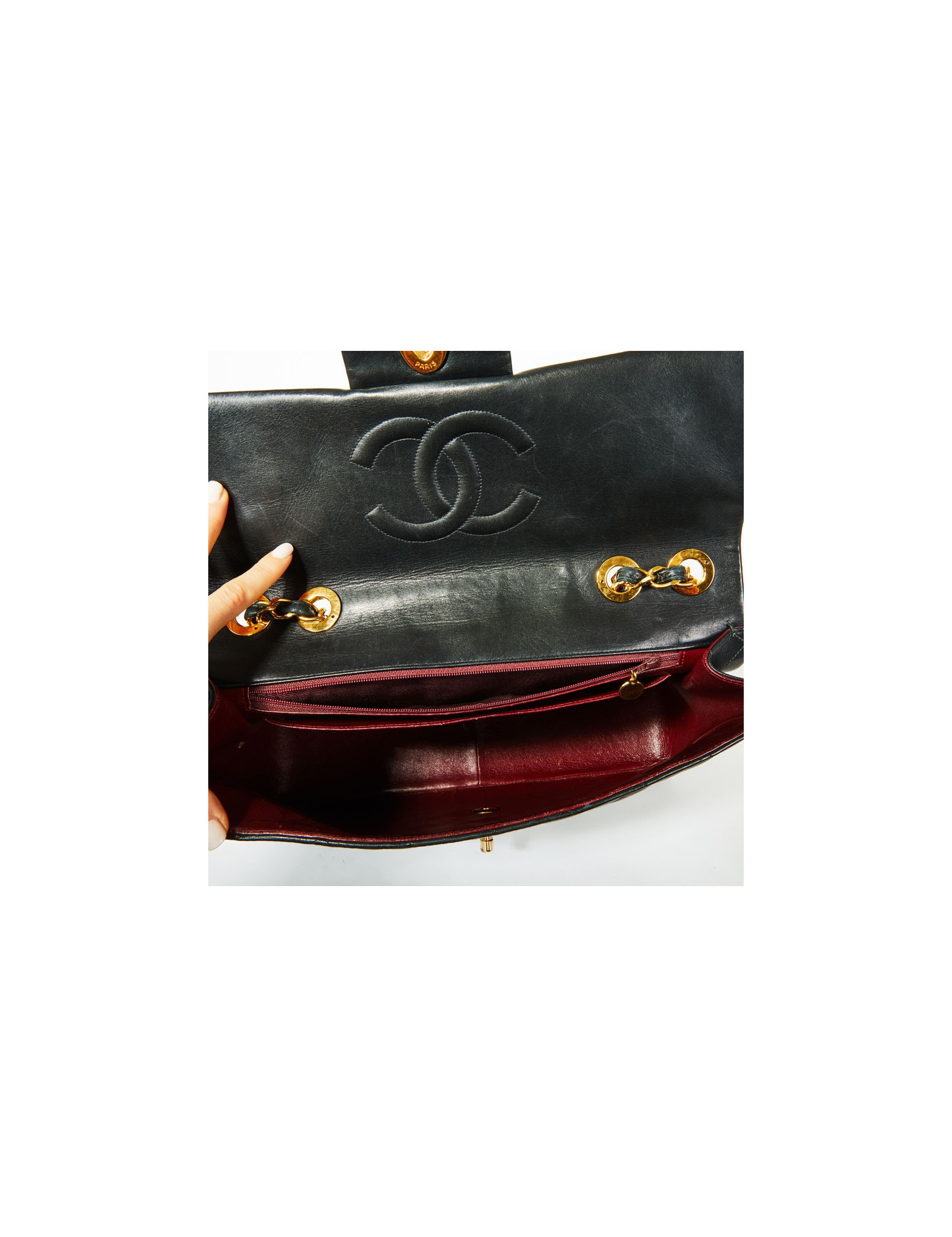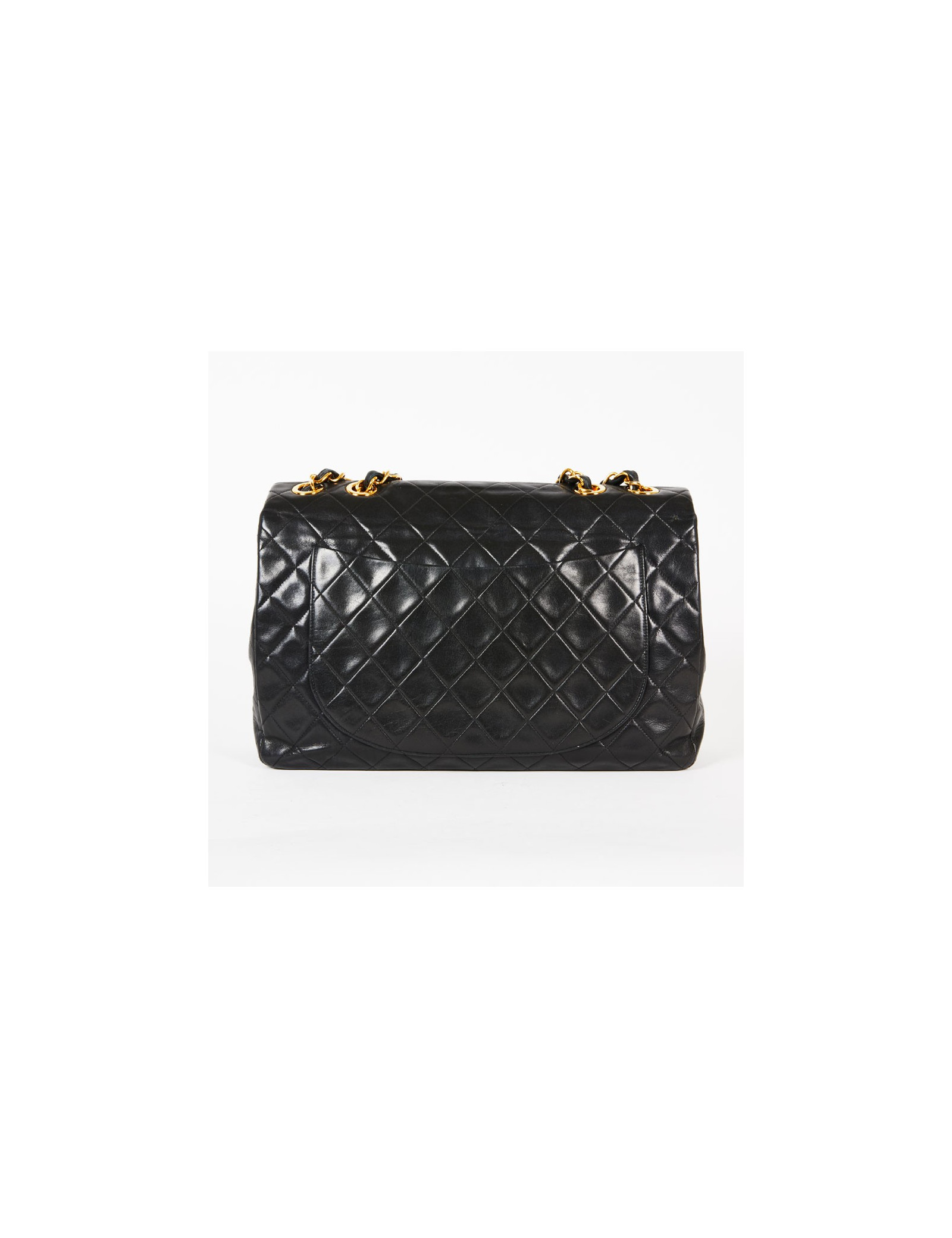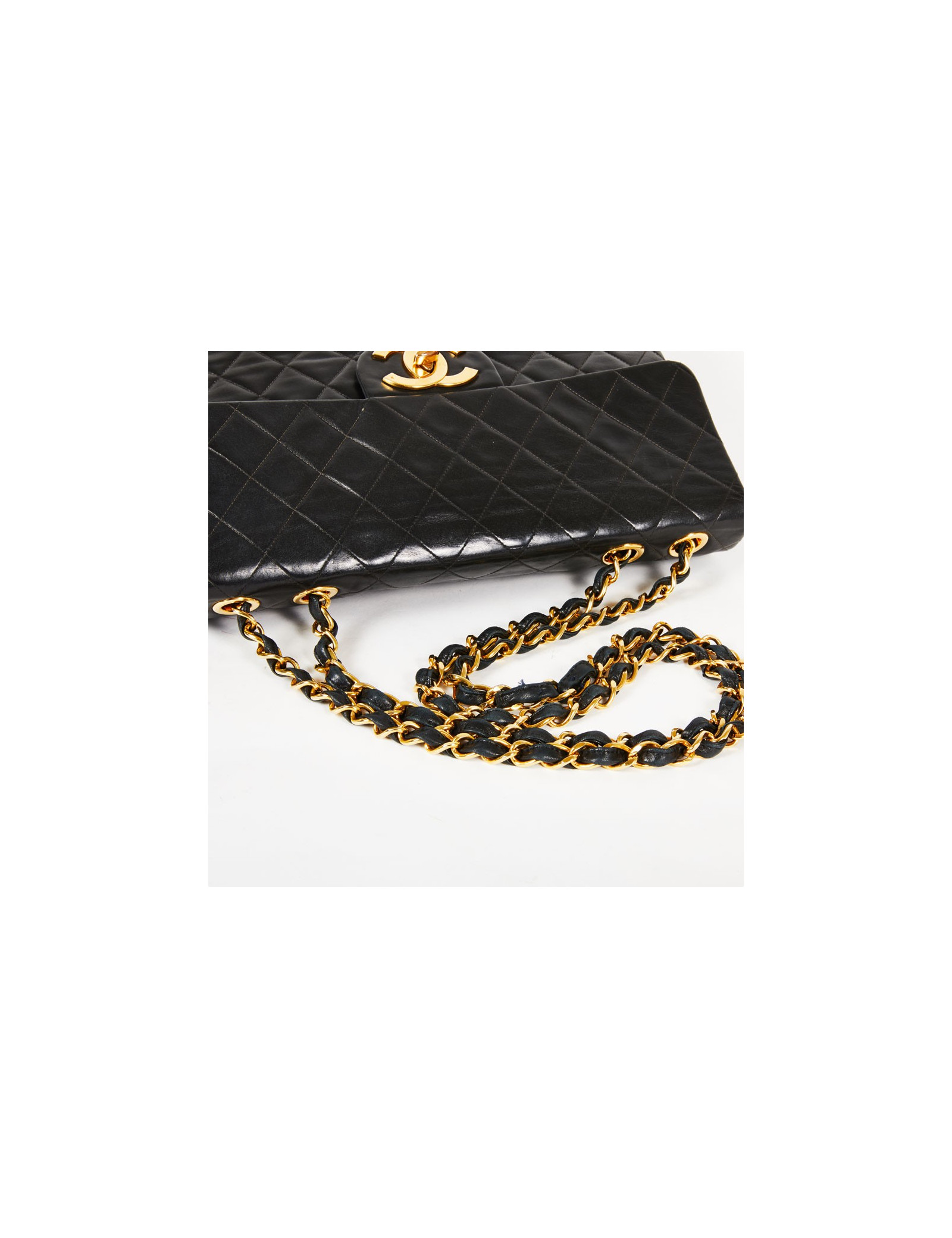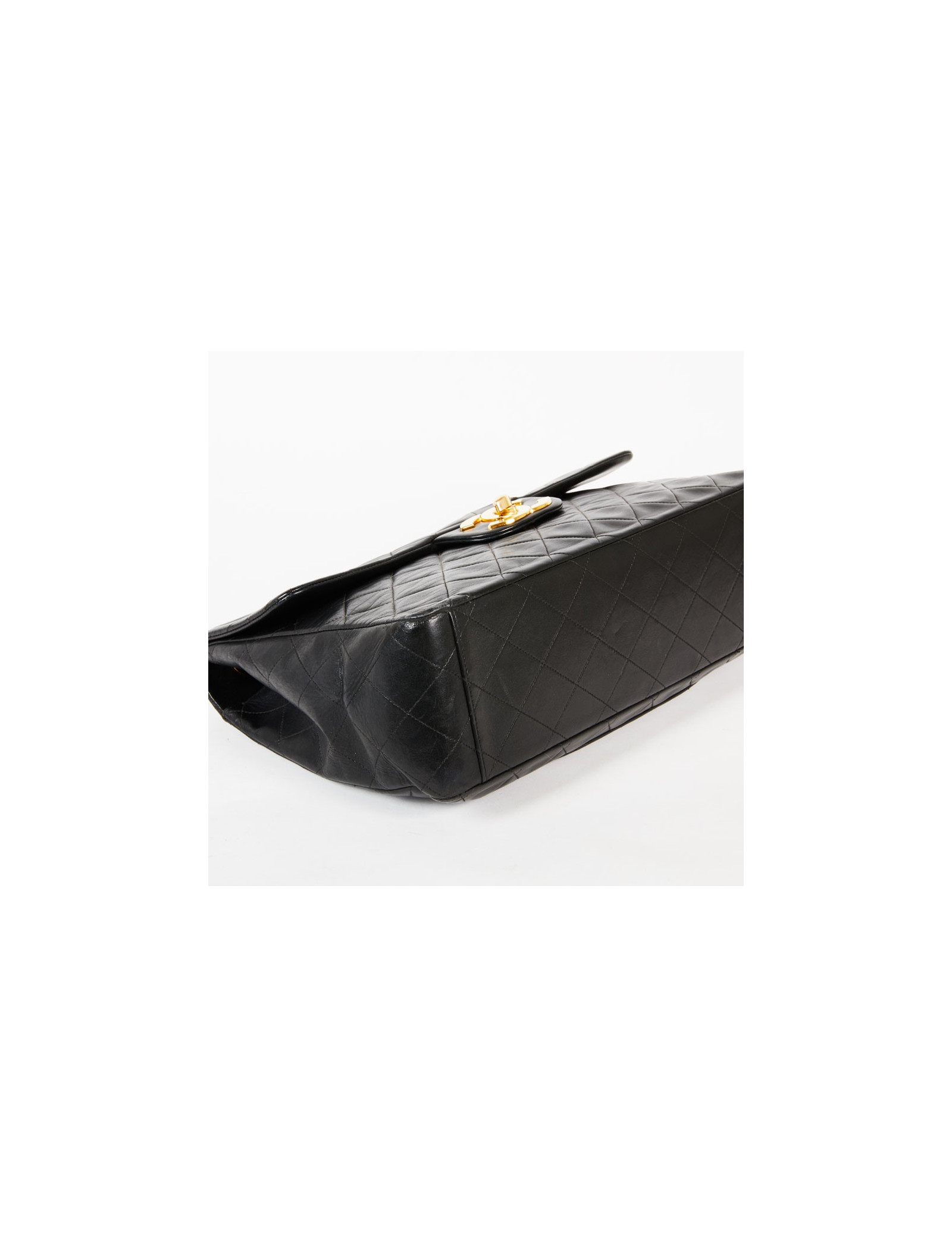 Maxi Jumbo CHANEL vintage cuir matelassé noir détails