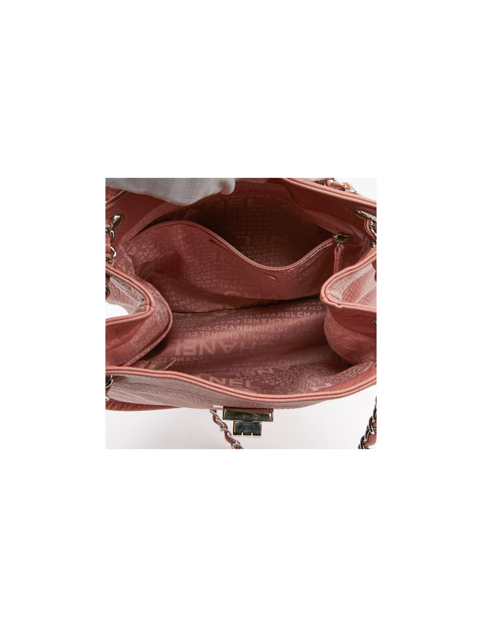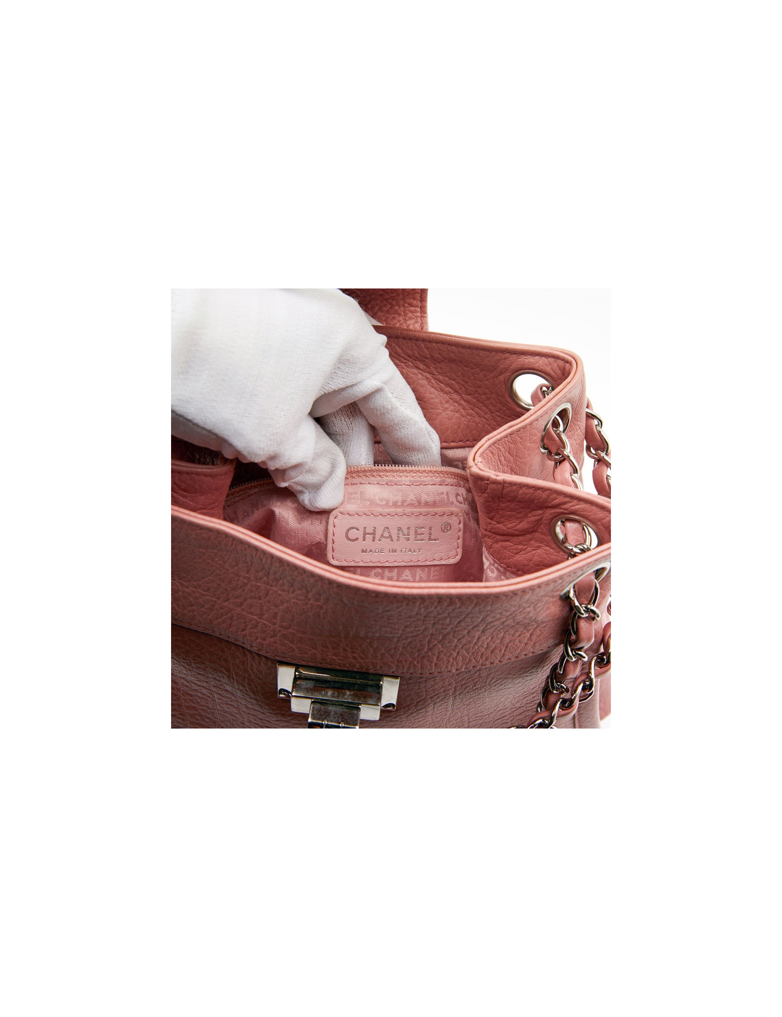 Sac CHANEL rose bijouterie argent - détails