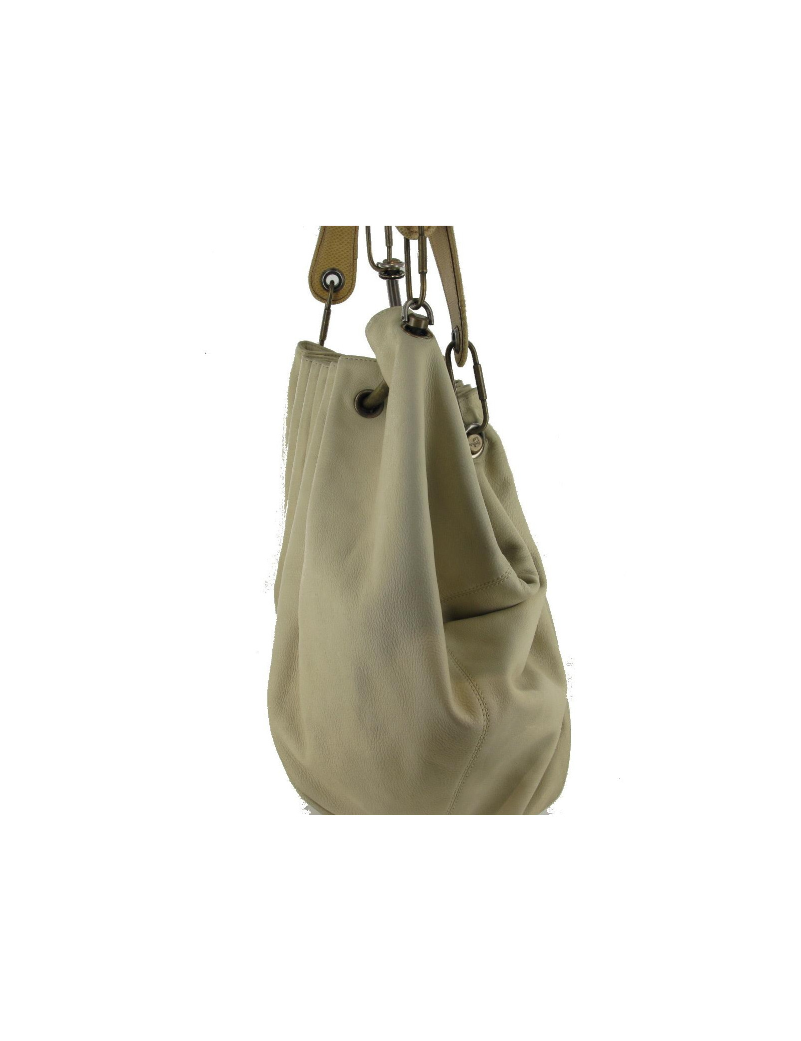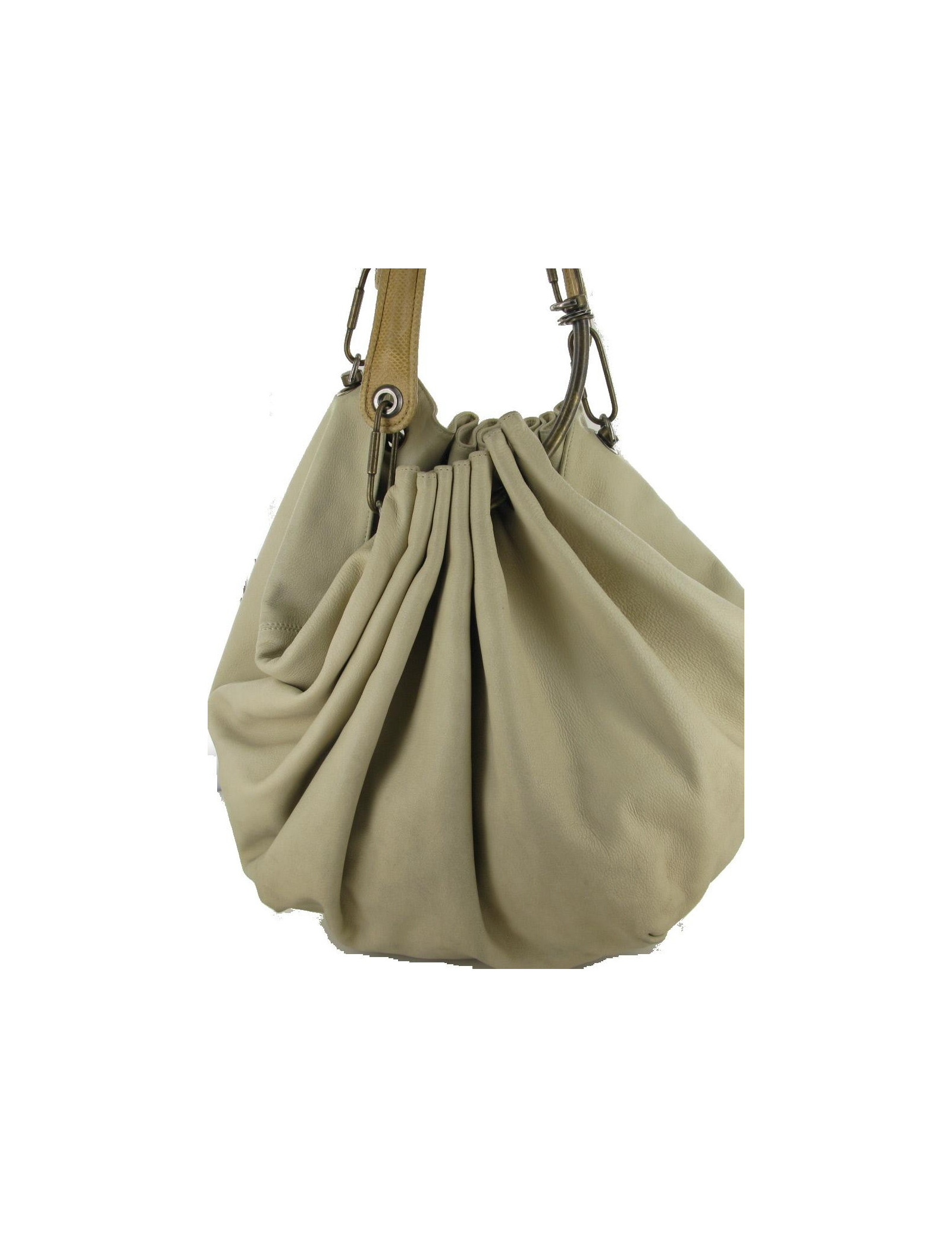 Ce sac besace LANVIN en cuir beige clair est idéal pour l'été. Il se porte à l'épaule avec deux anses en cuir façon serpent, couleur beige. Les ferrures sont en métal argenté veilli. L'intérieur est en toile monogrammée LANVIN et il y a 1 poche zippée. Un nettoyage de ce sac est nécessaire, notre cliente l'ayant porté souvent. La couleur beige étant une couleur délicate. Livré avec son dustbag.