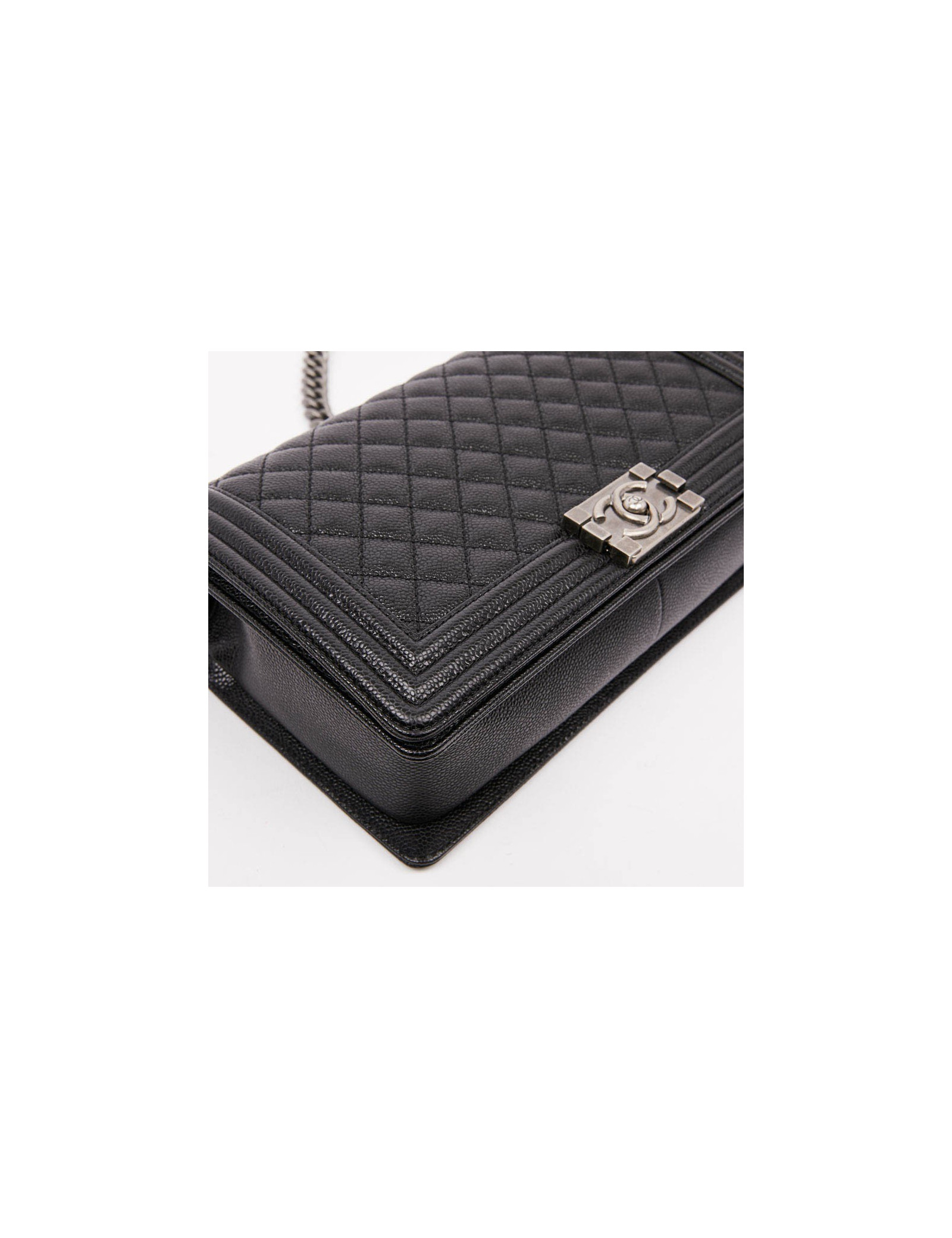 Sac Boy noir CHANEL en cuir grainé
