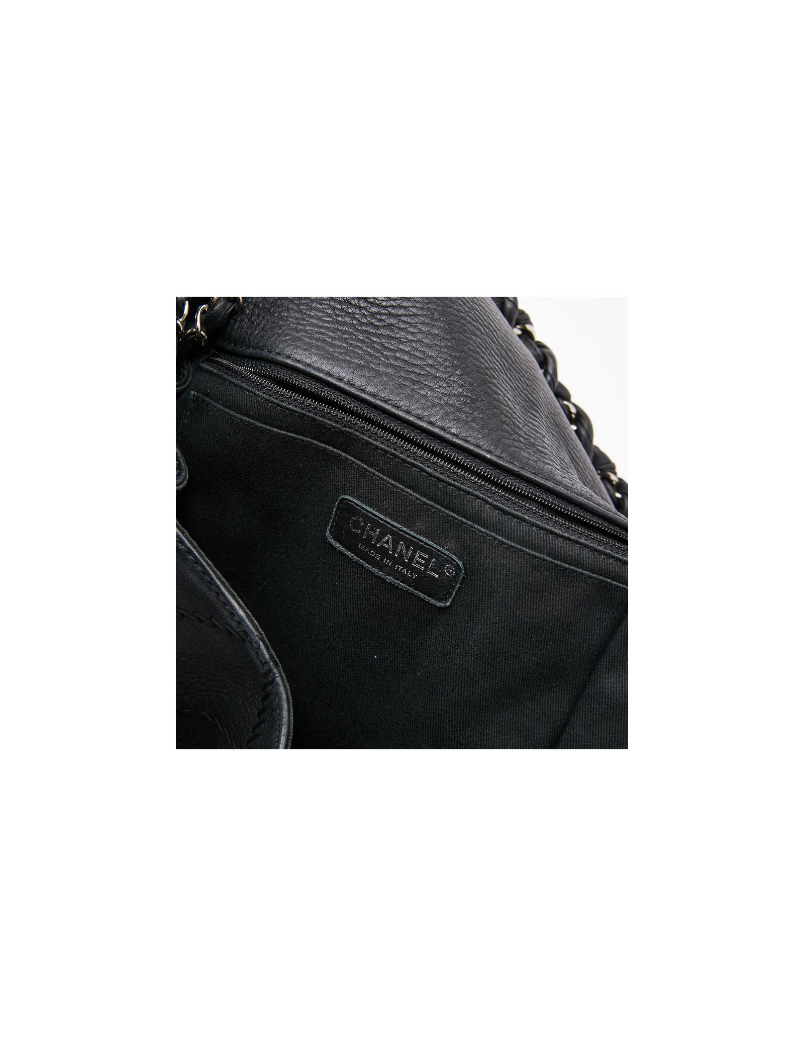SPENDIDE grand sac Shopping CHANEL en cuir taurillon noir avec une surpiqûre noire. La bijouterie est en métal palladié. De chaque côté du sac un zip permettant de l'agrandir. L'anse est en chaine argent entrelacée de cuir. Le fermoir est typique du modèle Timeless "CC" . L'intérieur est en tissu noir. Une grande poche zippée vous permettra de mettre en sécurité vos affaires les plus précieuses. On compte également deux autres poches plates dont une pour votre smartphone. Il est en parfait aucune usure des coins