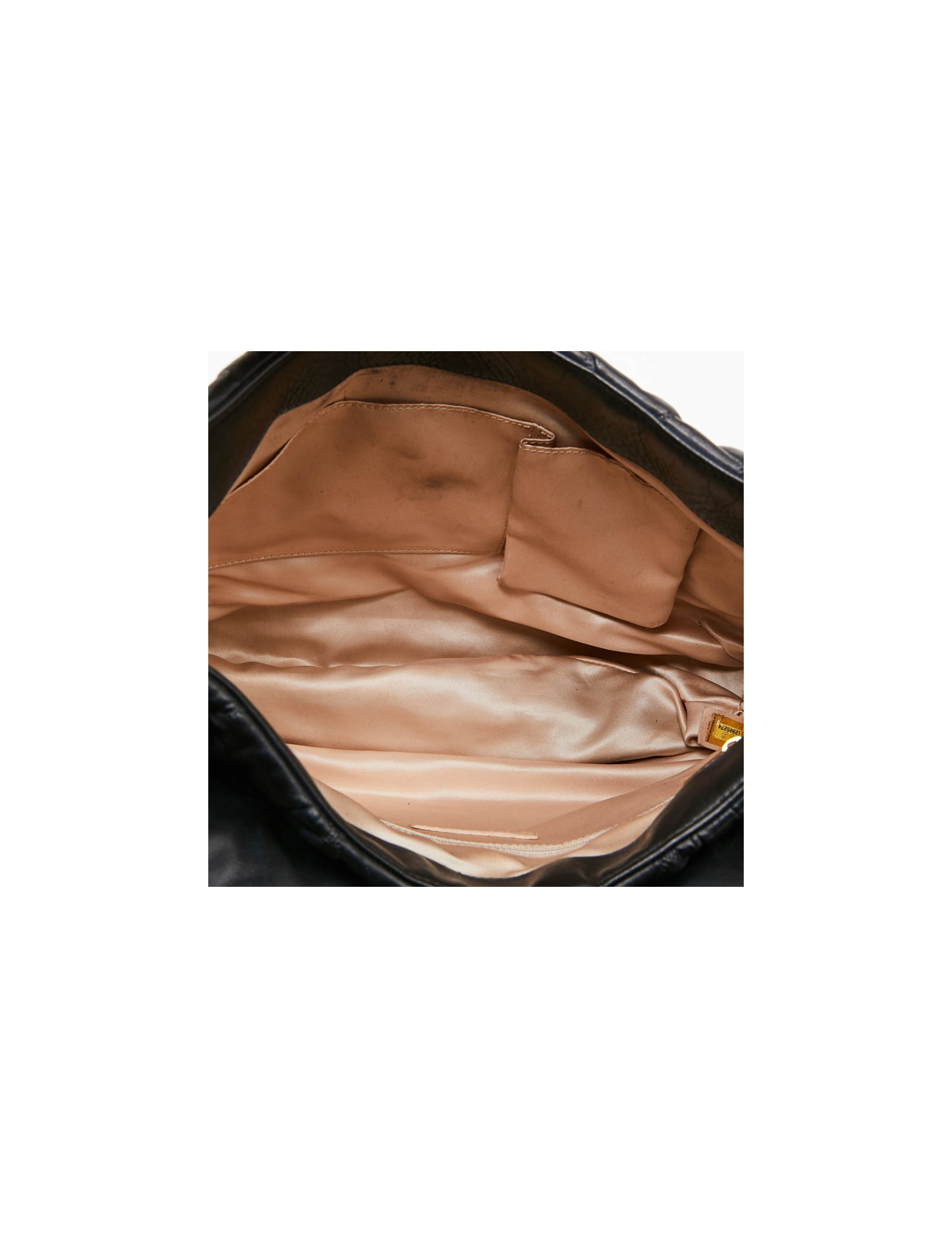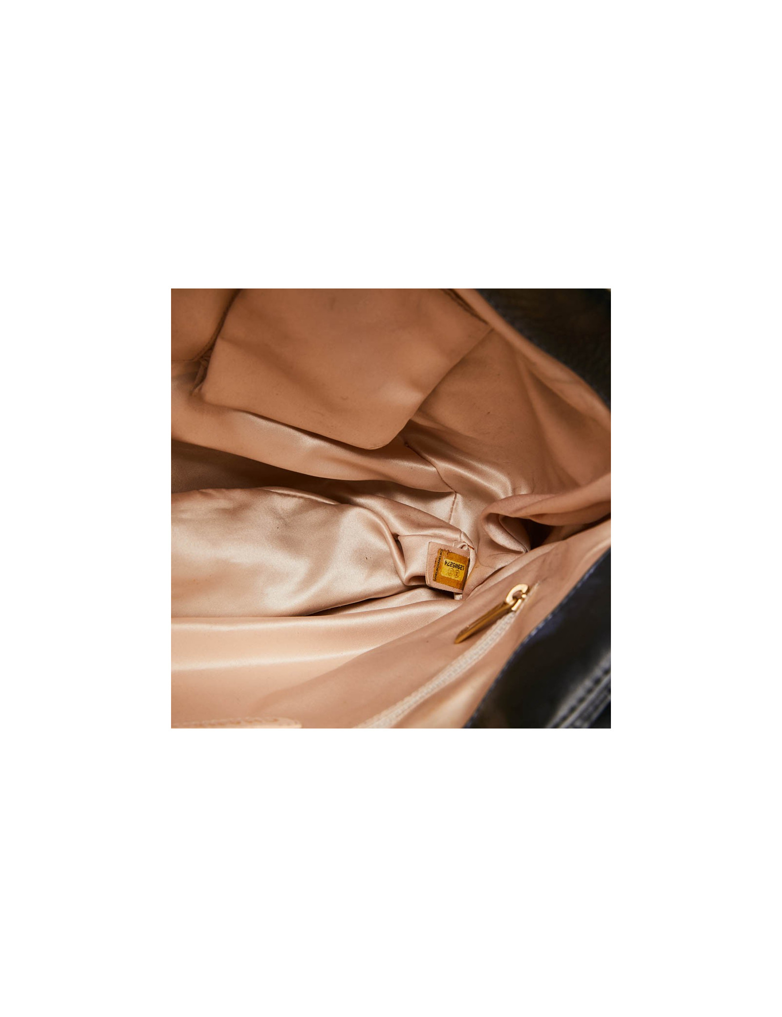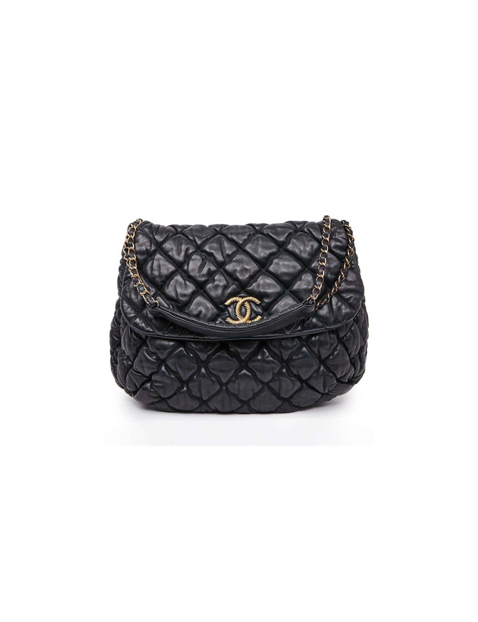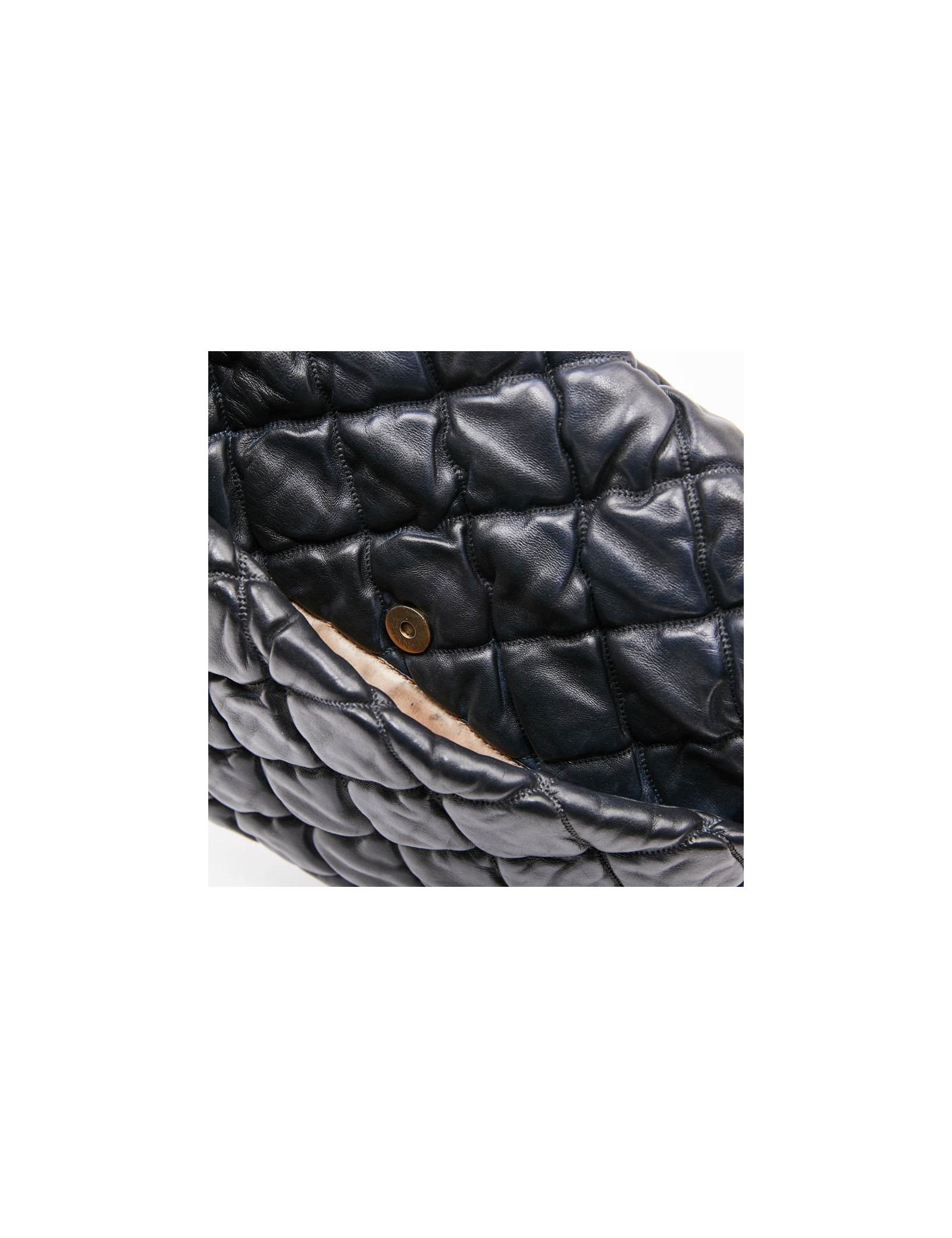 ICONIQUE. Sac d'occasion CHANEL en cuir d'agneau bleu nuit matelassé. Le sigle "CC" travaillé est en métal doré. Fermeture par bouton pression. La doublure est en satin avec 3 poches plates dont une grande zippée. Il se porte à l'épaule. Il est en très bon état aucune usure des coins mais sur la doublure on dénombre des nombreuses taches, voir photos.