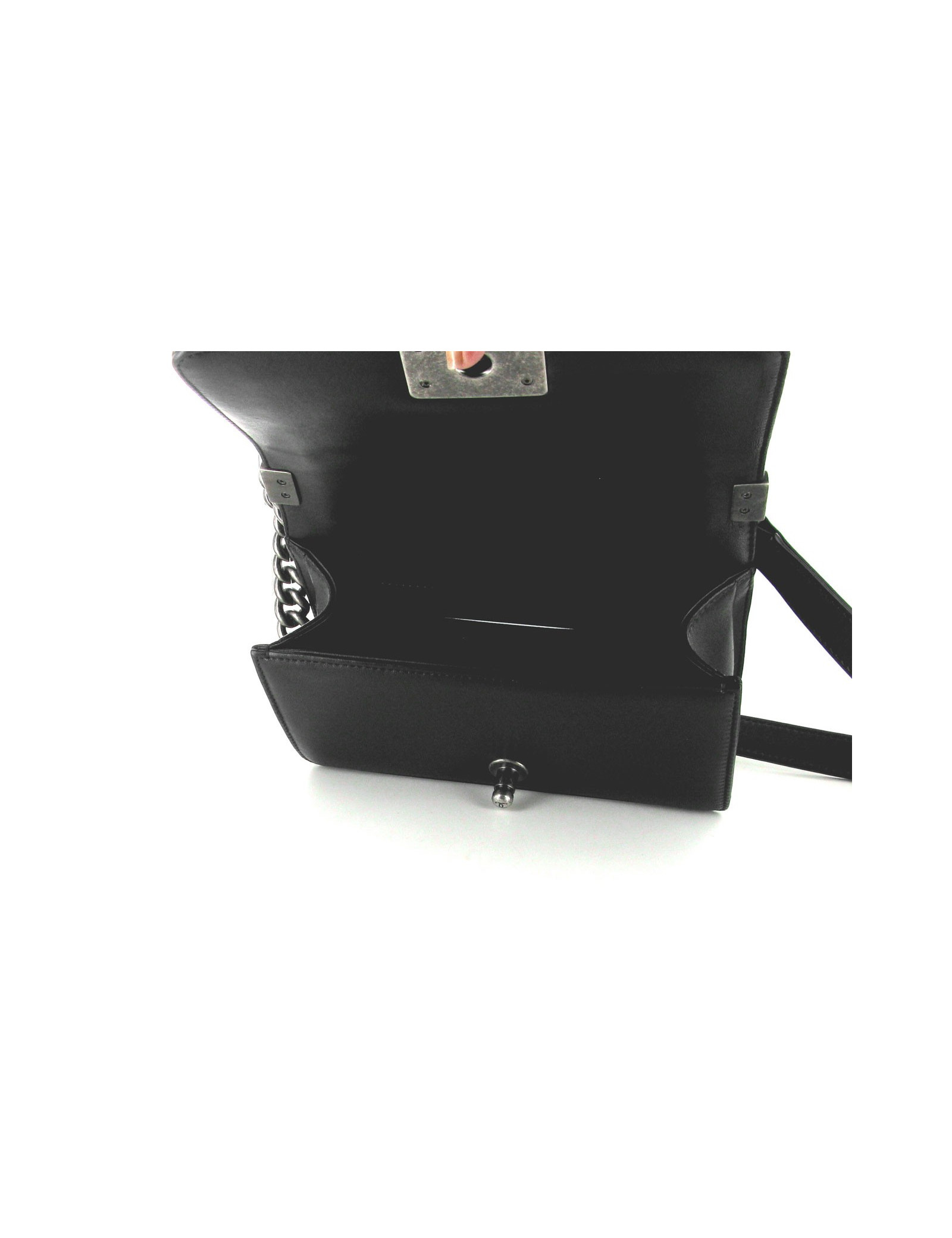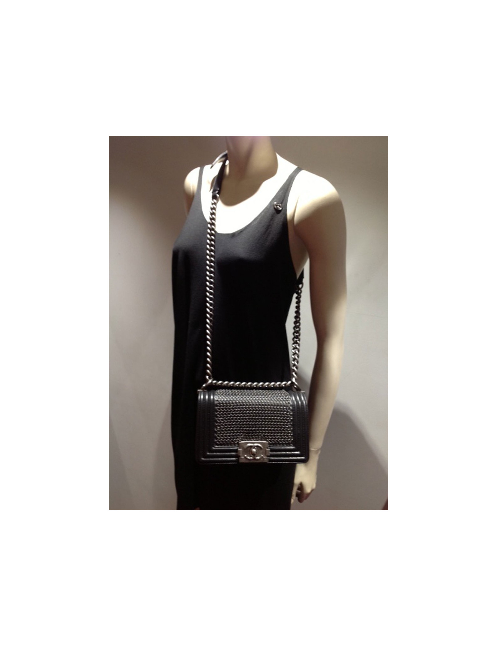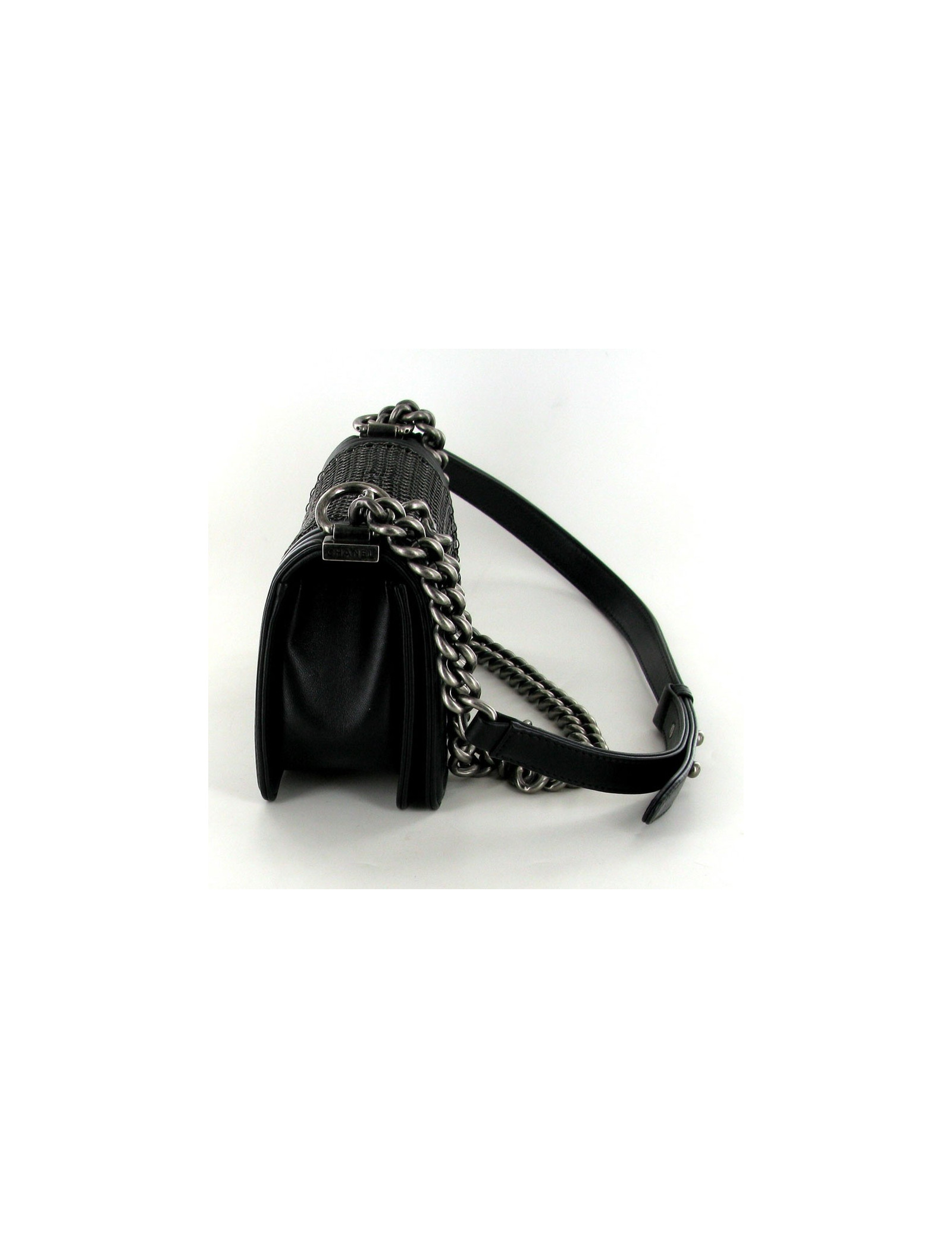 Boy CHANEL en cuir noir cotte de mailles