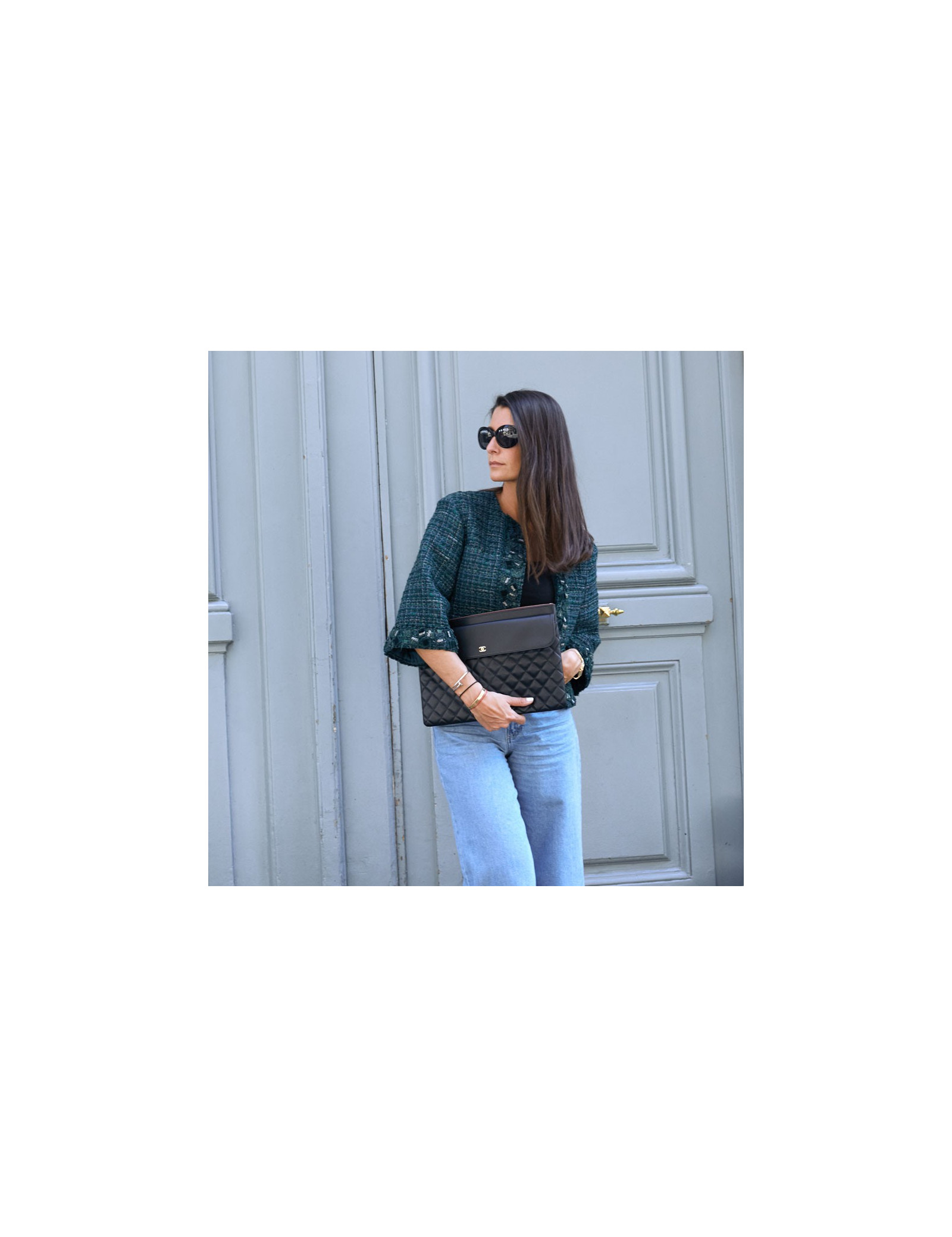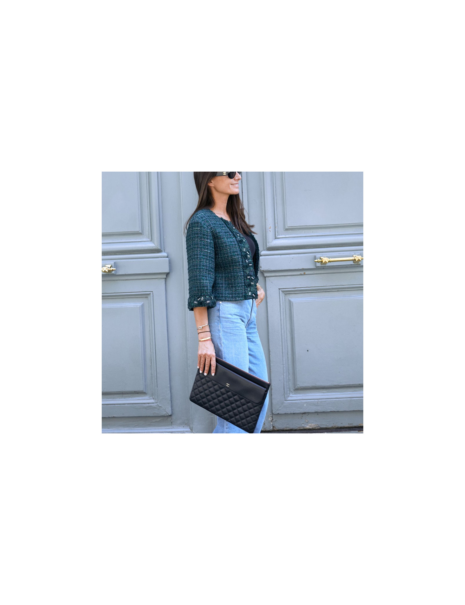 Plusieurs possibilités d'usage de cette Grande pochette CHANEL noire, détails