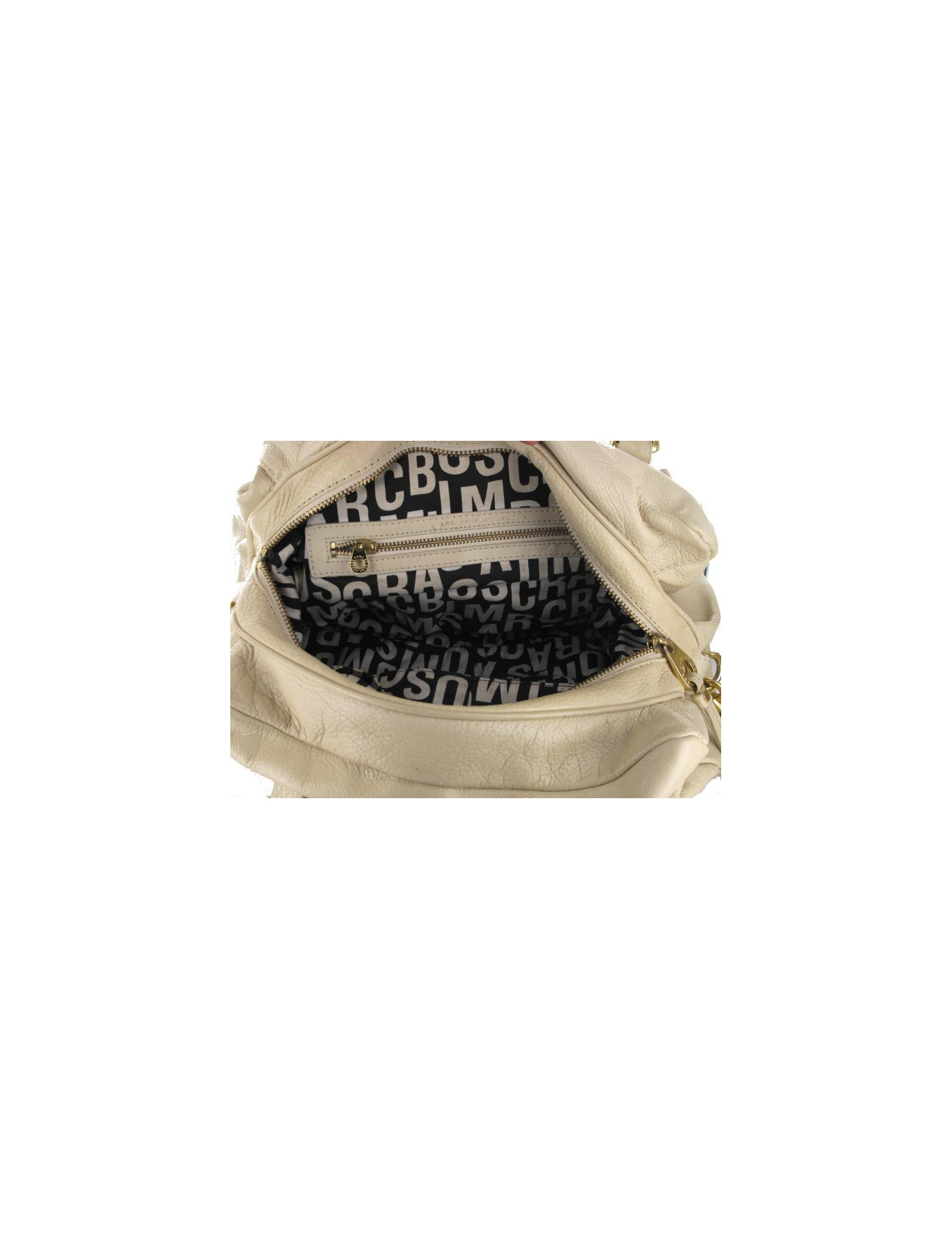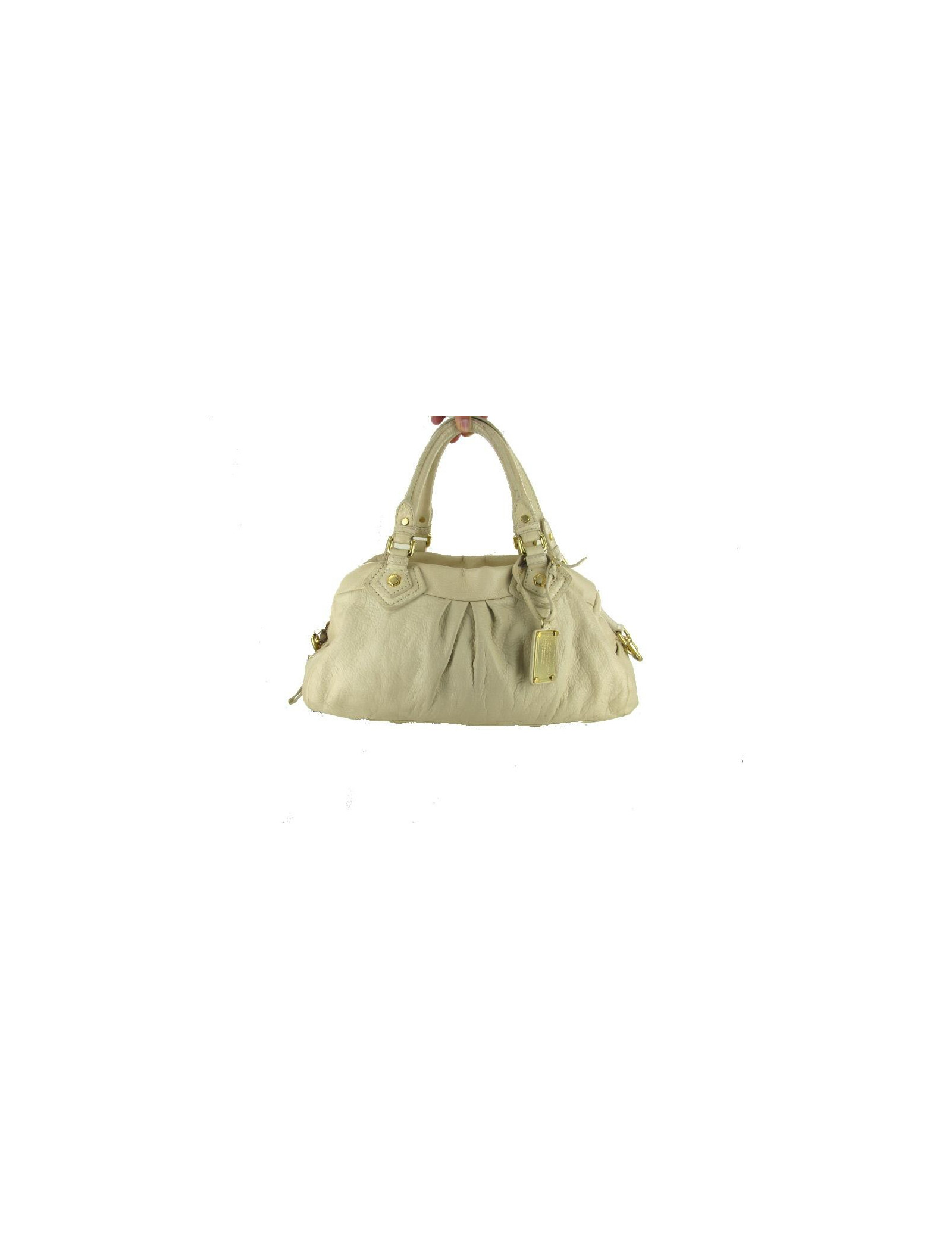 Ce sac MARC BY MARC JACOBS est l'un des best seller de la marque. "Classic Q Groove" est en cuir grainé beige. Il se porte aussi bien à l'épaule qu'en bandoulière. Les ferrures sont en métal doré brillant. A l'avant du sac, une plaque en métal doré détachable, où il y est gravé " MARC BY MARC JACOBS". L'intérieur est en tissu noir et beige imprimé "MARC BY MARC JACOBS". Il y a 3 poches dont 1 zippée. Le beige étant une couleur fragile, ce sac a quelques marques d'usure et traces. Il est en bon état.