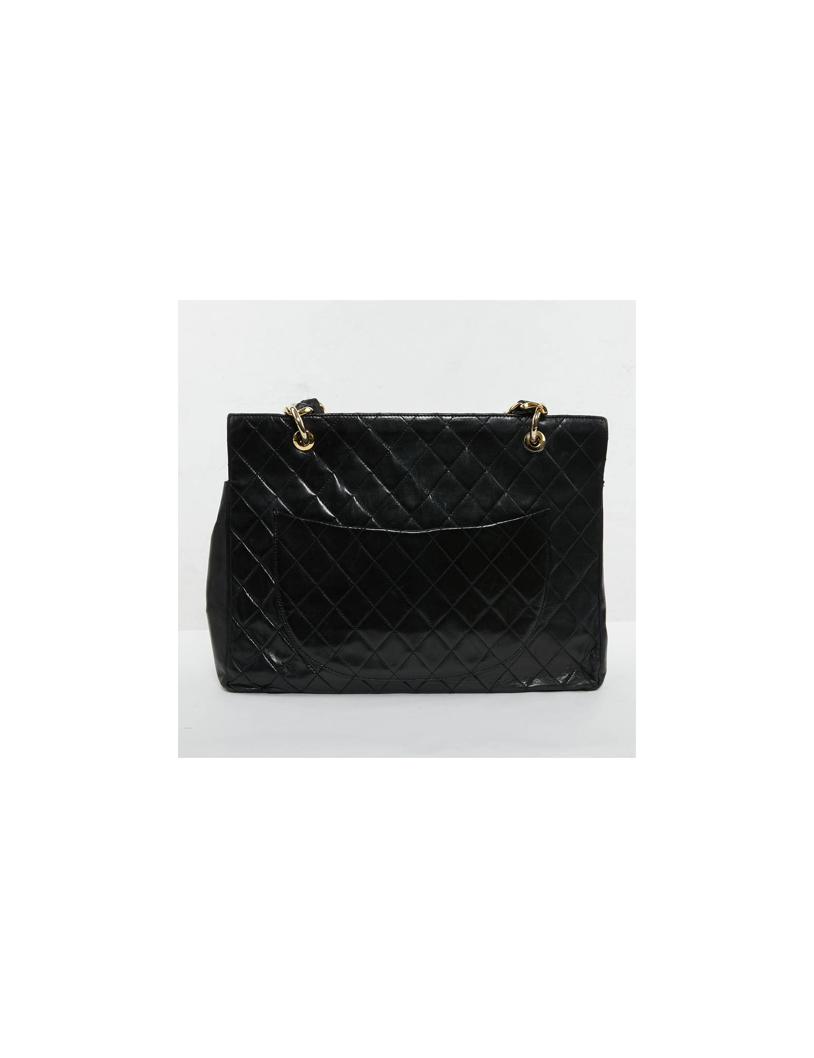 Sac cabas grand shopping vintage en cuir d'agneau matelassé de la Maison Chanel. Le sac idéal pour tous les jours afin d'y glisser tous vos accessoires du quotidien.