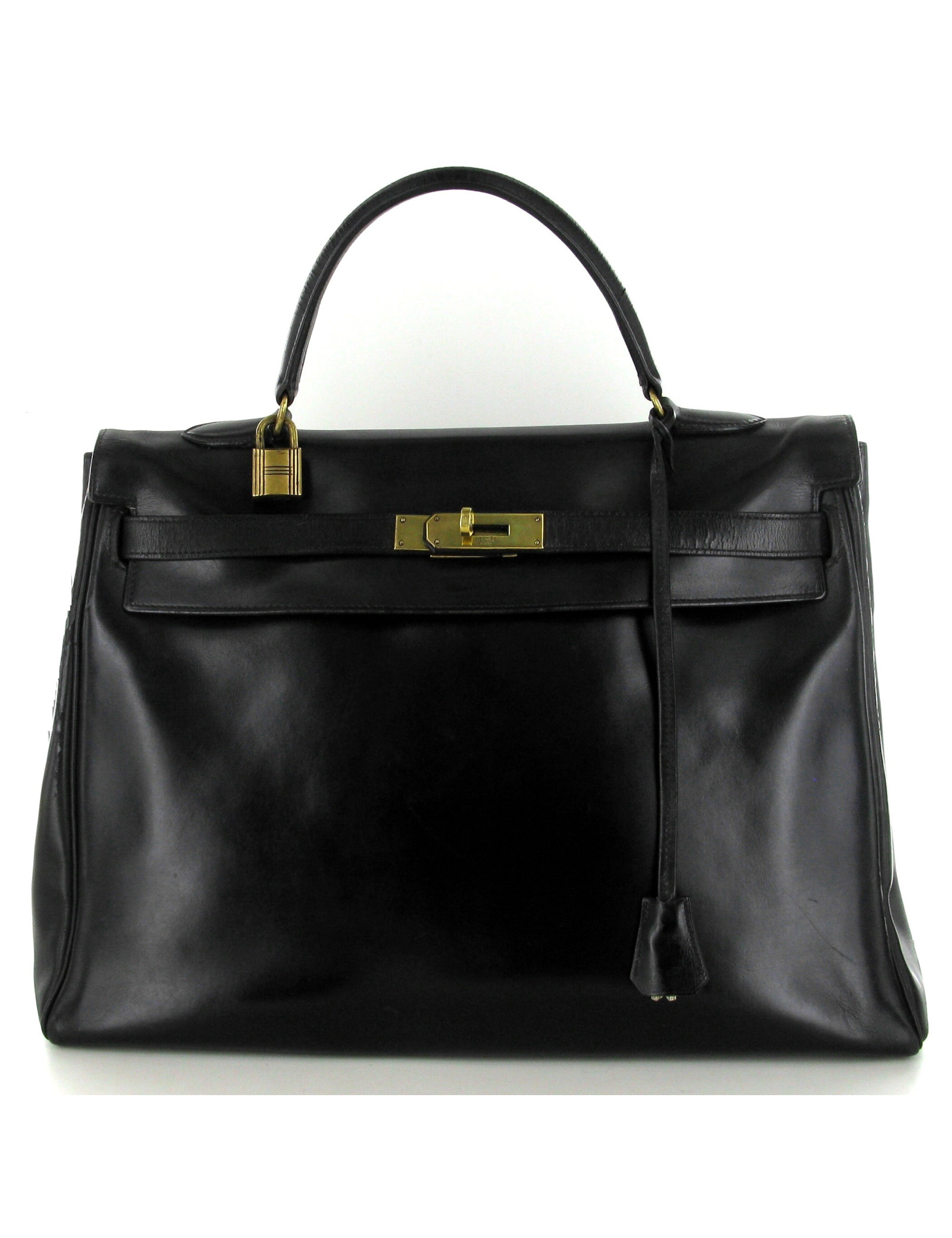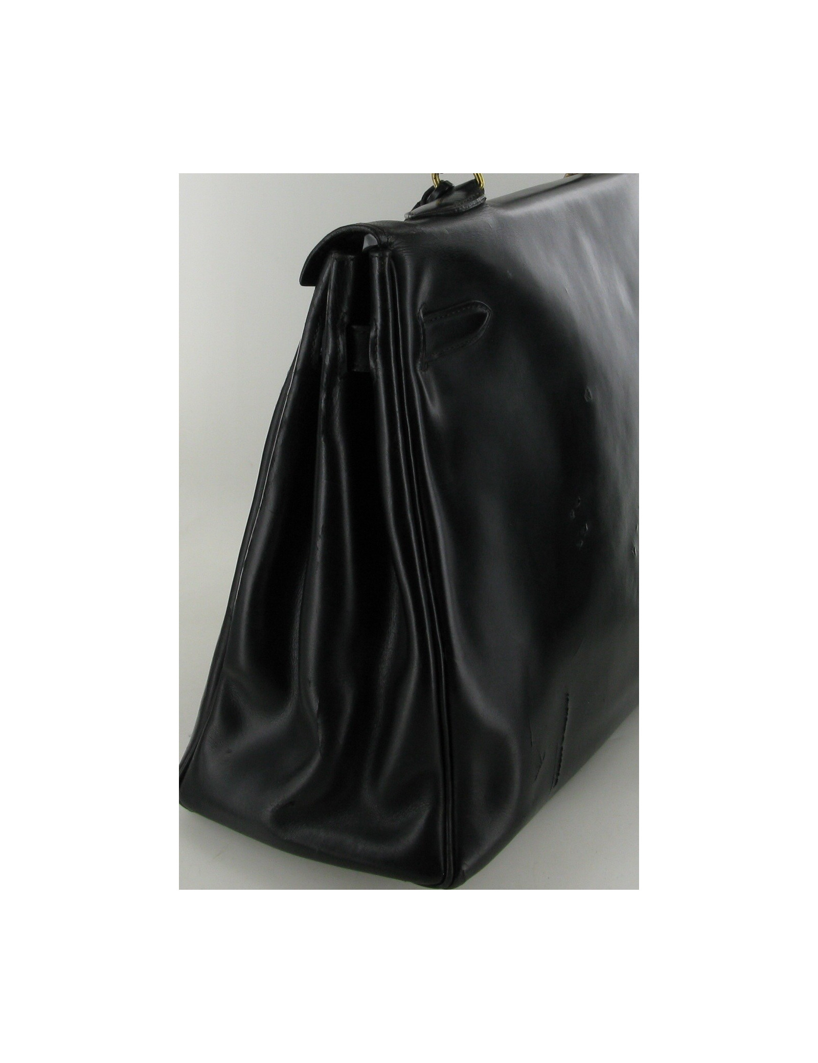 Sac Kelly 35 Vintage Hermès en box noir, bijouterie dorée.