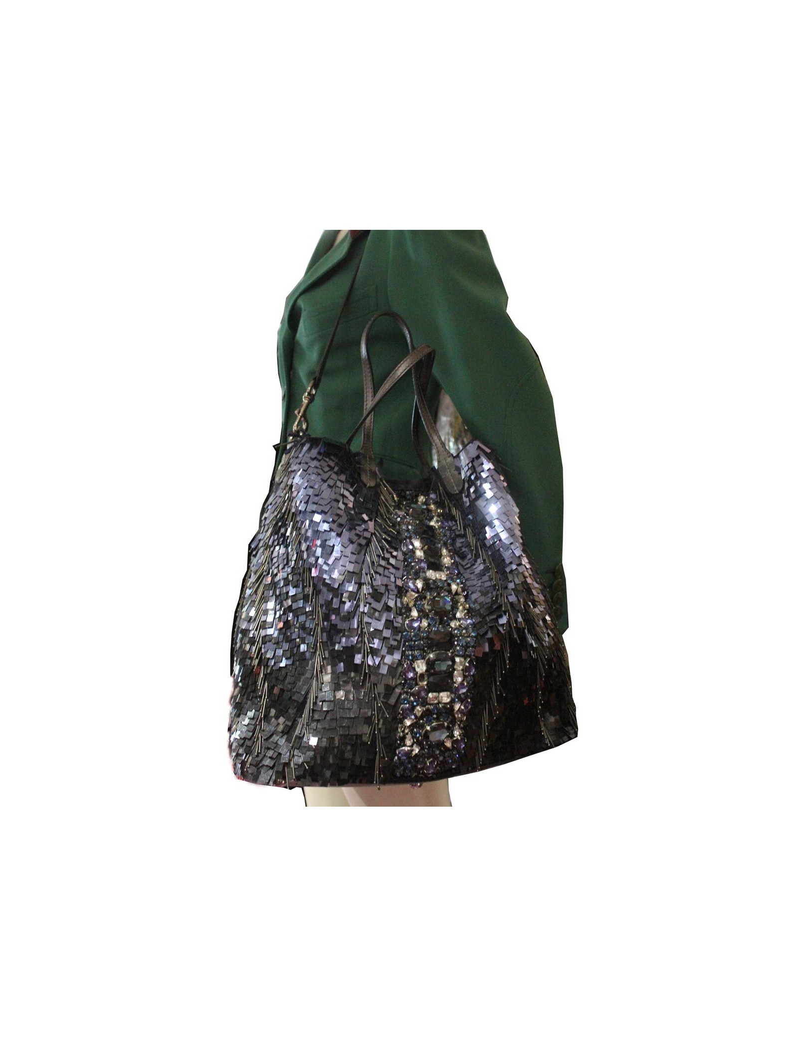 Cabas VALENTINO à sequins bleus et noirs et bijoux.Ce superbe sac est habillé de sequins de forme rectangulaire, légèrement rayés par l'usage mais gardent néanmoins leur brillance.