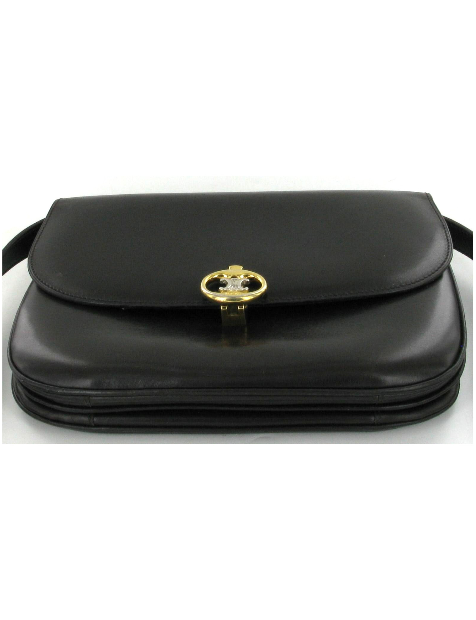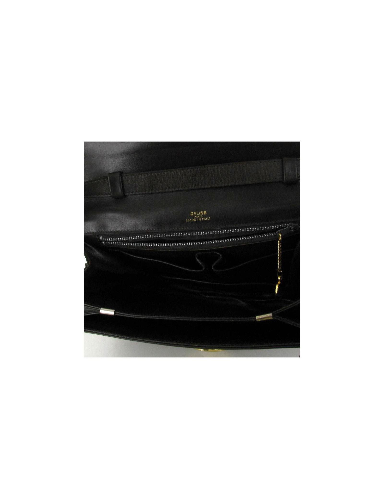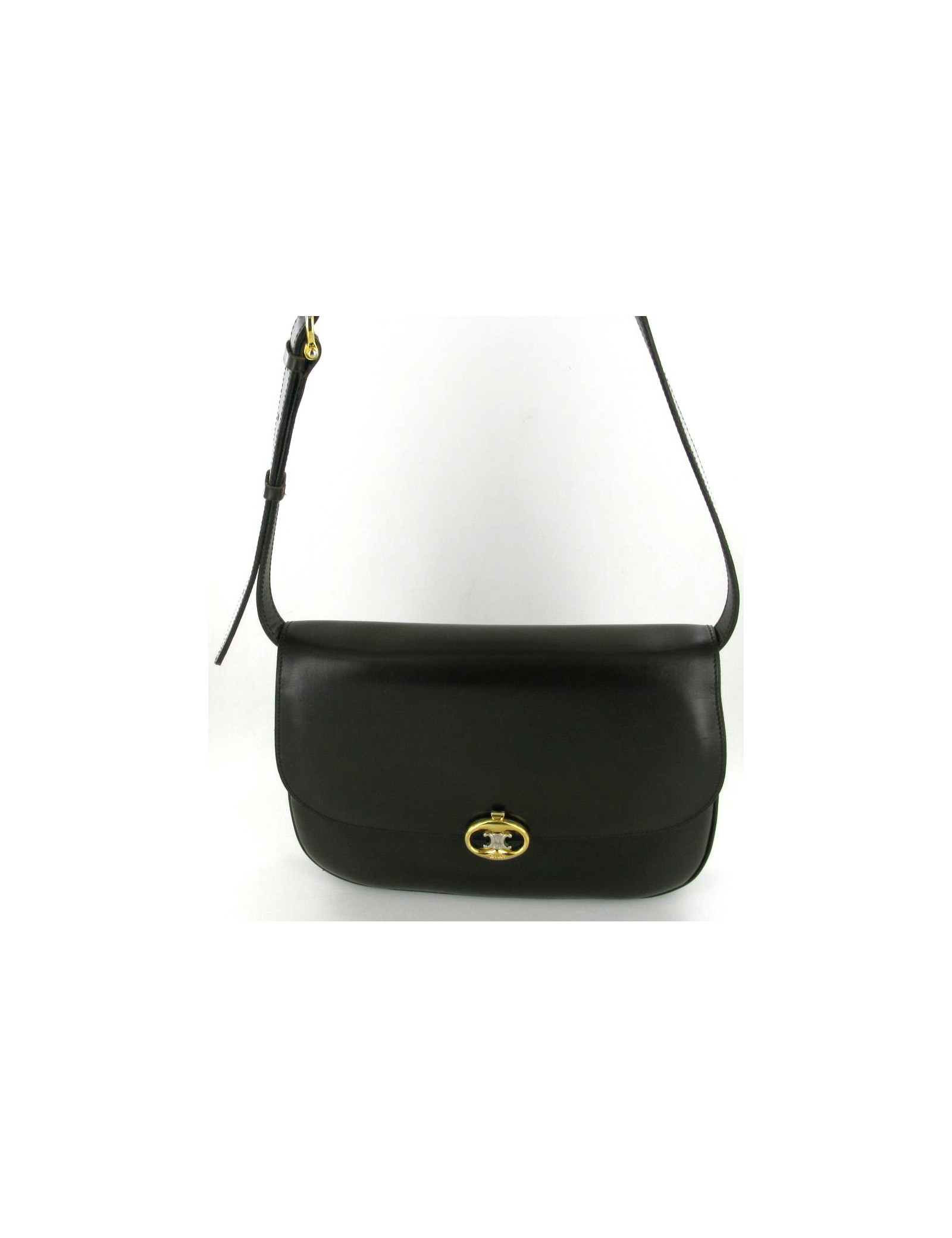 Sac CELINE vintage, ancêtre du modèle Classic, medium flap, en cuir box marron foncé. Ce sac est une pièce iconique de la Maison Céline. Très beau fermoir en métal bicolore : doré et argent. La boucle est siglée de la signature CELINE. Pochette intérieure zippée, 2 compartiments ainsi que 2 poches pour portable. Anse réglable sept longueurs (100 cm : plus petite longueur). La première étant la longueur d'origine qui se porte largement en bandoulière.