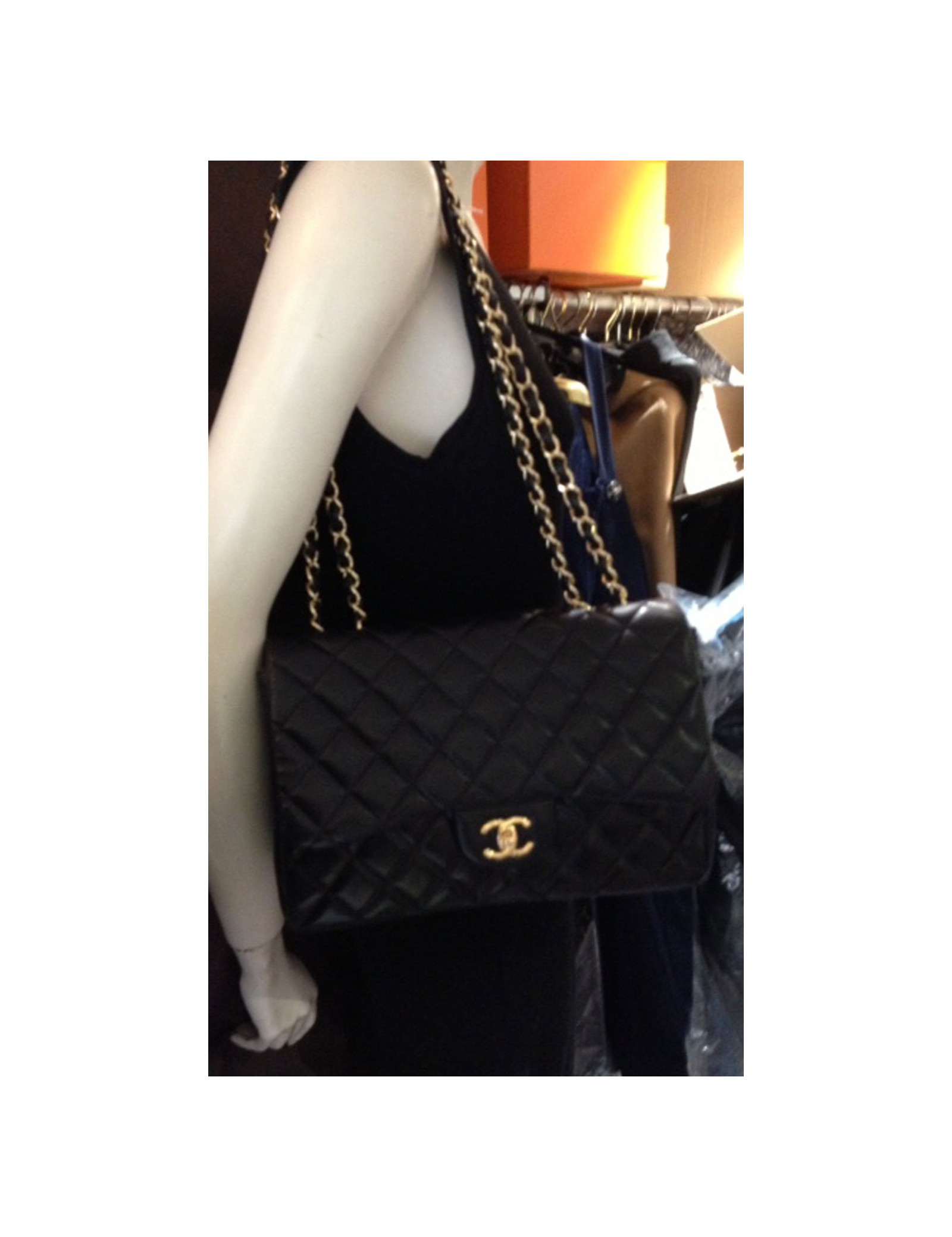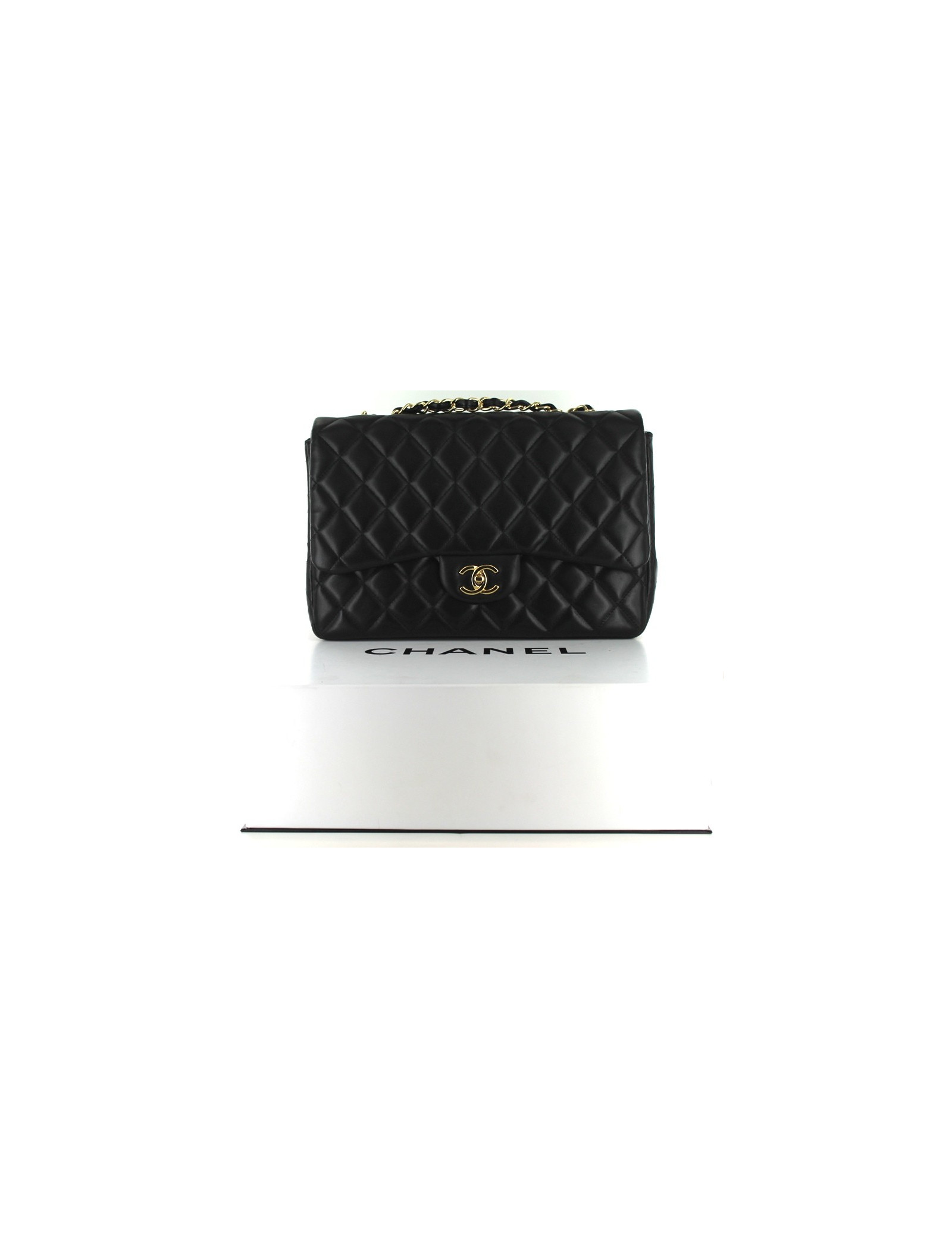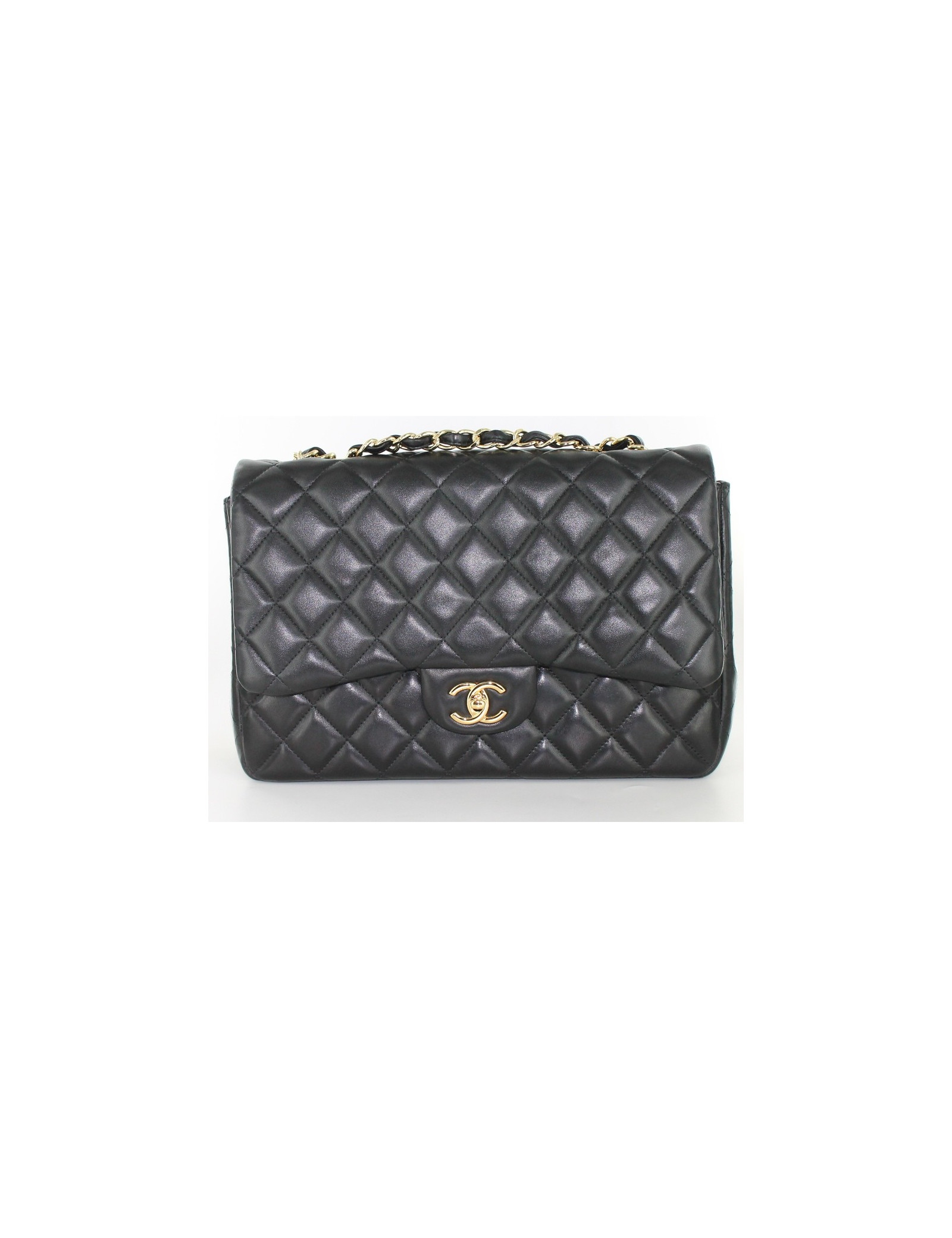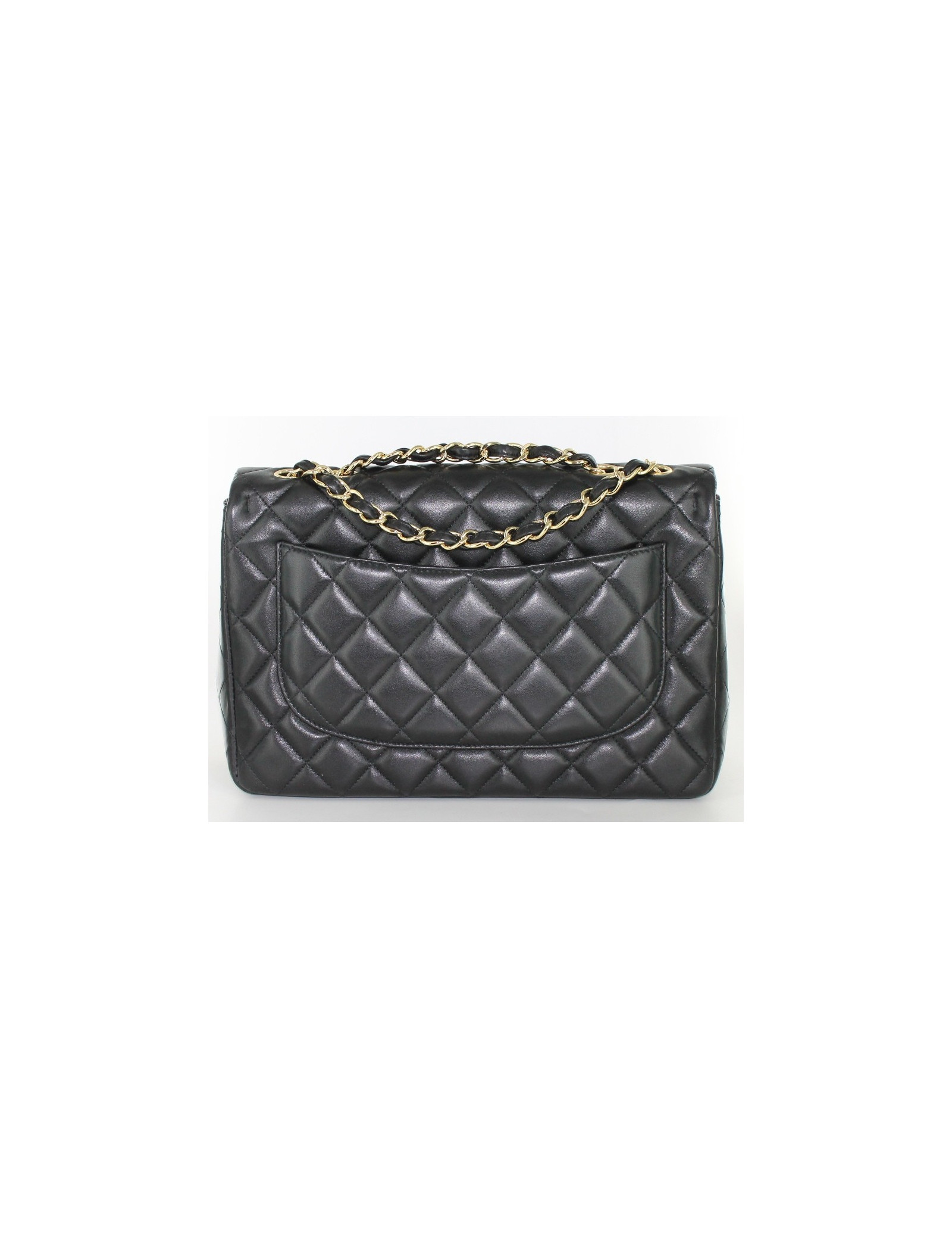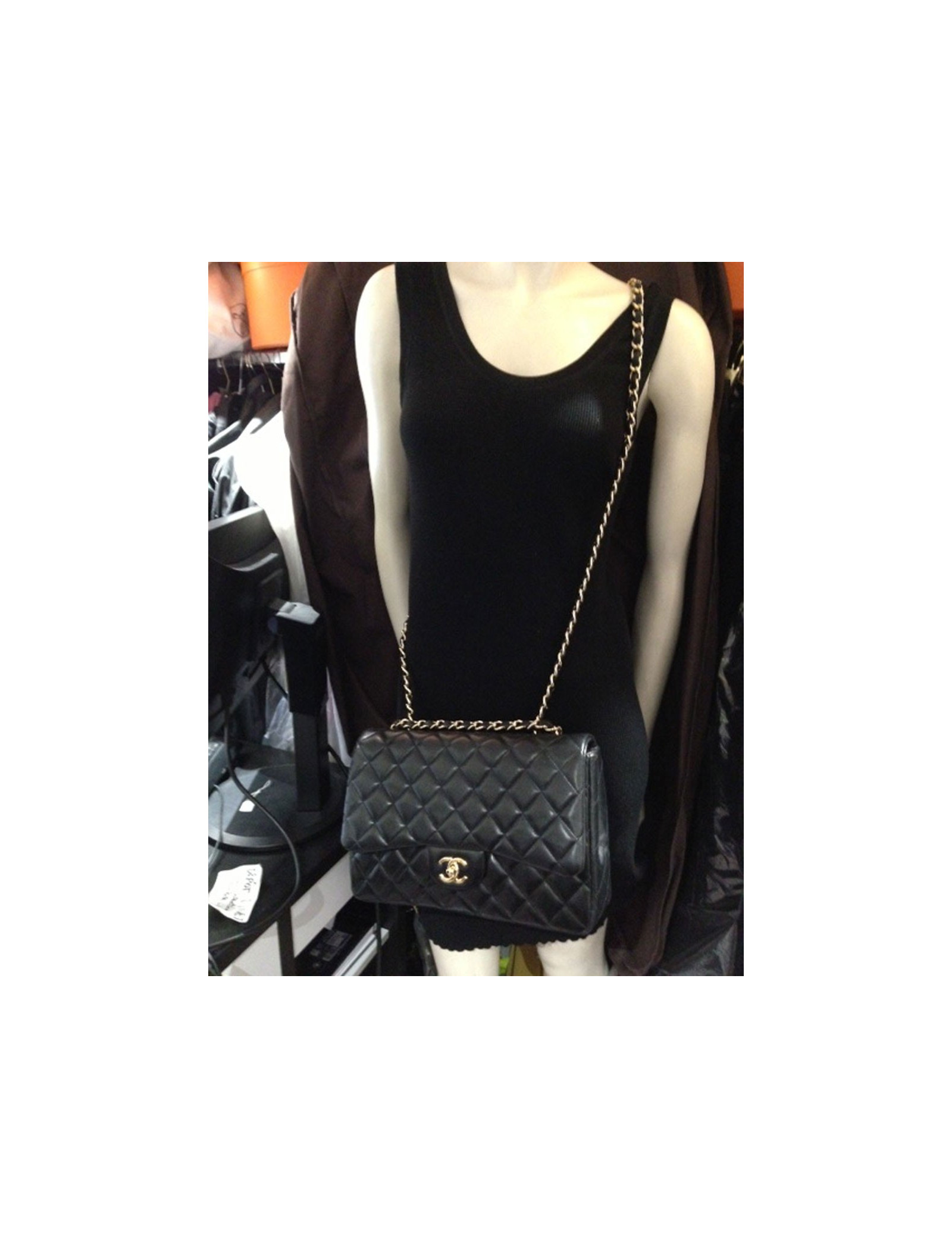 Sac CHANEL jumbo en cuir d'agneau noir et chaîne dorée