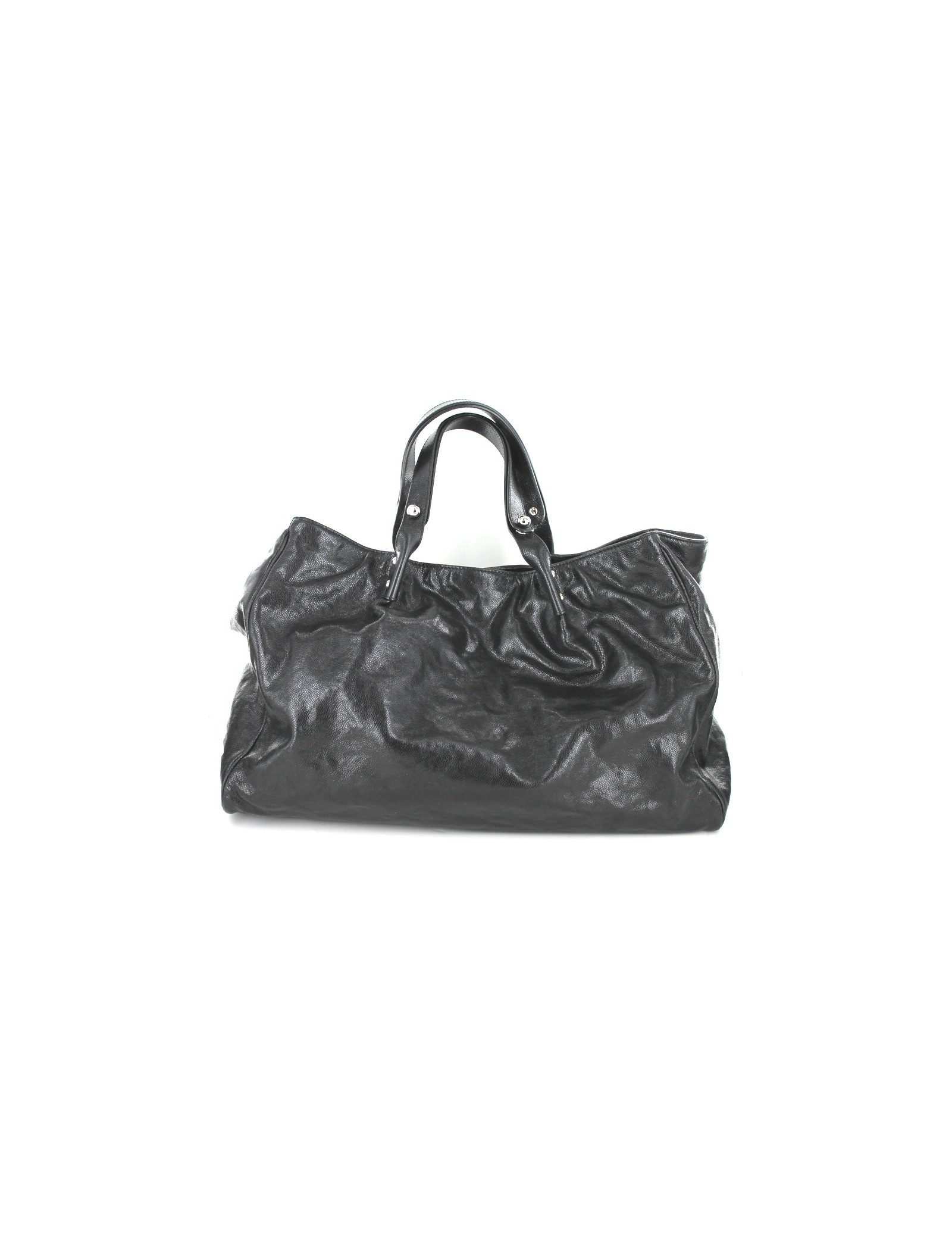 Sac CHANEL cabas en cuir double-poches en cuir grainé noir