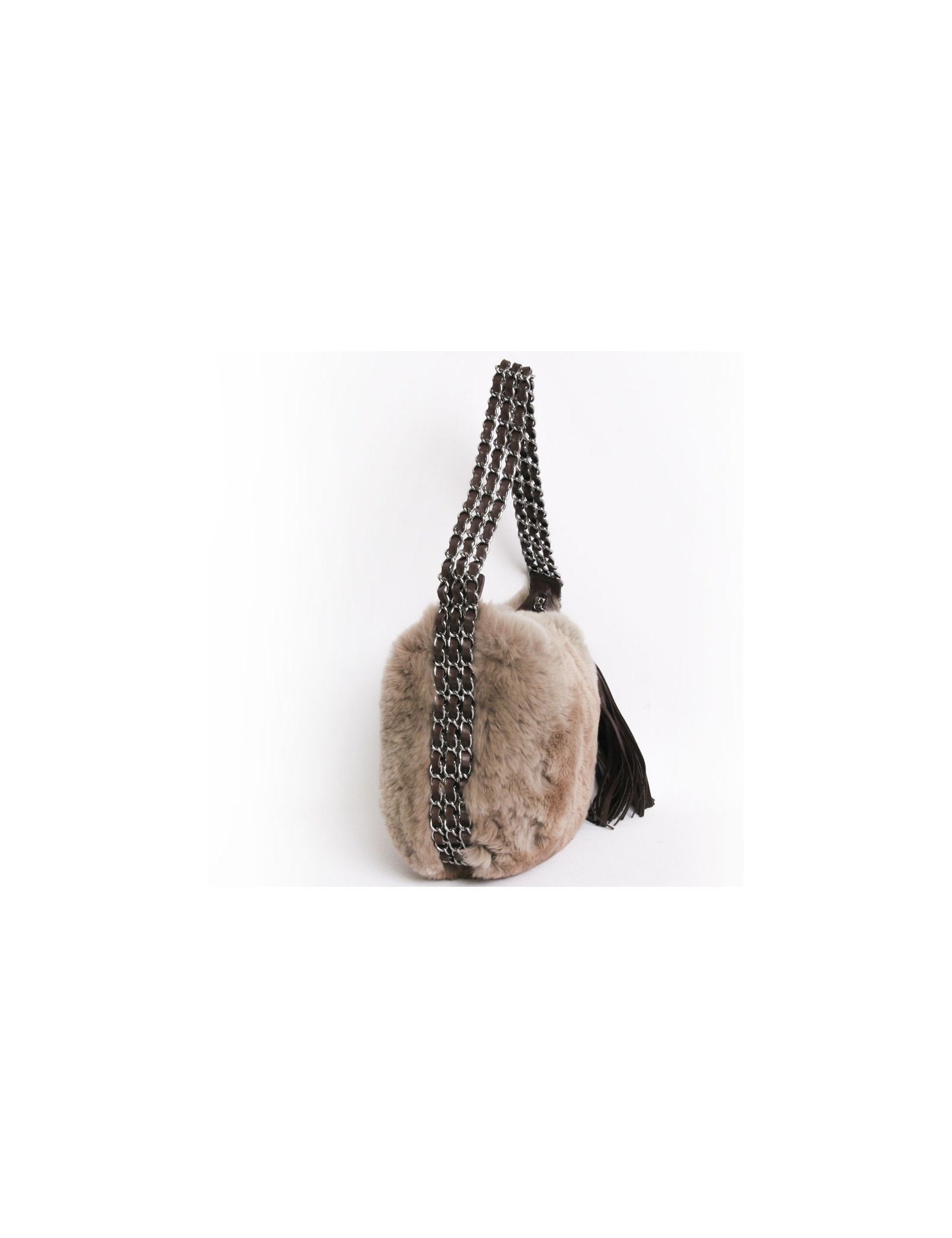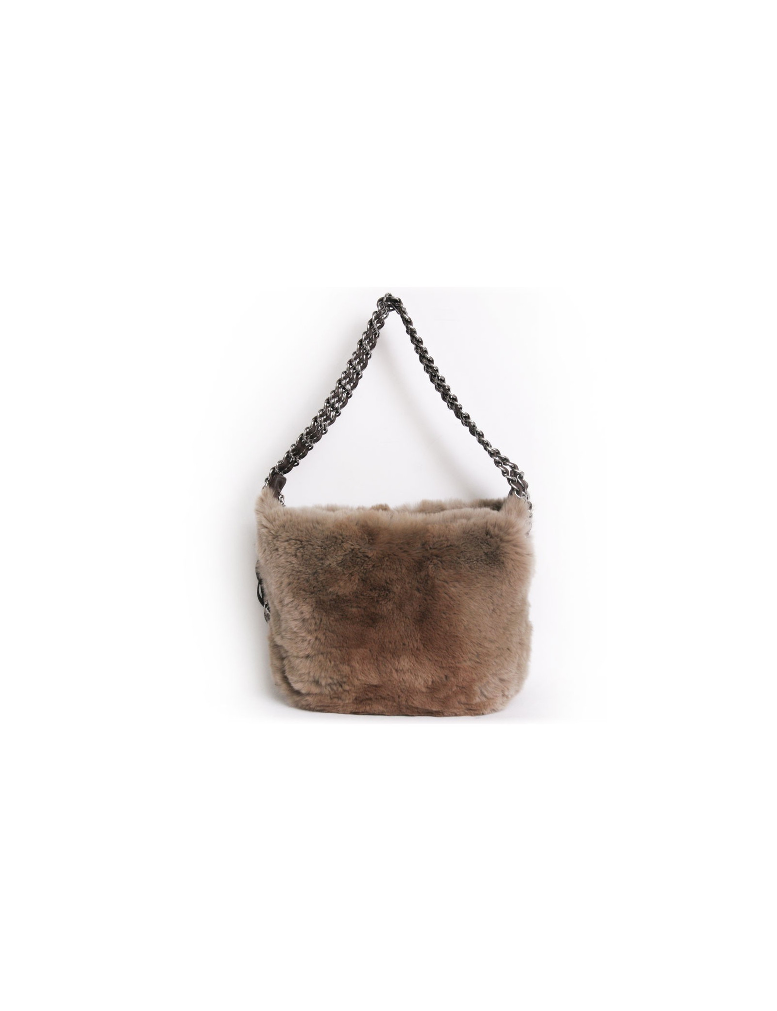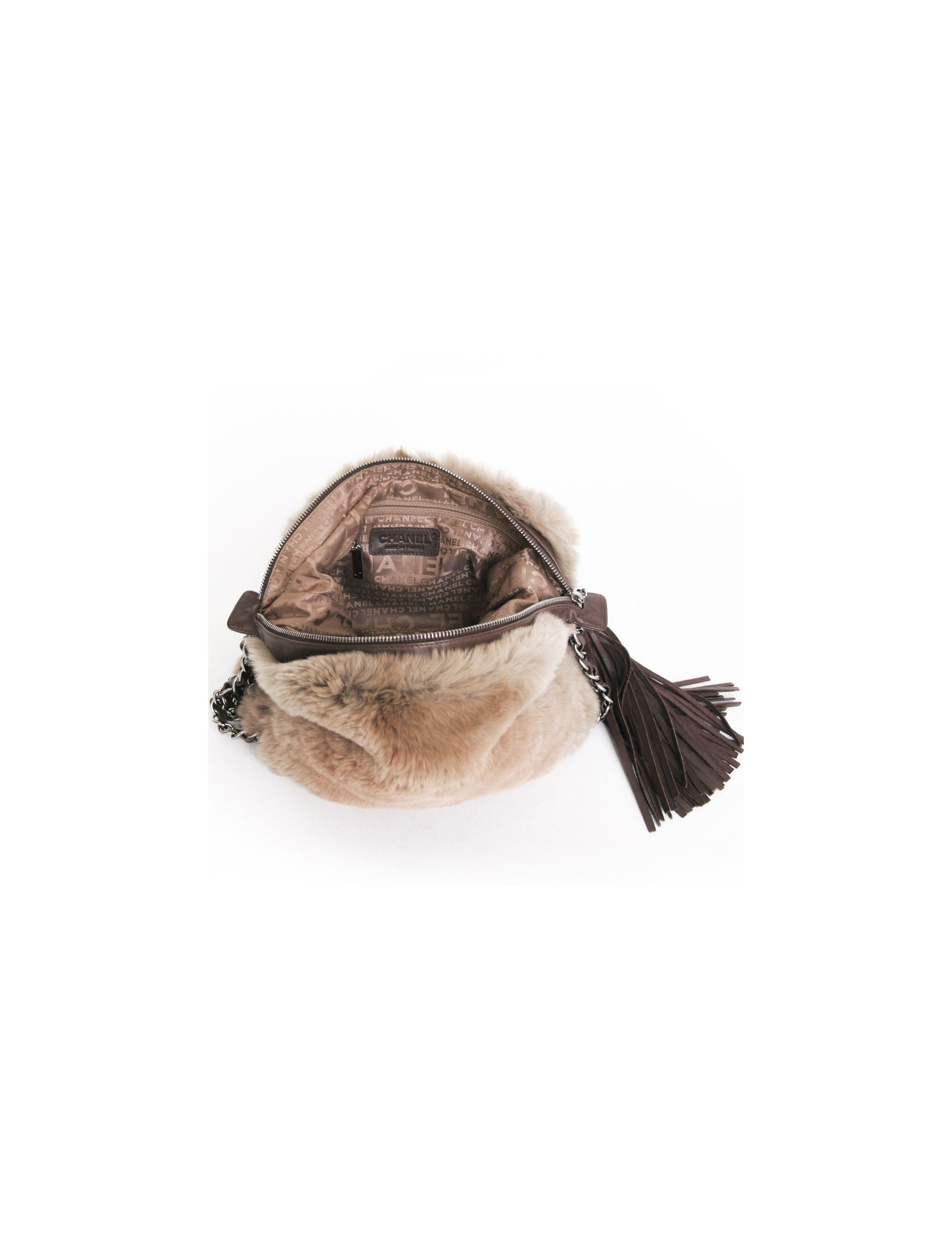 Sac CHANEL en chinchilla fauve et chaînes argent