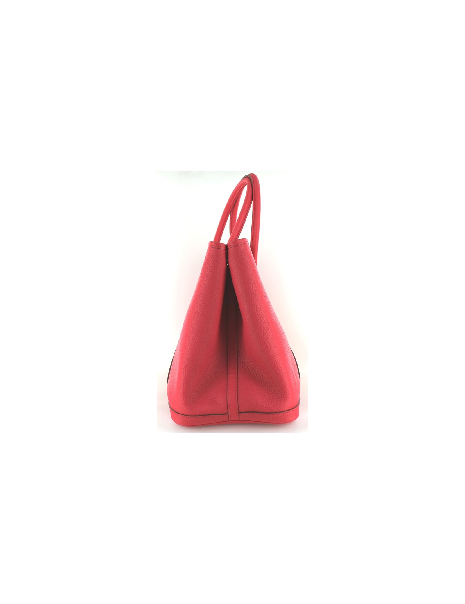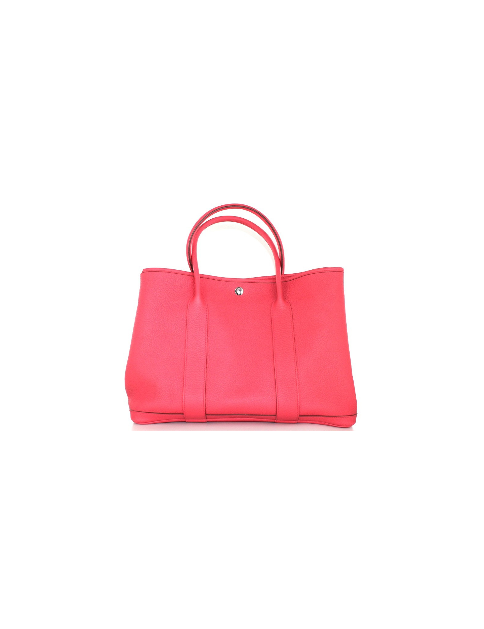 Sac Garden Party HERMES en cuir taurillon couleur rose. Ce sac est neuf. Couleur très rare. Fermeture par bouton pression en métal argenté siglé HERMES PARIS. A l'intérieur ce cabas dispose d'une grande poche plate zippée. Doublure intérieure en tissu beige. Lettre O, année 2011. Made in France. Vendu avec son dustbag d'origine. Provenance soldes