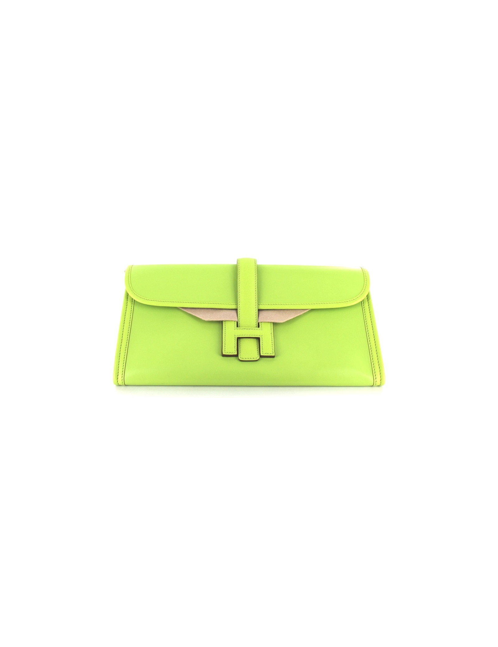 Pochette JIGE ELAN HERMES en cuir d'agneau couleur LIME